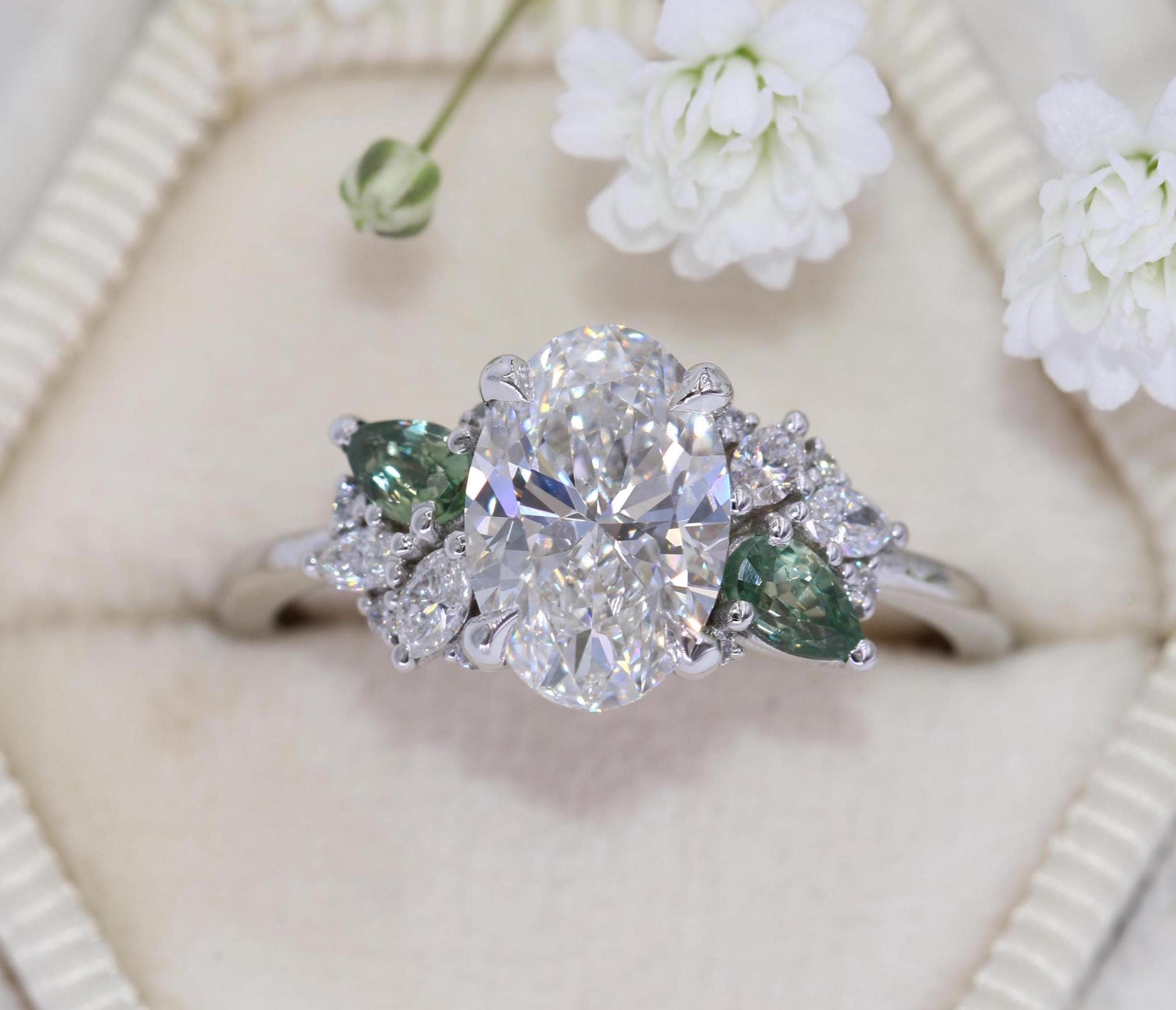 Custom-made 2 carat IGI Certified Lab Diamond Cluster Engagement Ring.