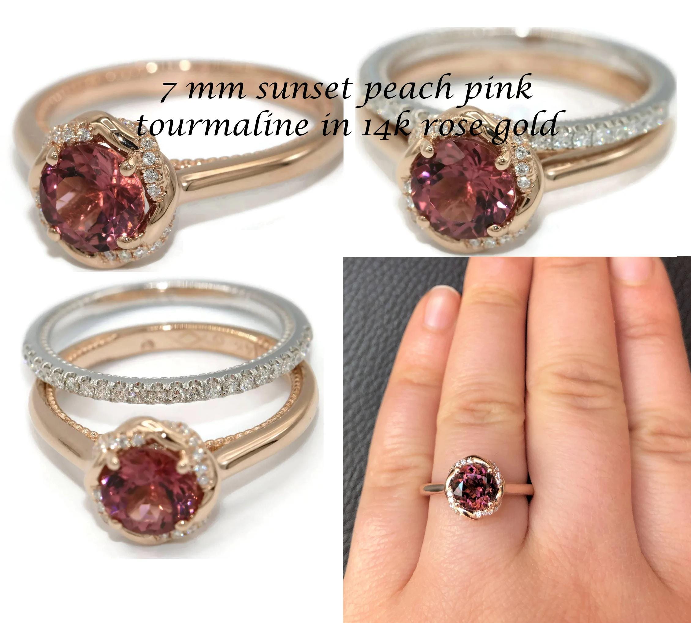 In last picture you can see another version of an elegant 14k rose gold stunning 6 mm Peach-Pink Morganite crossover band ring with 54 GH SI Natural Diamonds.