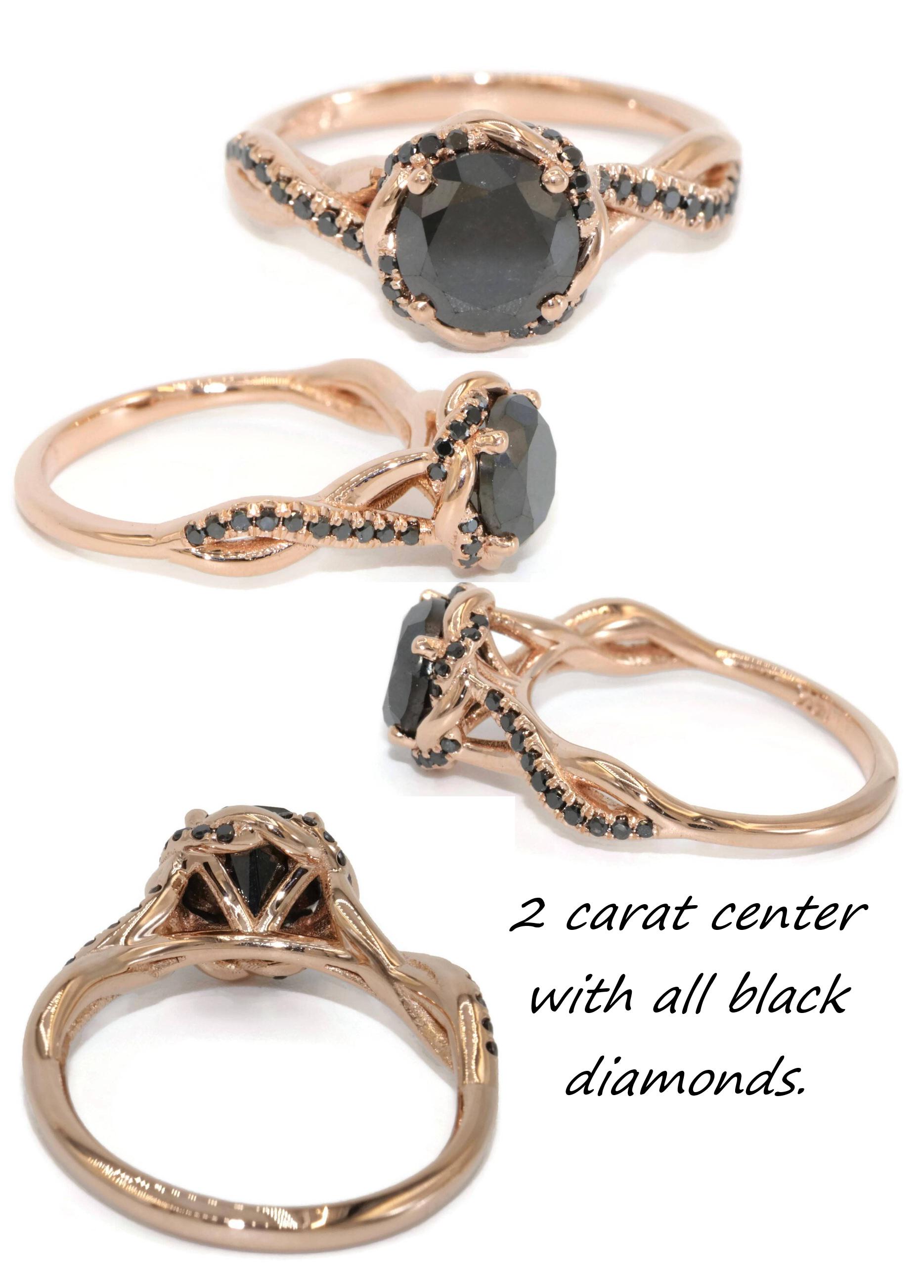 Custom made 2 carat Black Natural Diamond Engagement Ring.