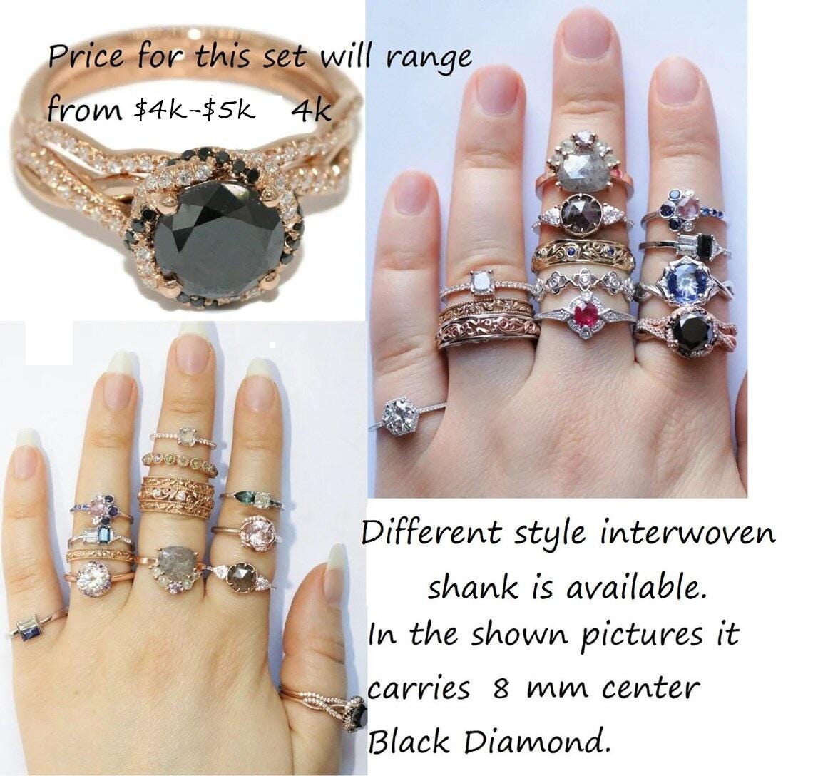 This listing is for the 1st picture shown. ONLY Engagement Ring with 2 carat black natural diamond.
