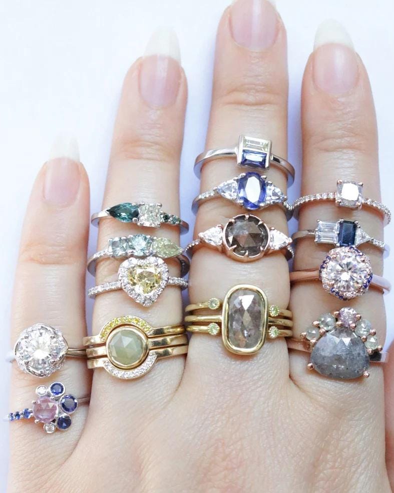 This ring has natural, ethically sourced stones and recycled gold.