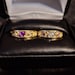 7) Ring in a size 9 will have 6 mm by 3 mm purple marquise center stone and 2 smaller round white lab diamond accent stones on each side. $1880 total.