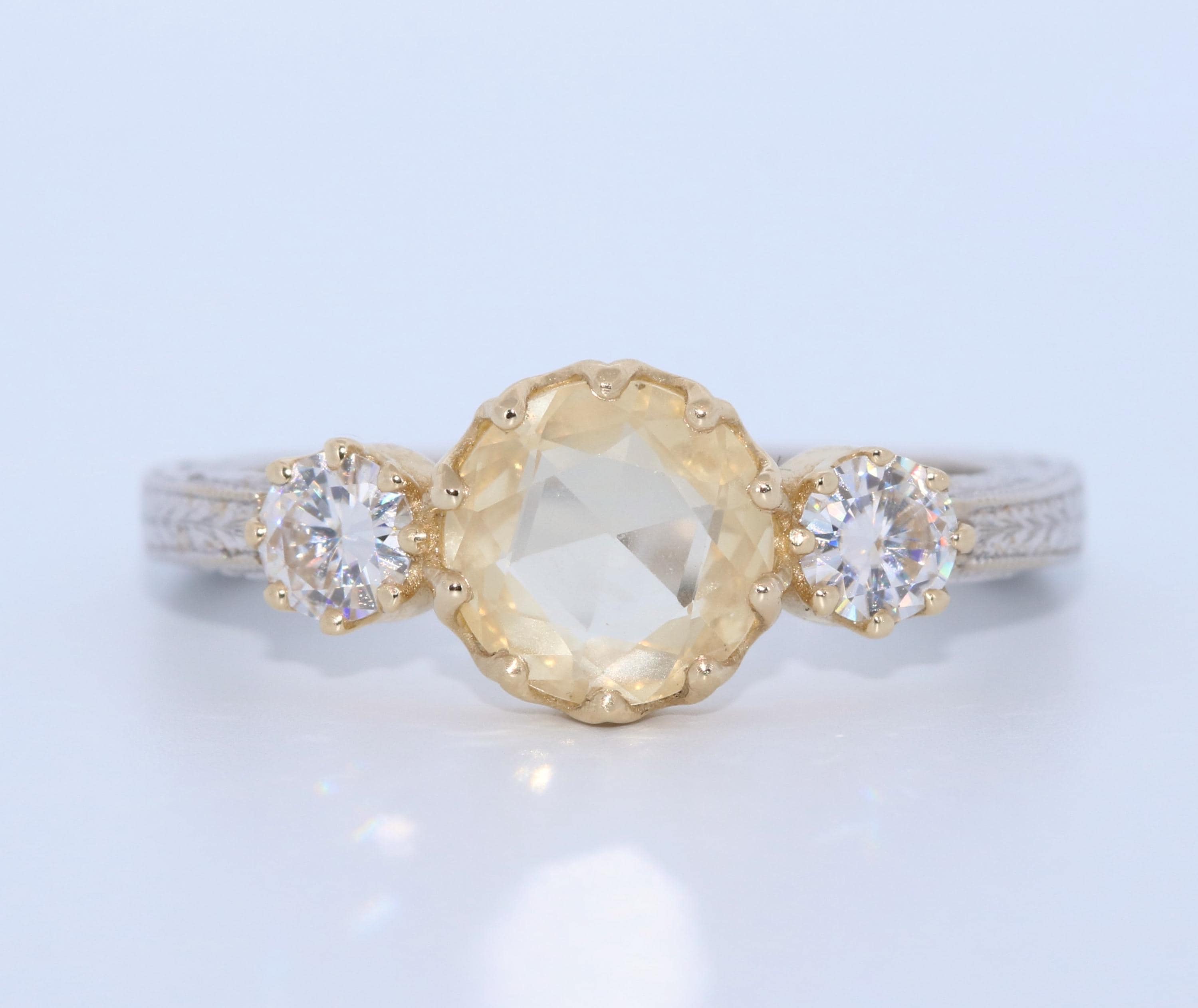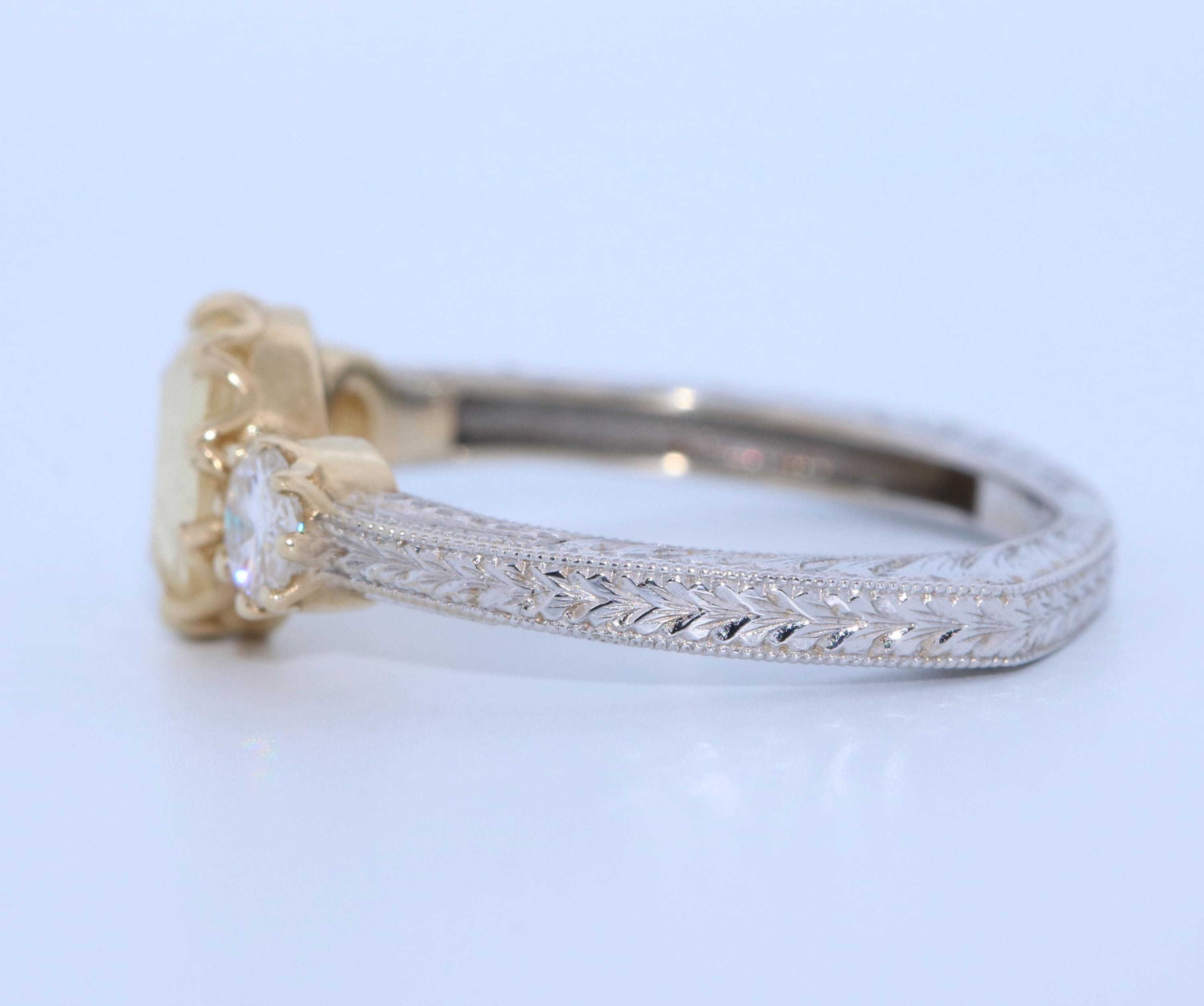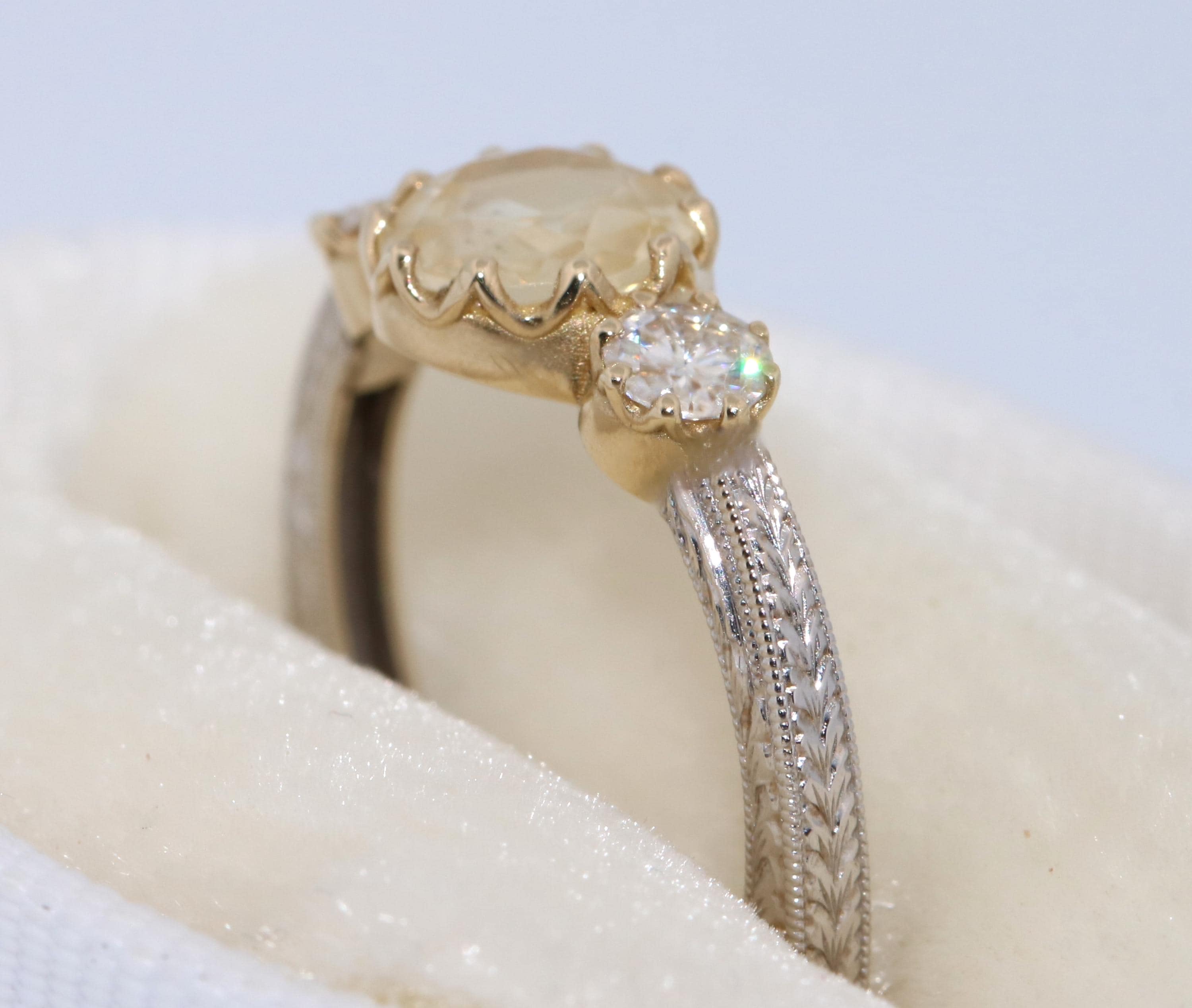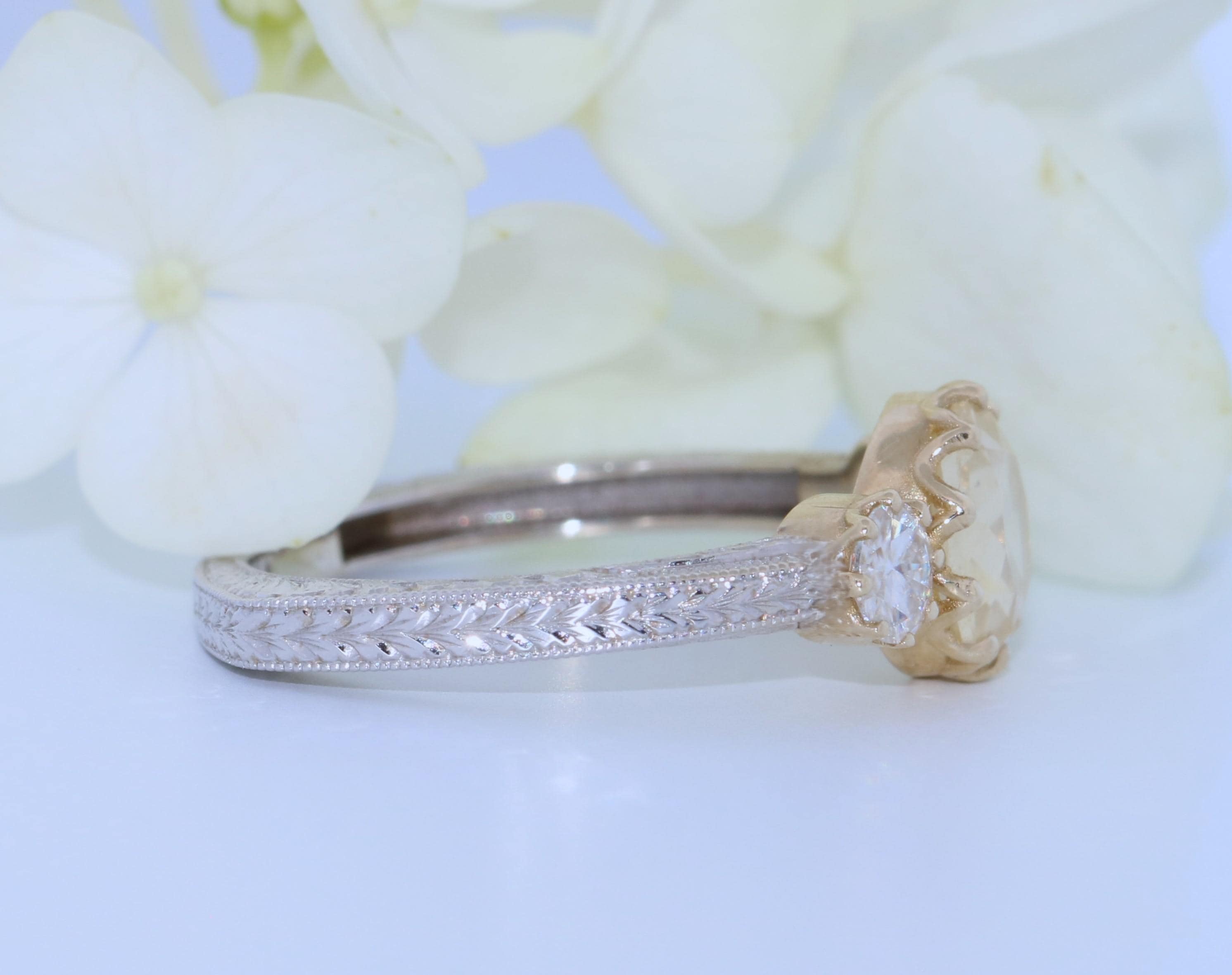Hand Engraved Euro Shank 14k Mixed Bi-color Gold 3 Stone Ring.