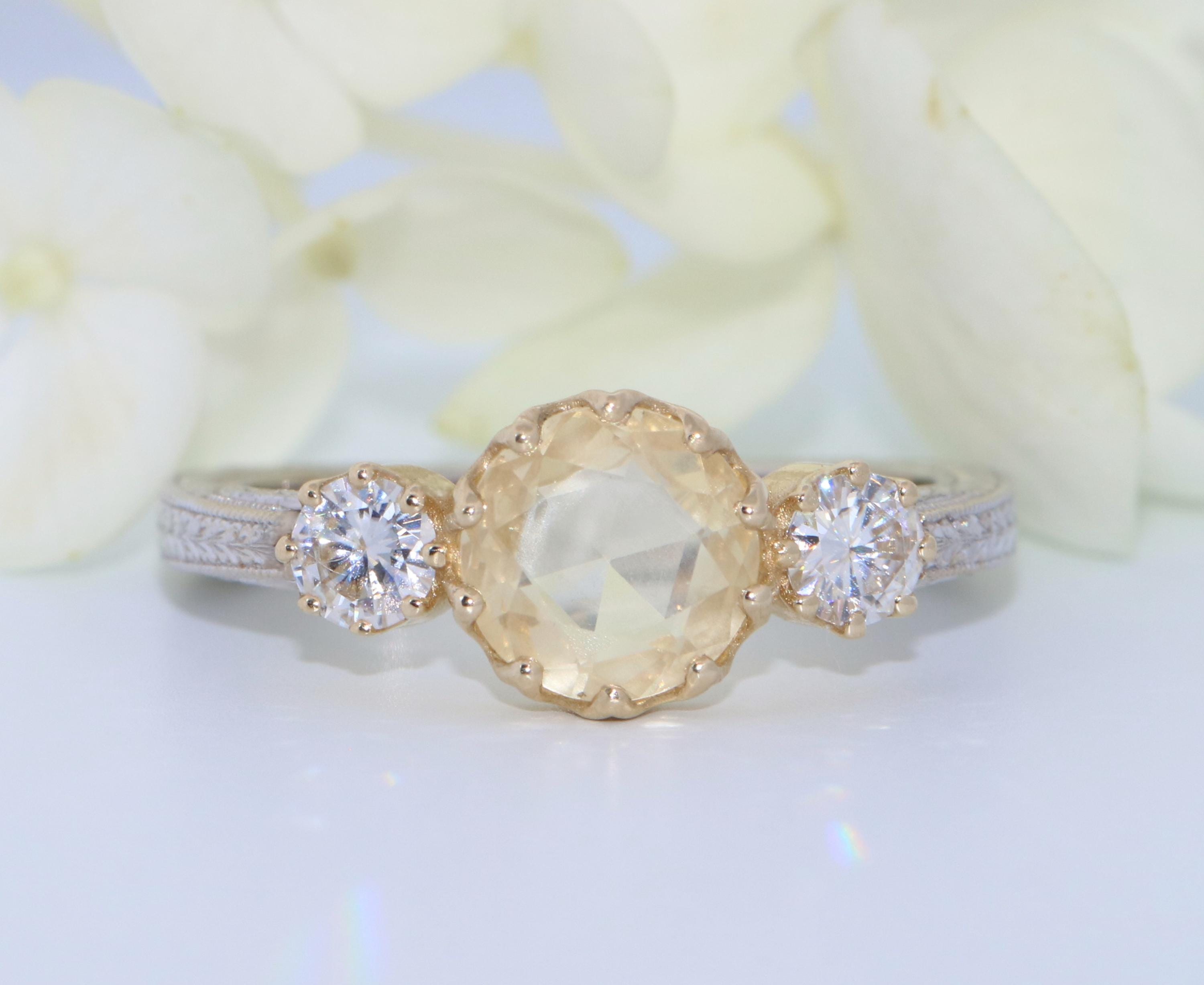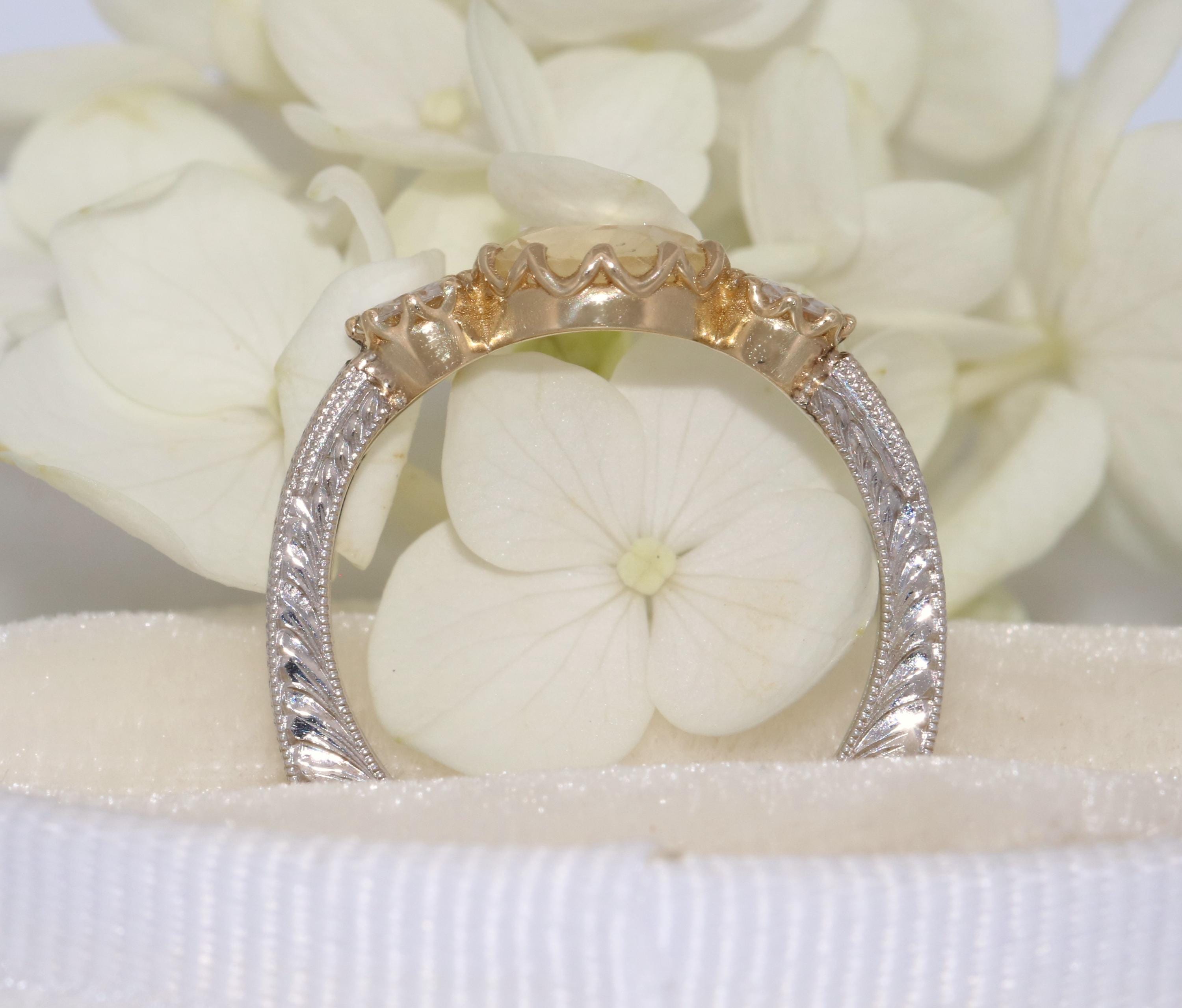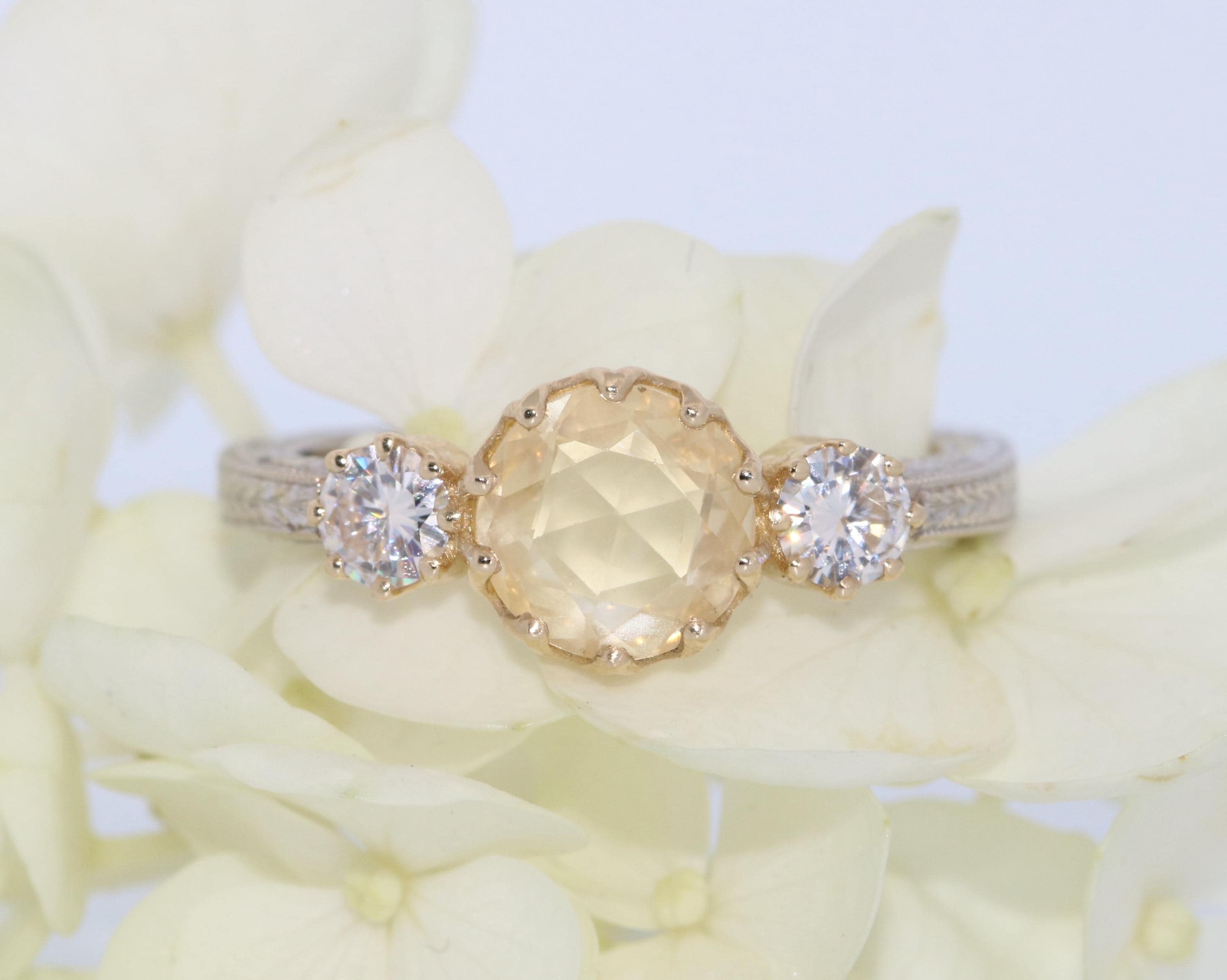 Side stones: 3.5 mm Moissanites from Charles and Colvard.