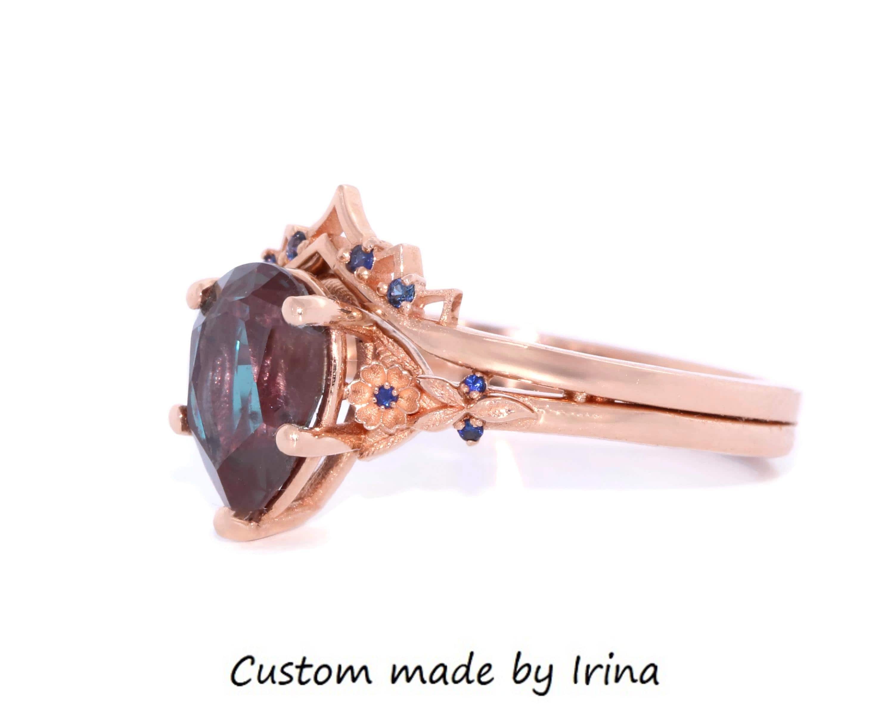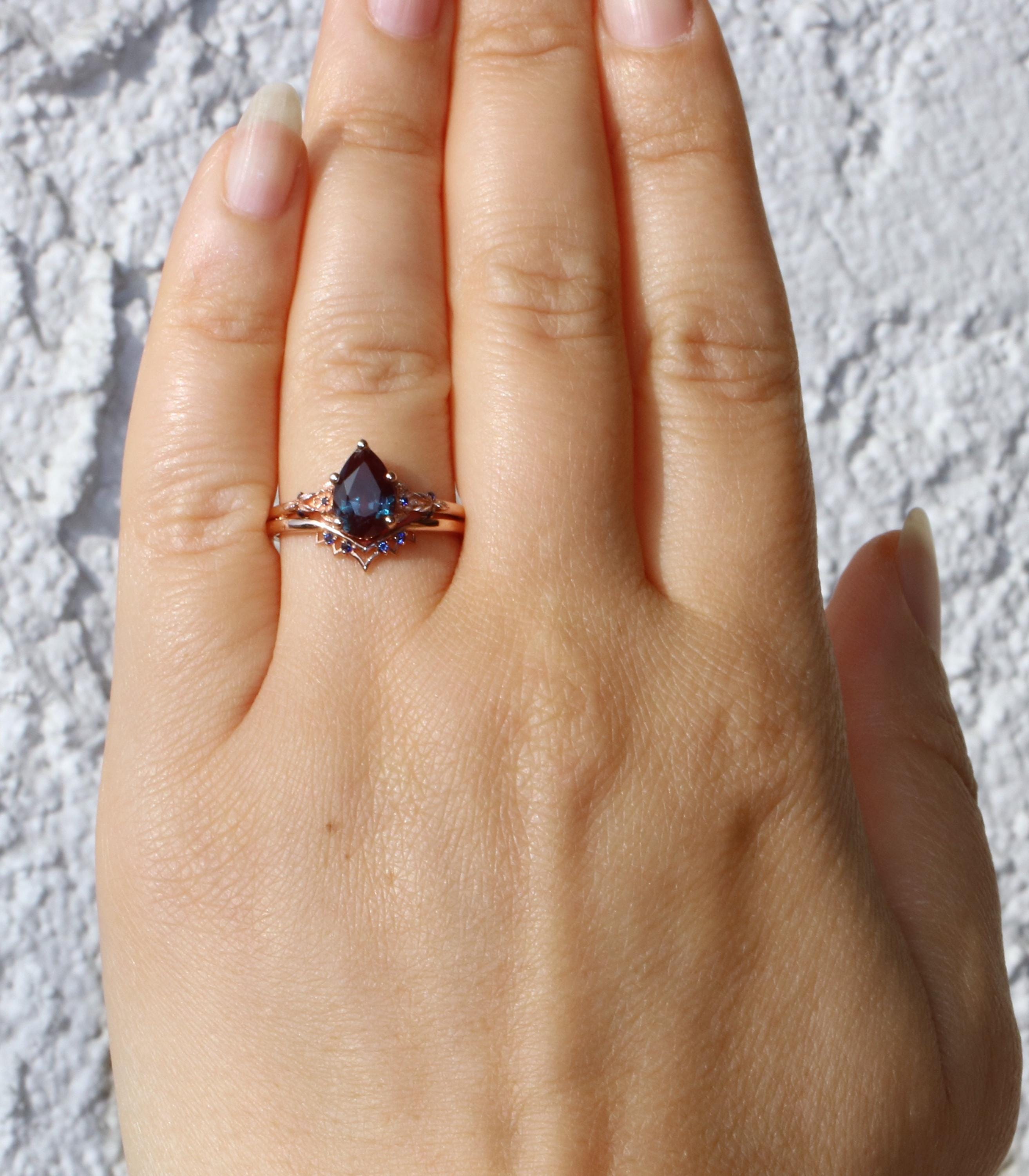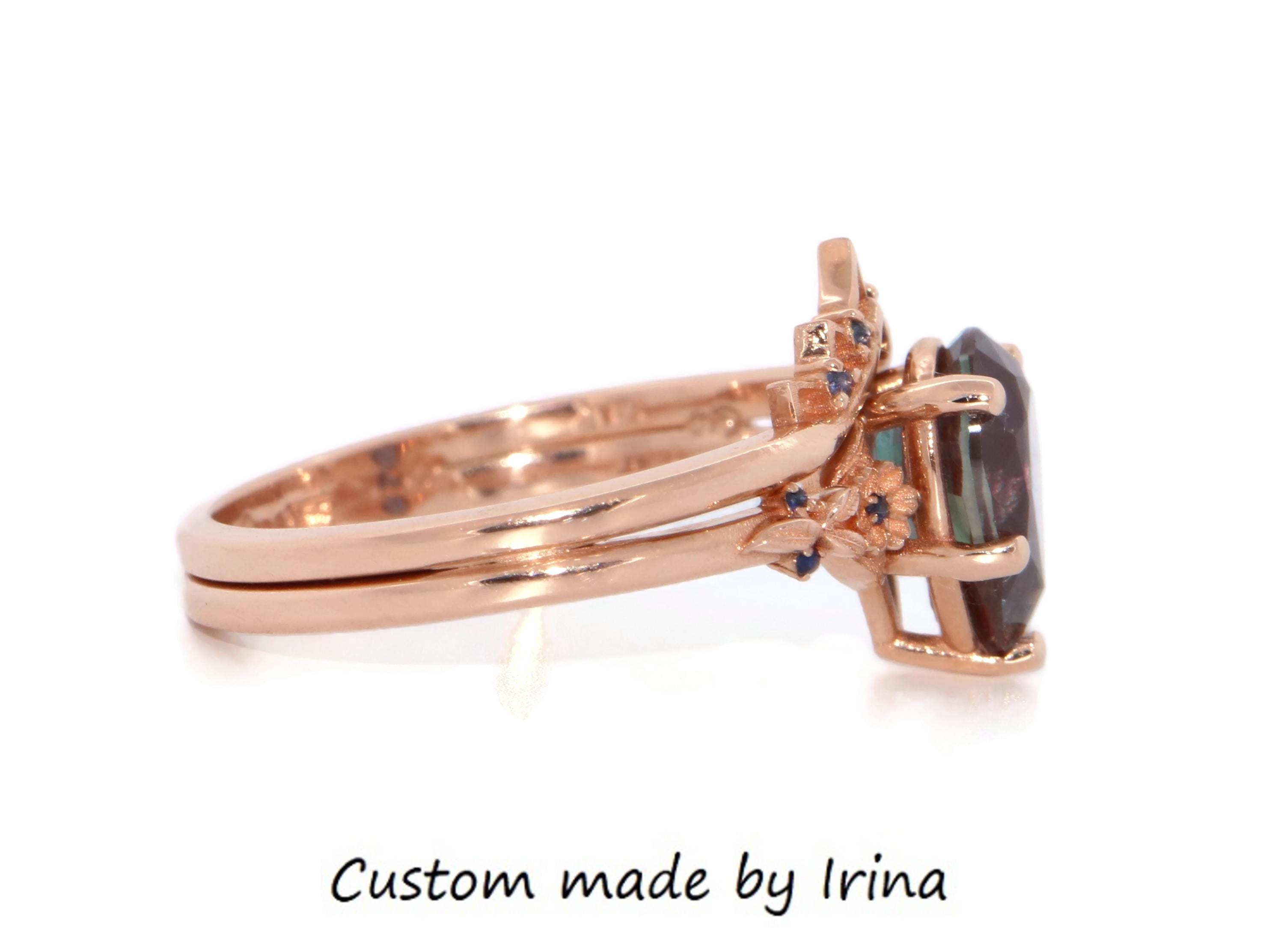 Side stones: Lab Diamonds + Lab Alexandrite Stones