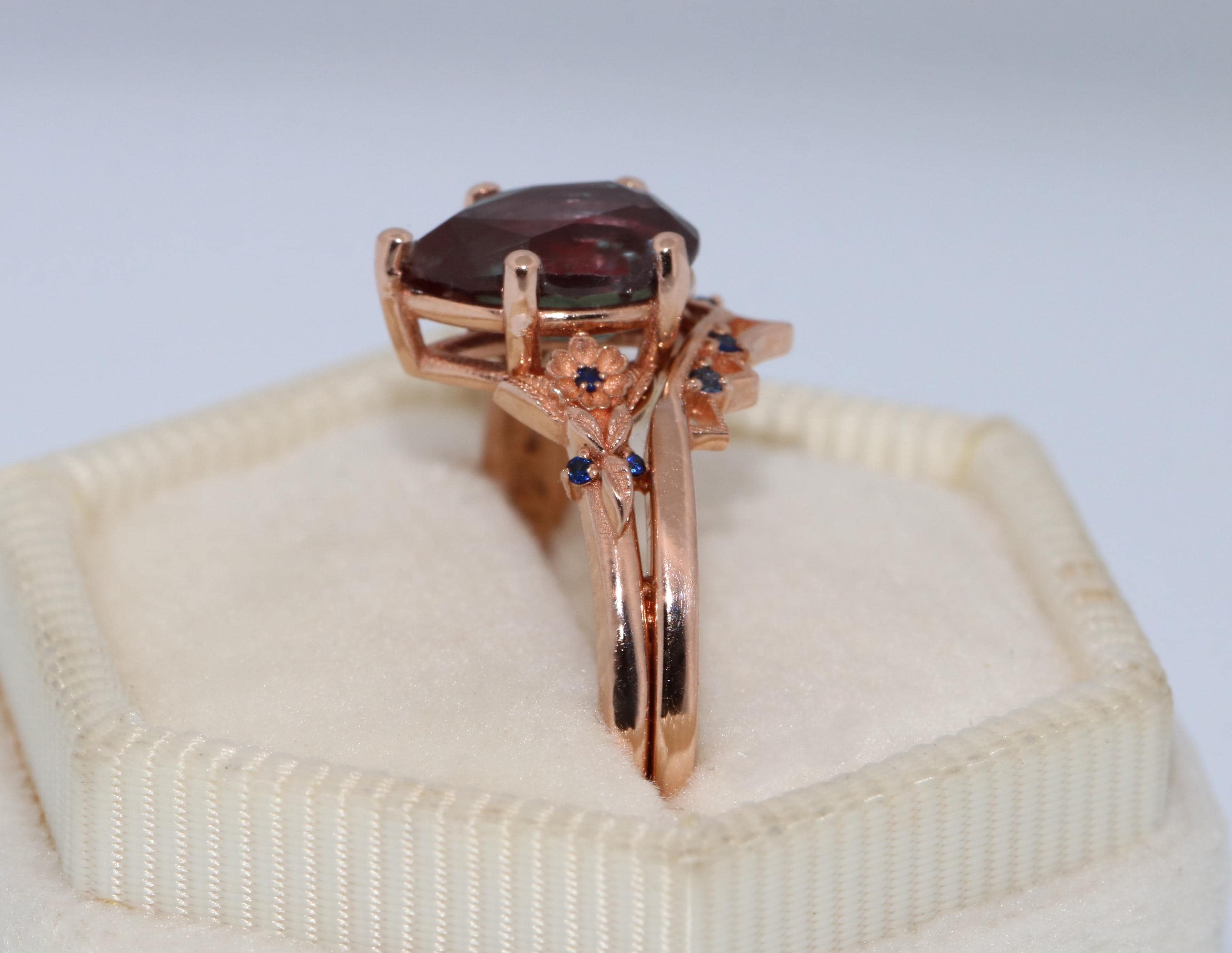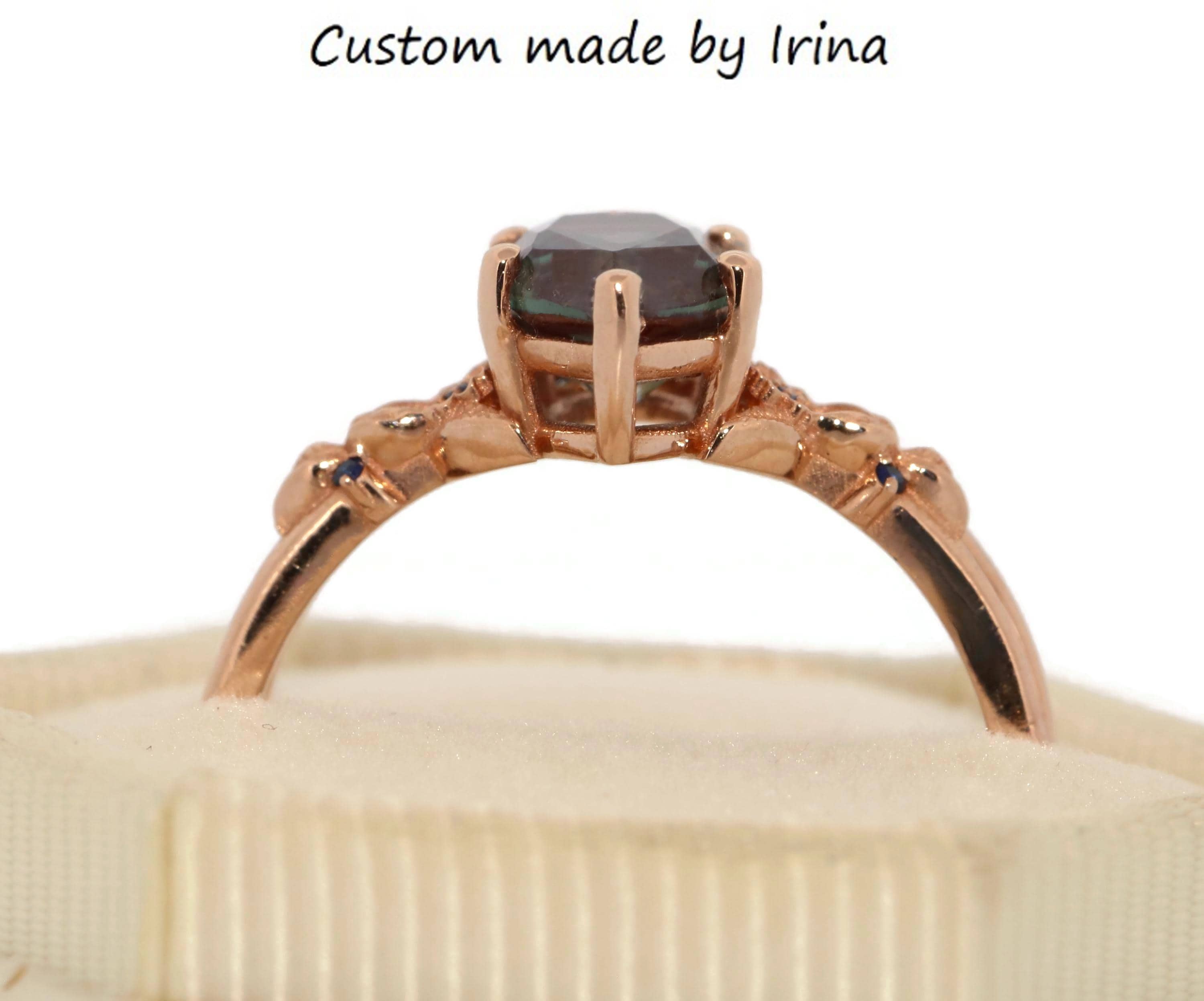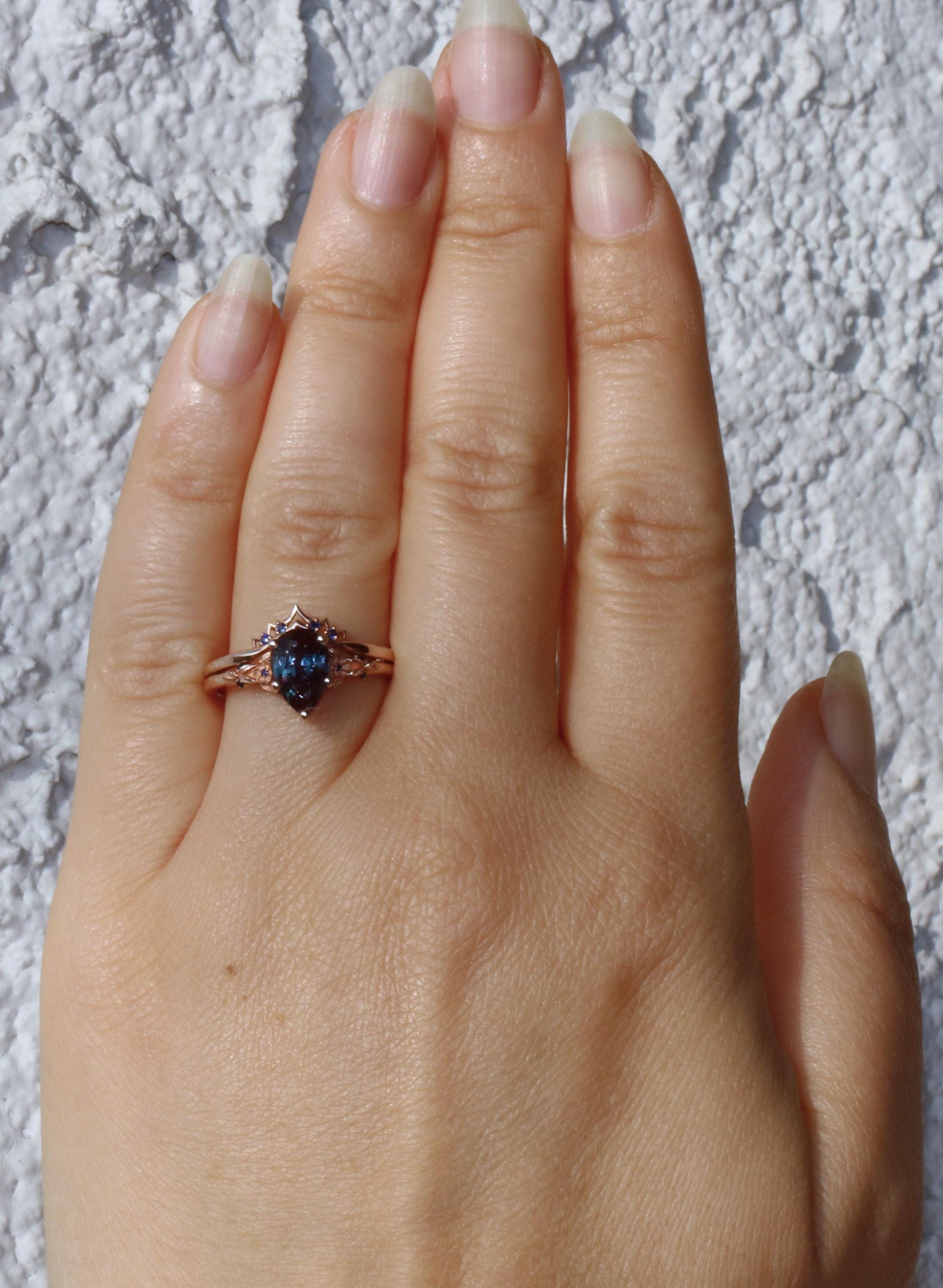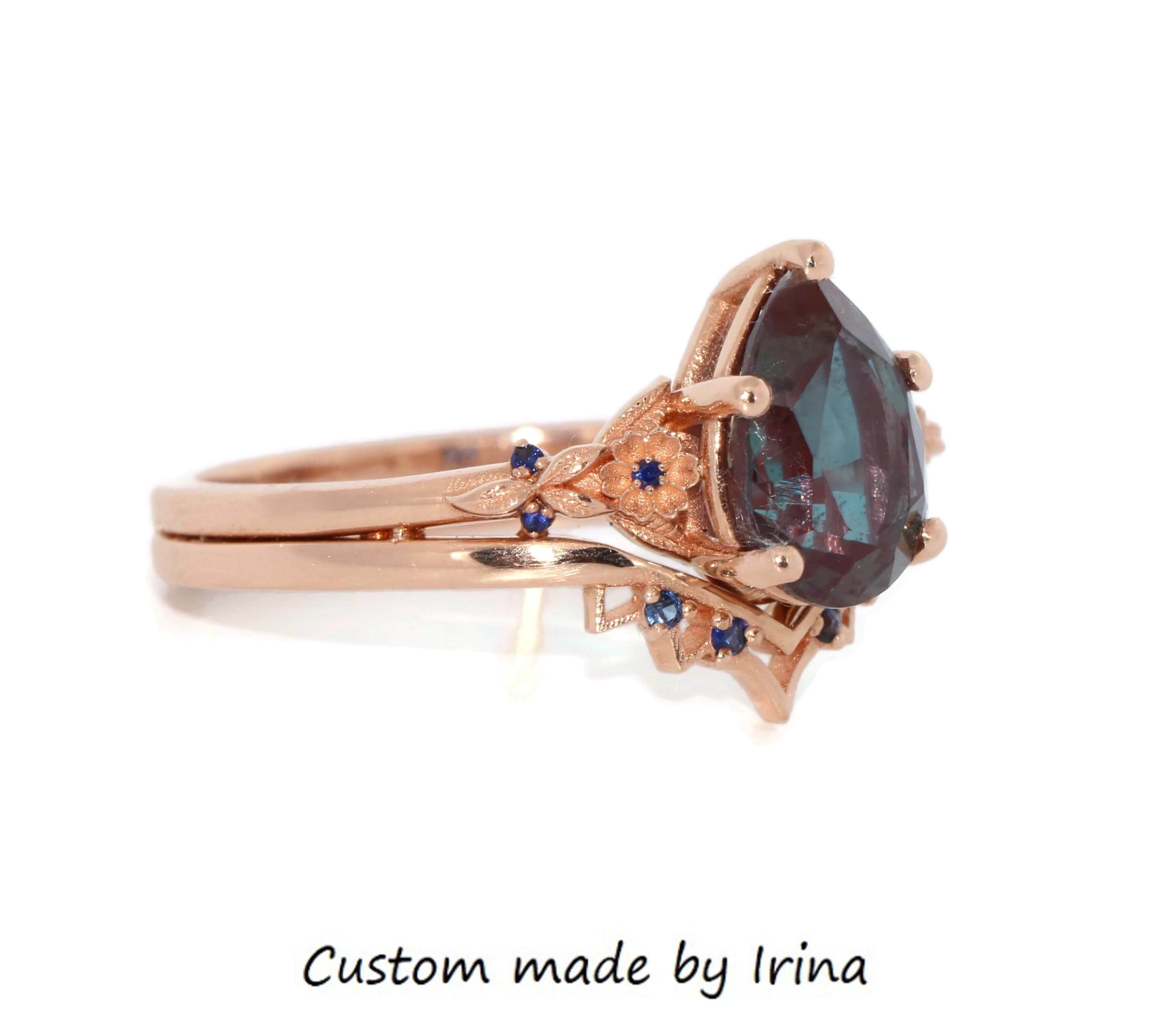 Side stones: Lab Diamonds + Lab Alexandrite Stones