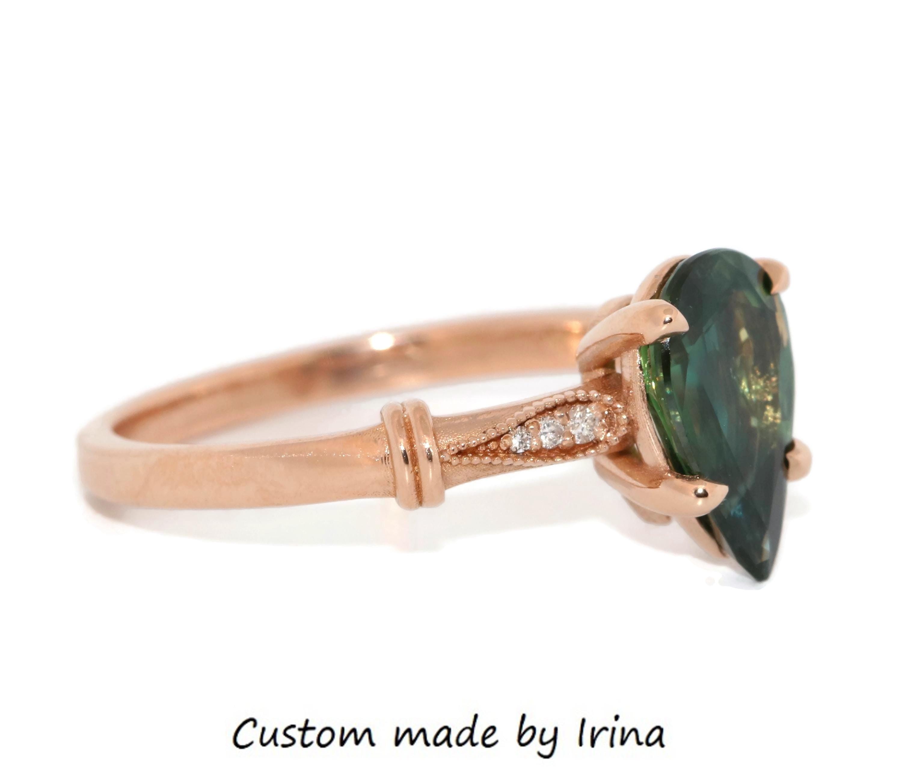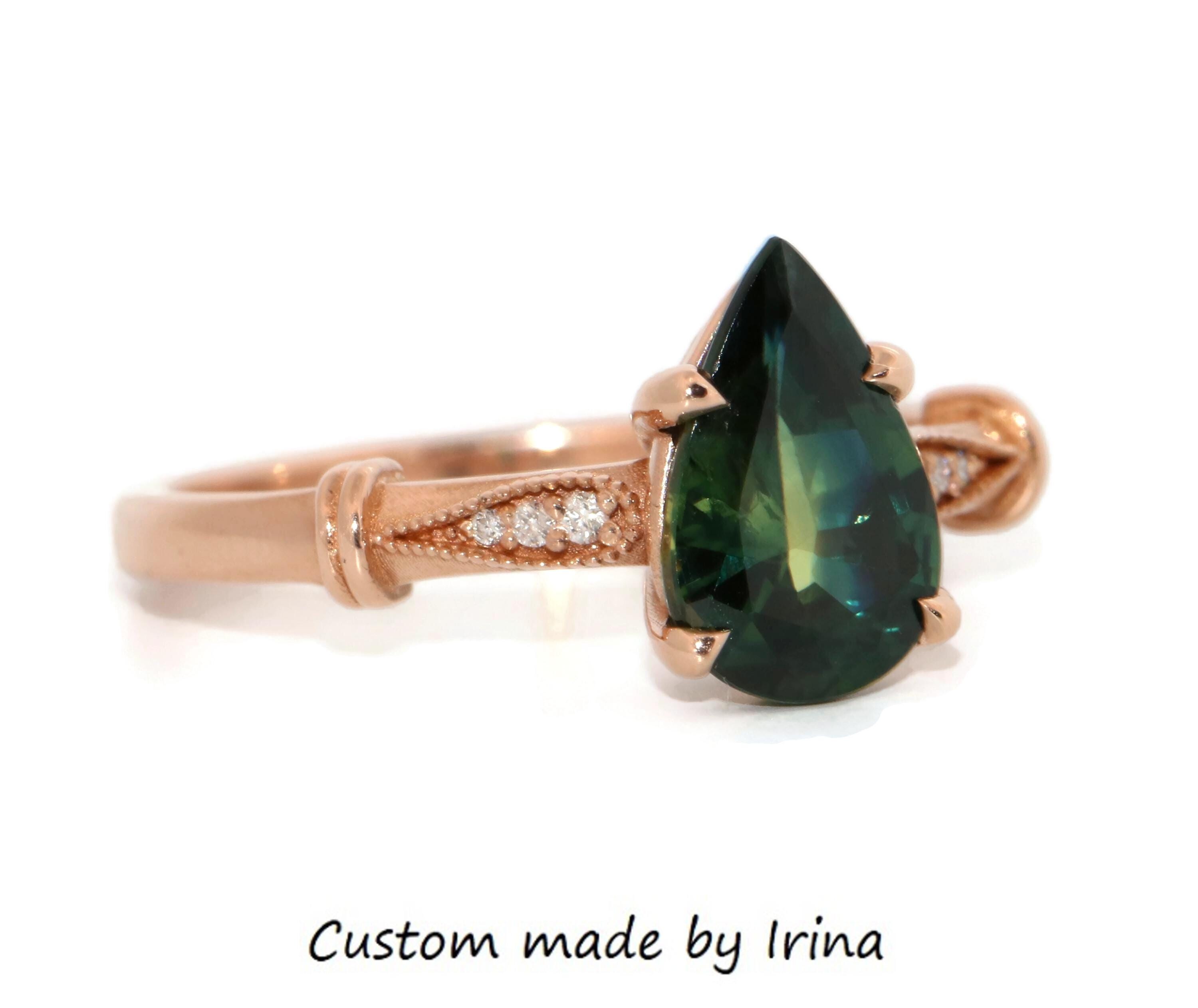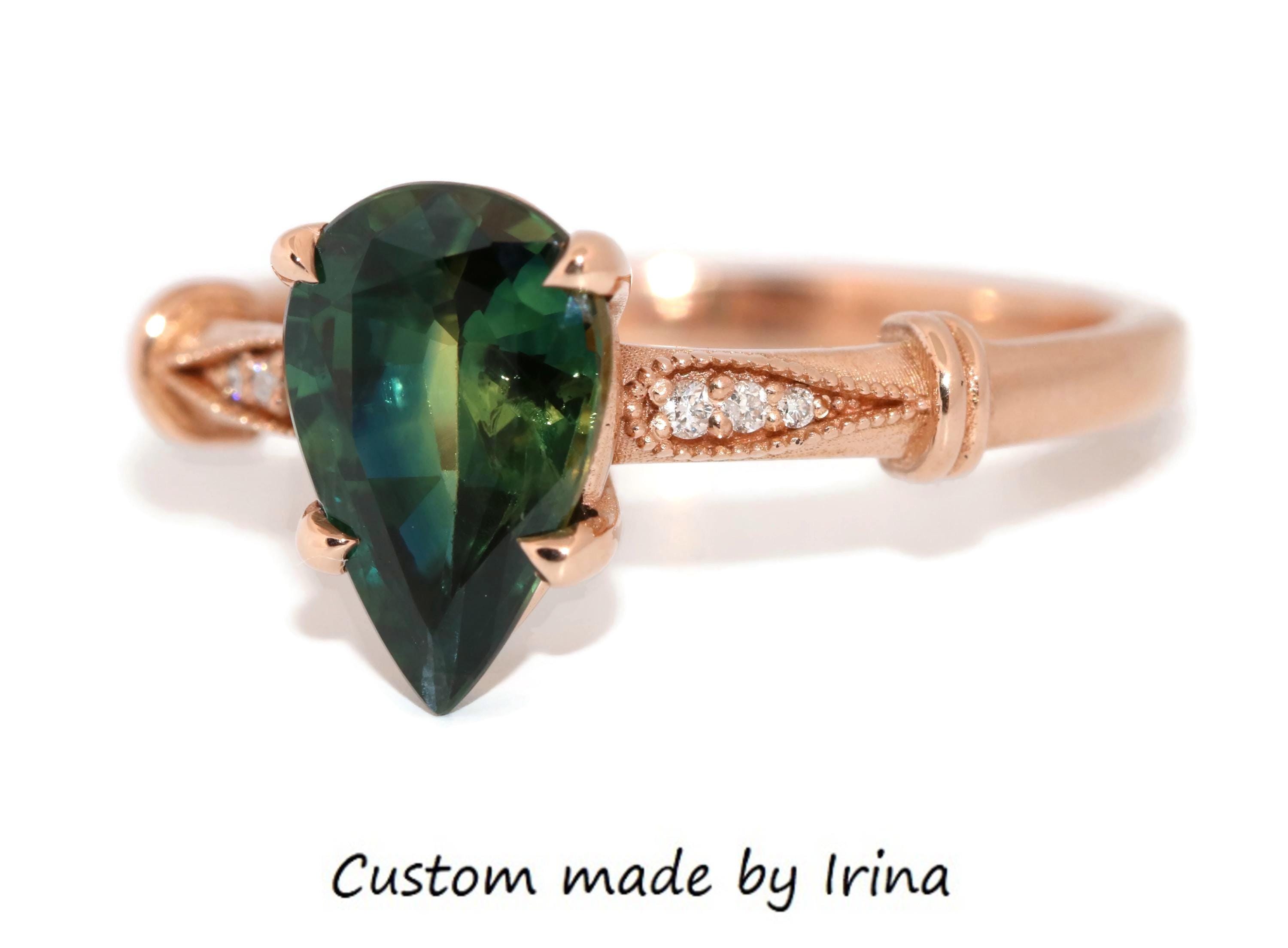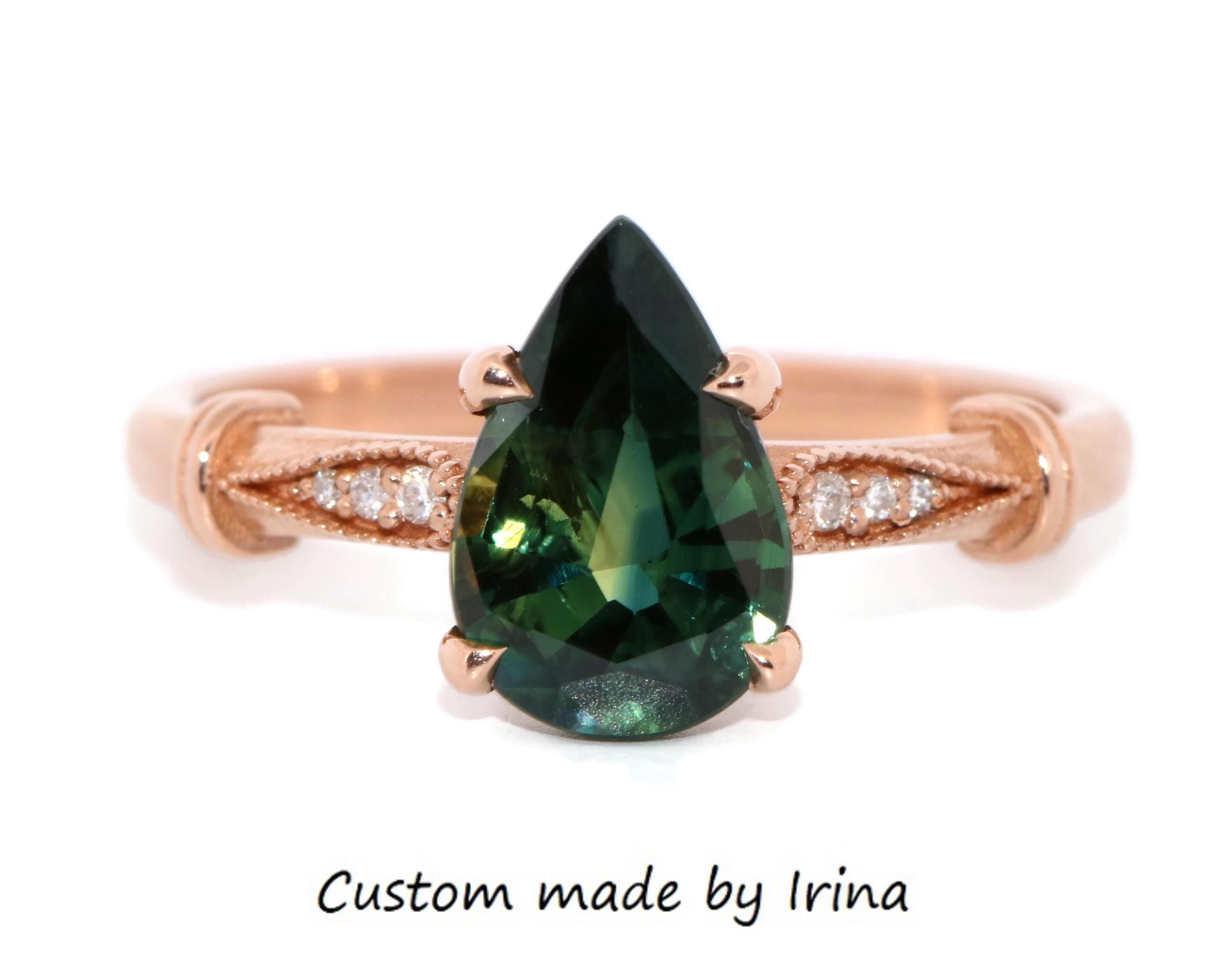 Custom-made 2 ct Pear Vintage Style Inspired Engagement Ring.