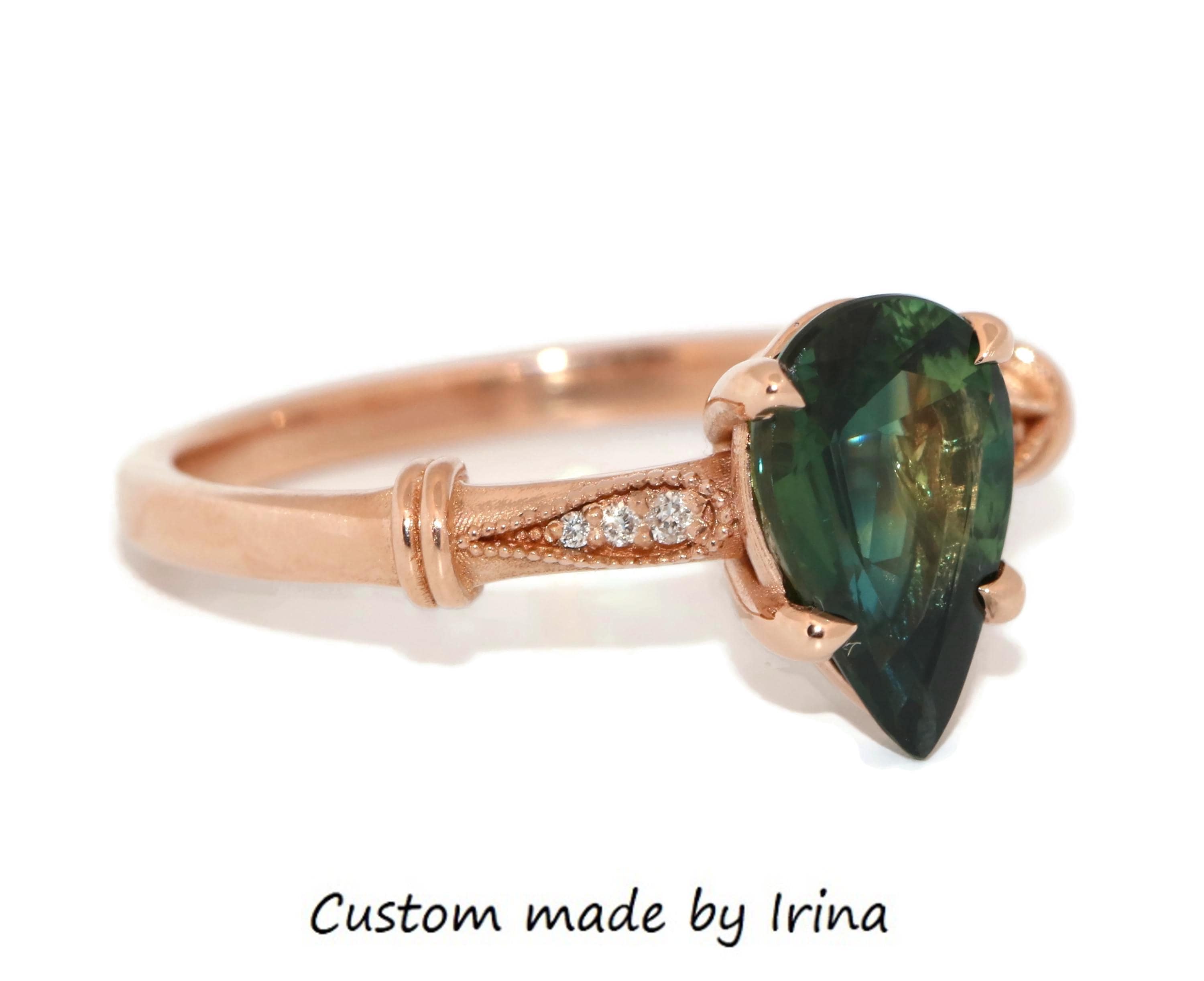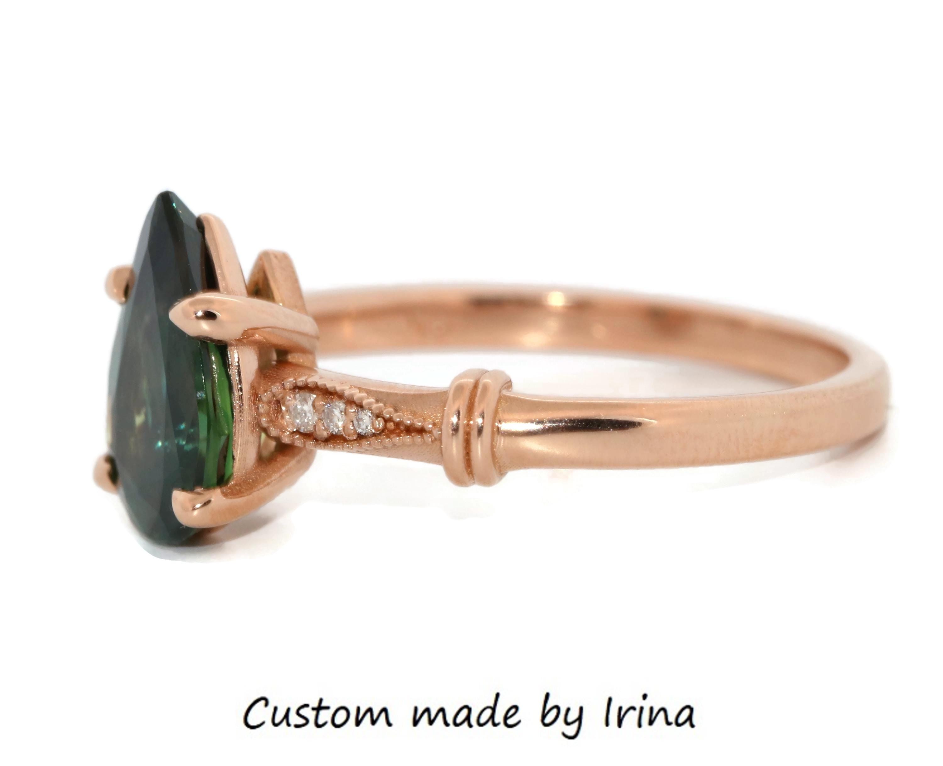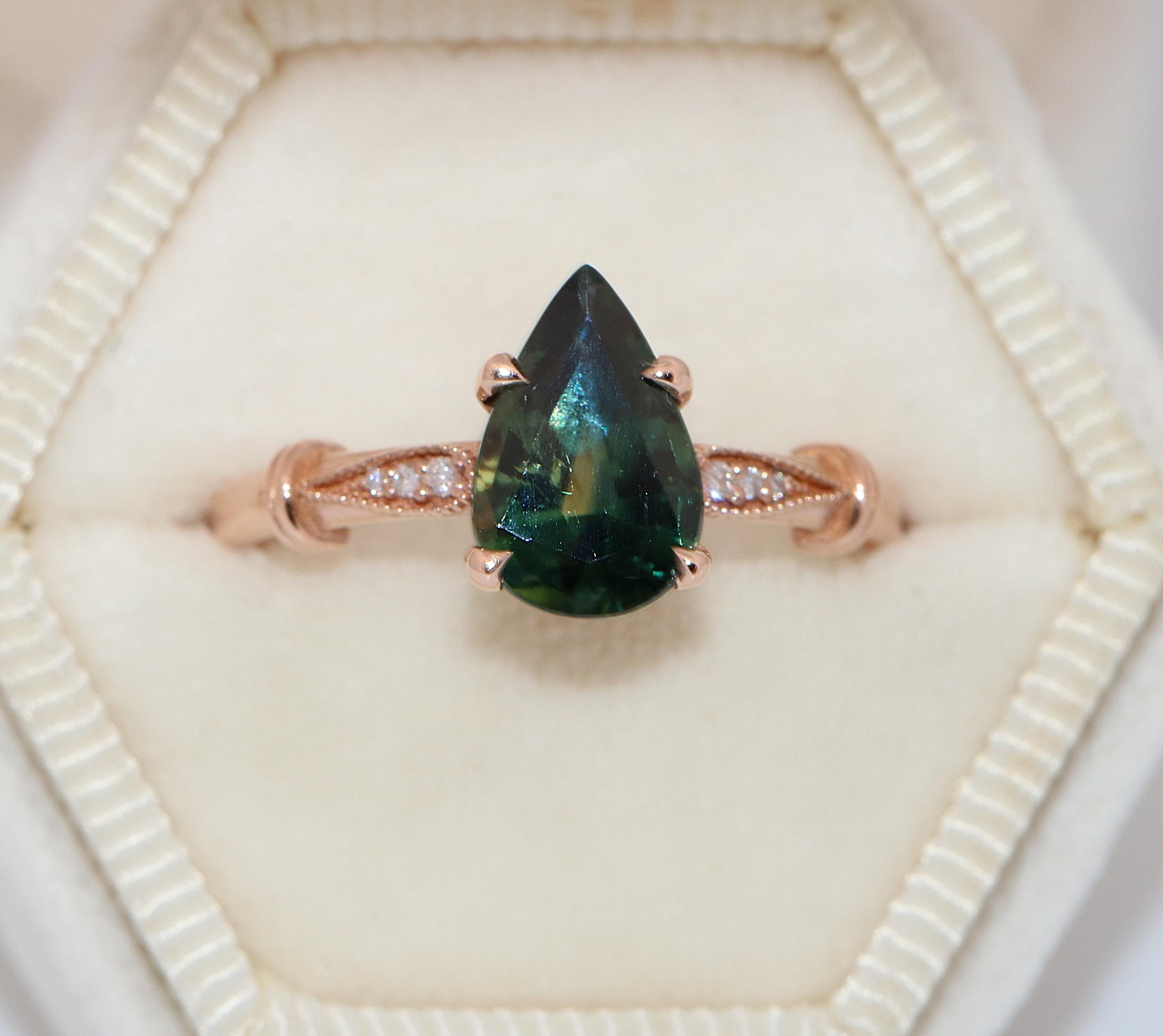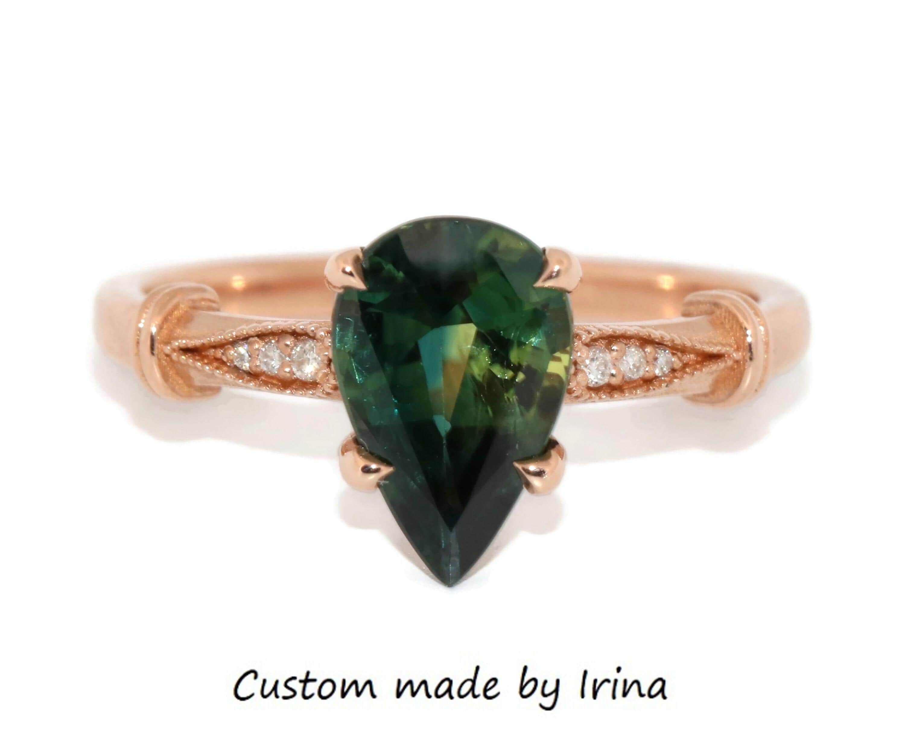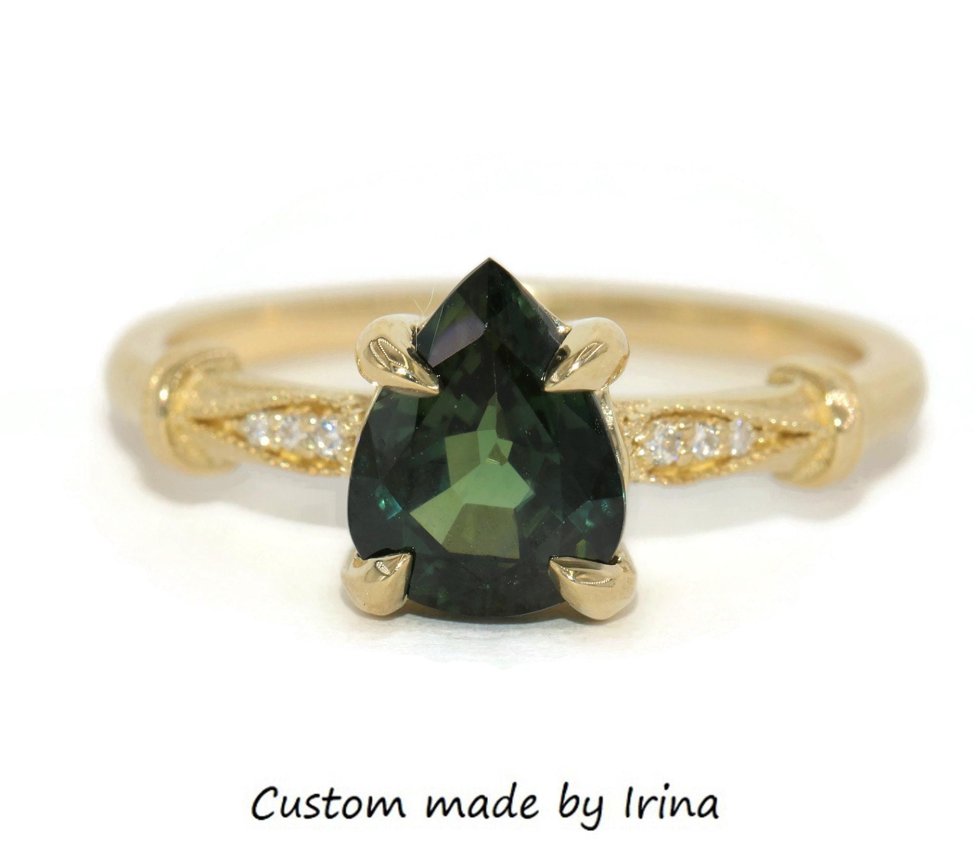 Custom-made 2 ct Pear Vintage Style Inspired Engagement Ring.
