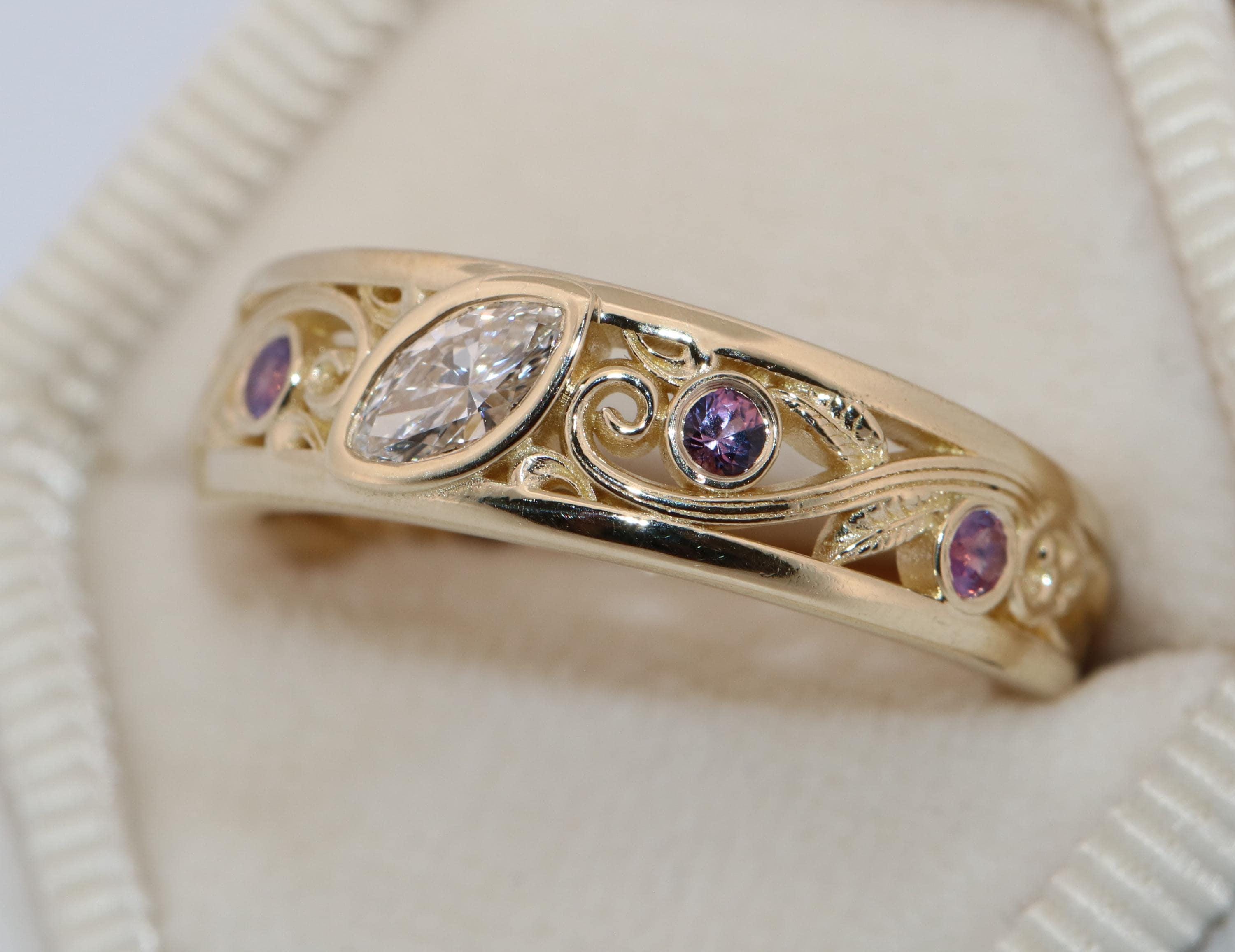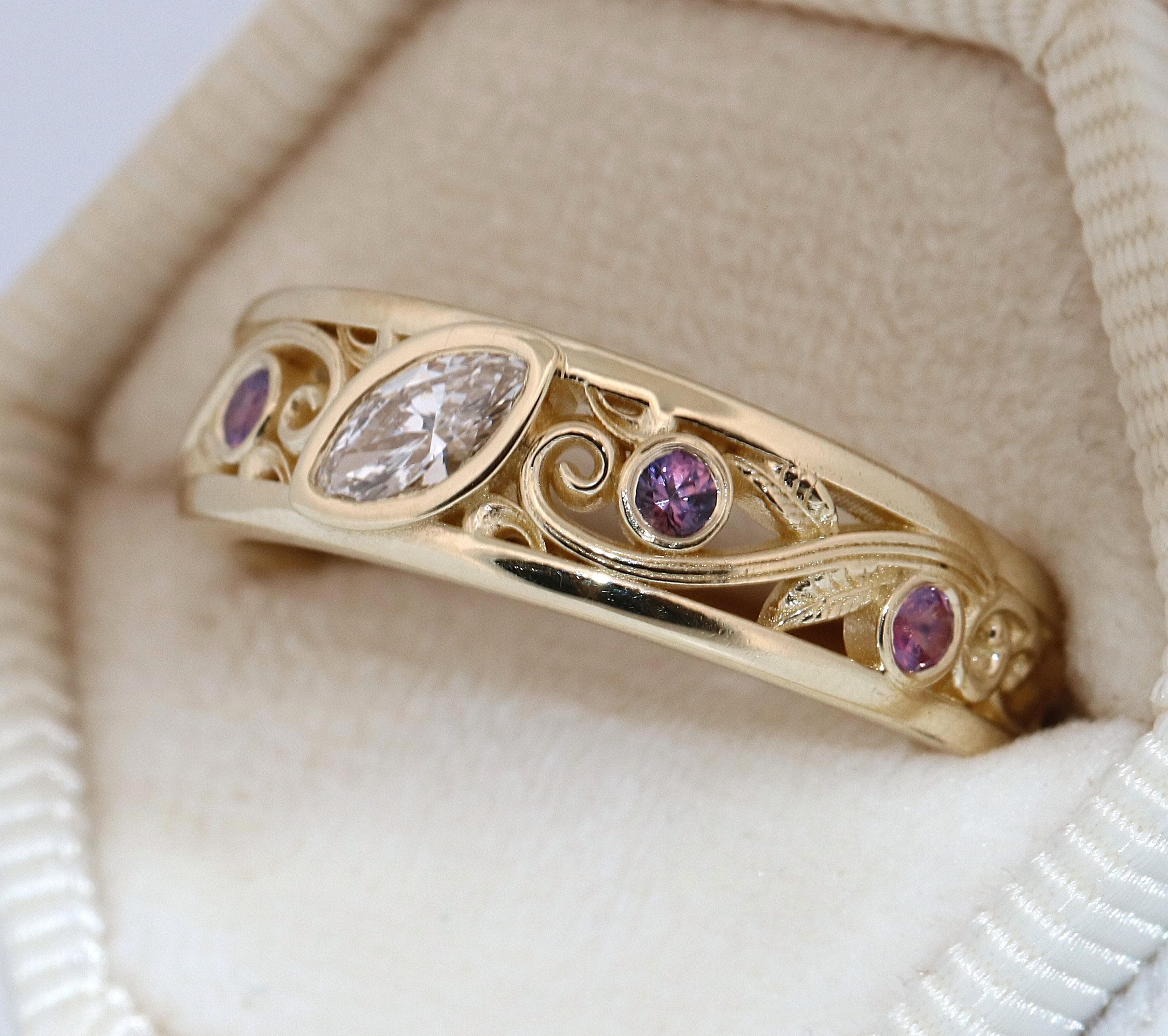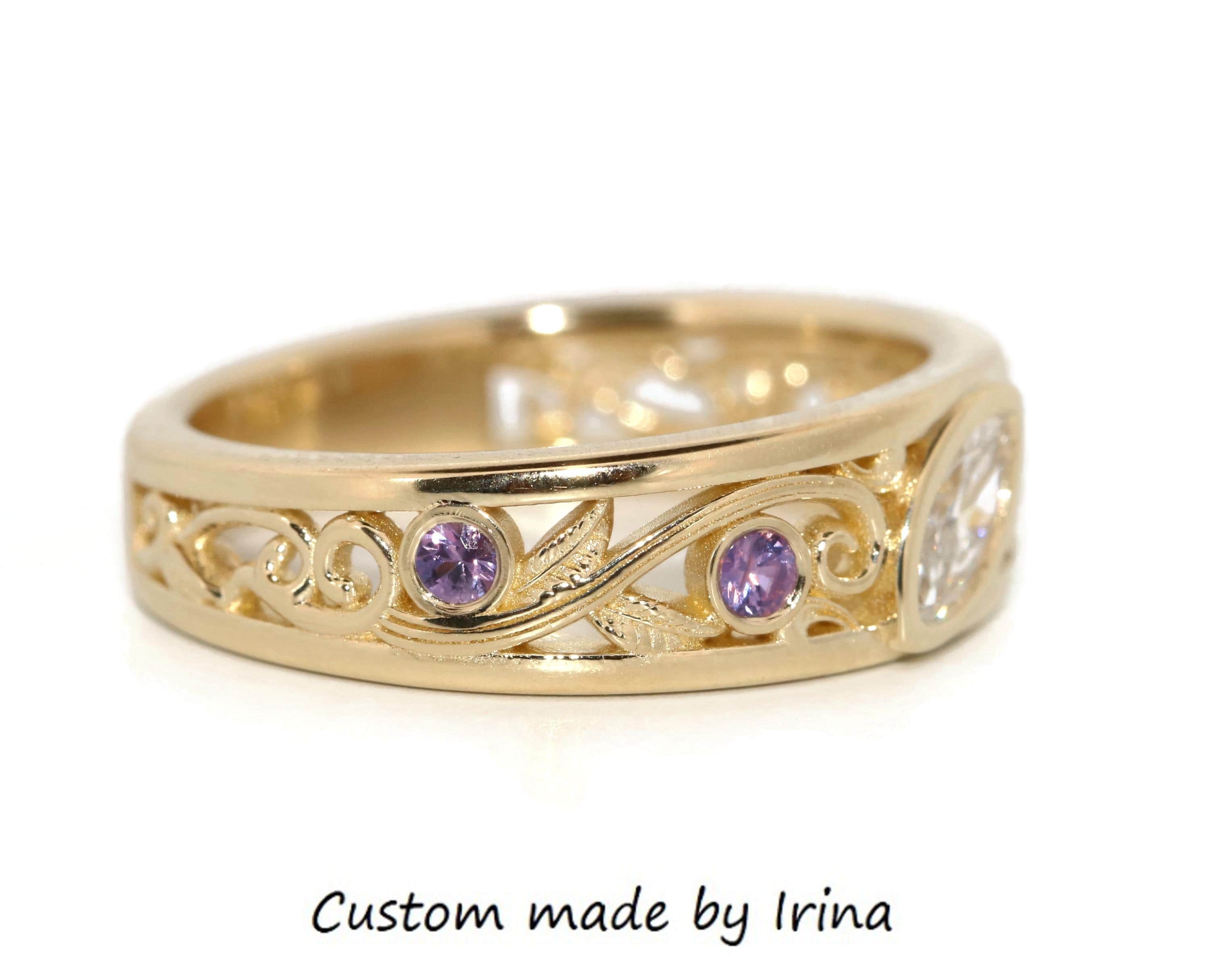 Custom-made Vine Leaf Engagement-Wedding Ring.