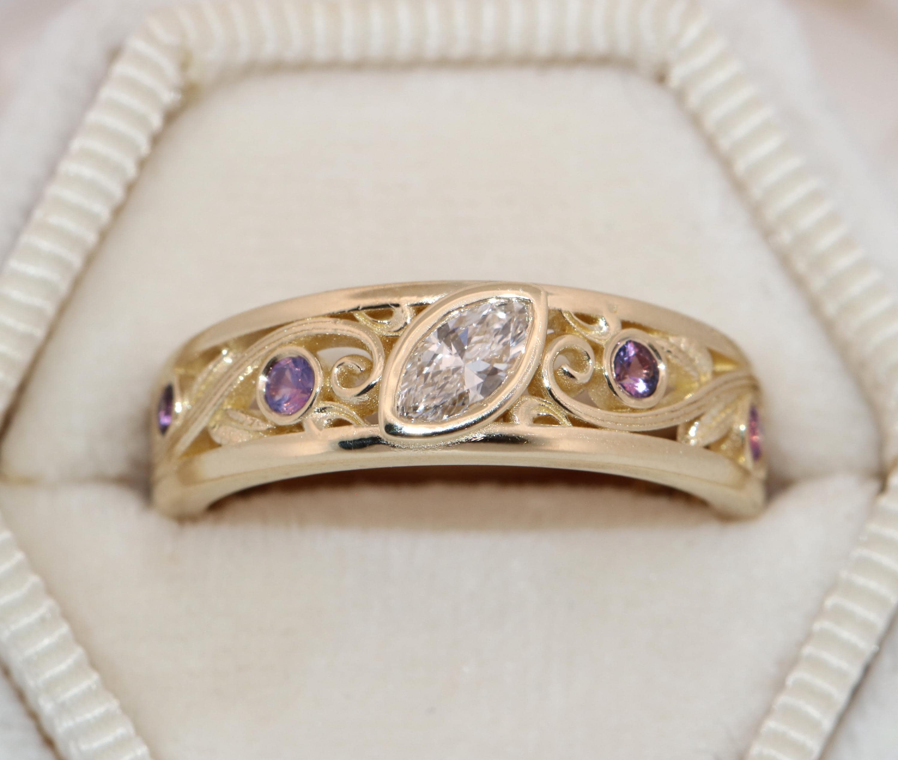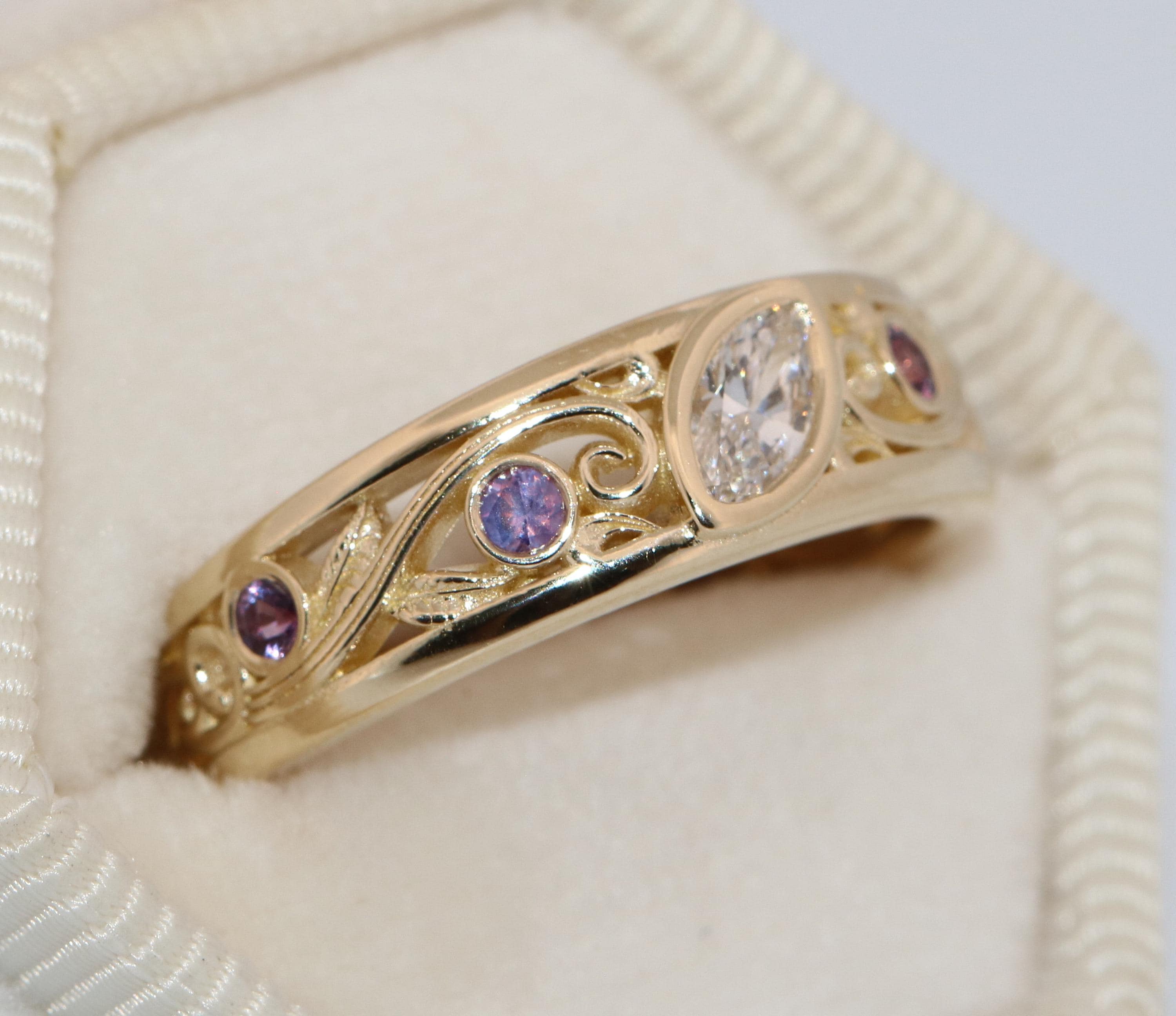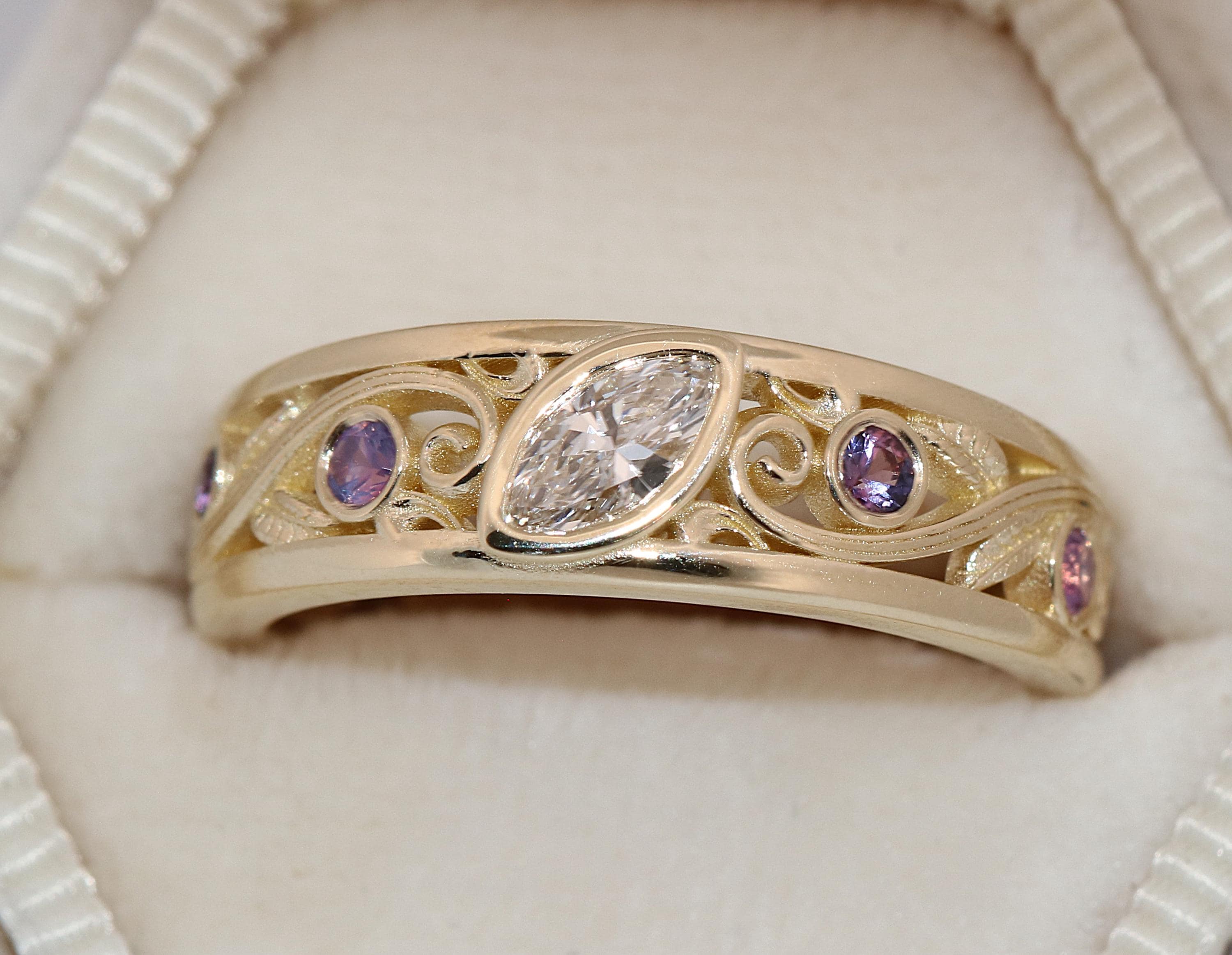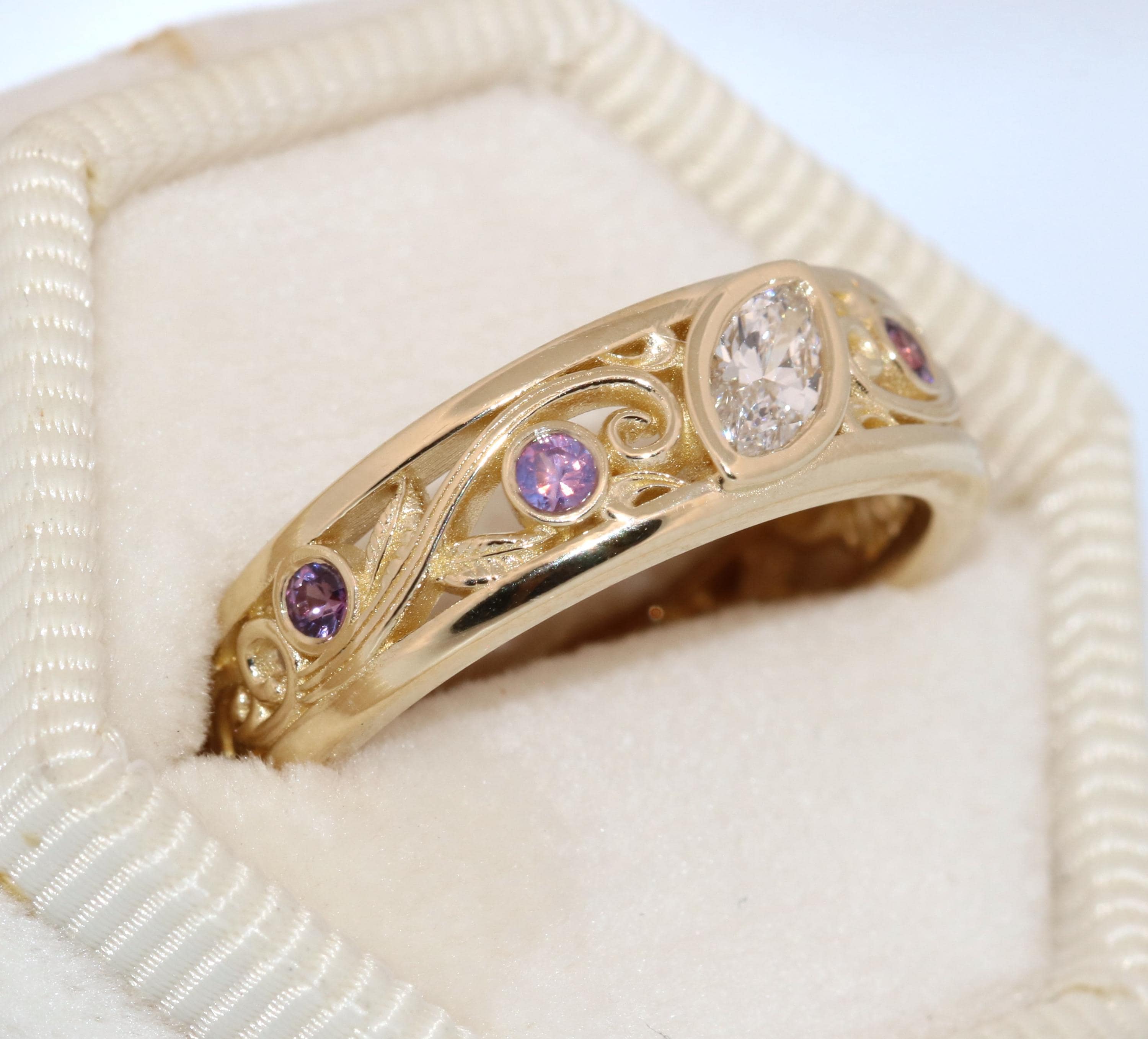 Custom-made Vine Leaf Engagement-Wedding Ring.