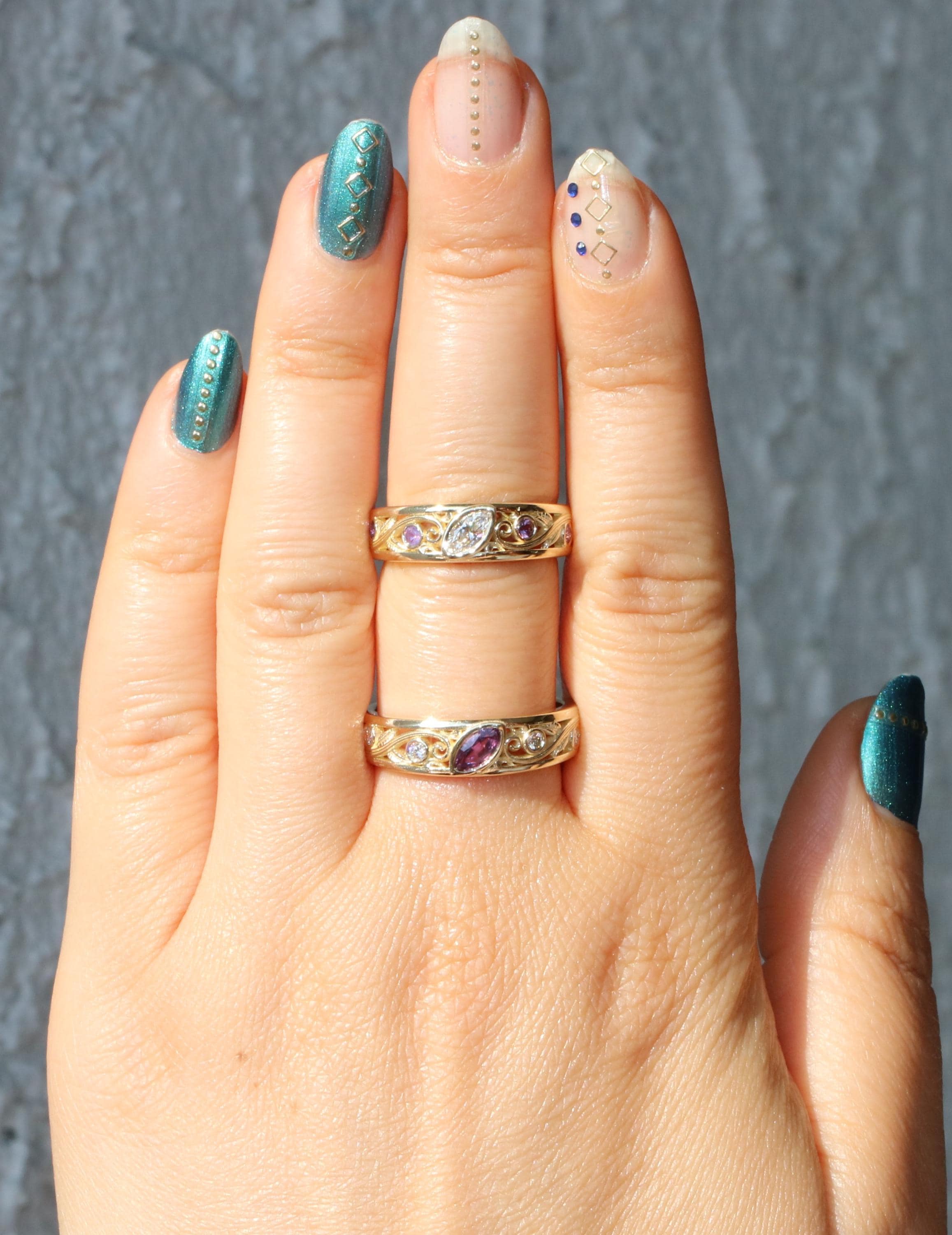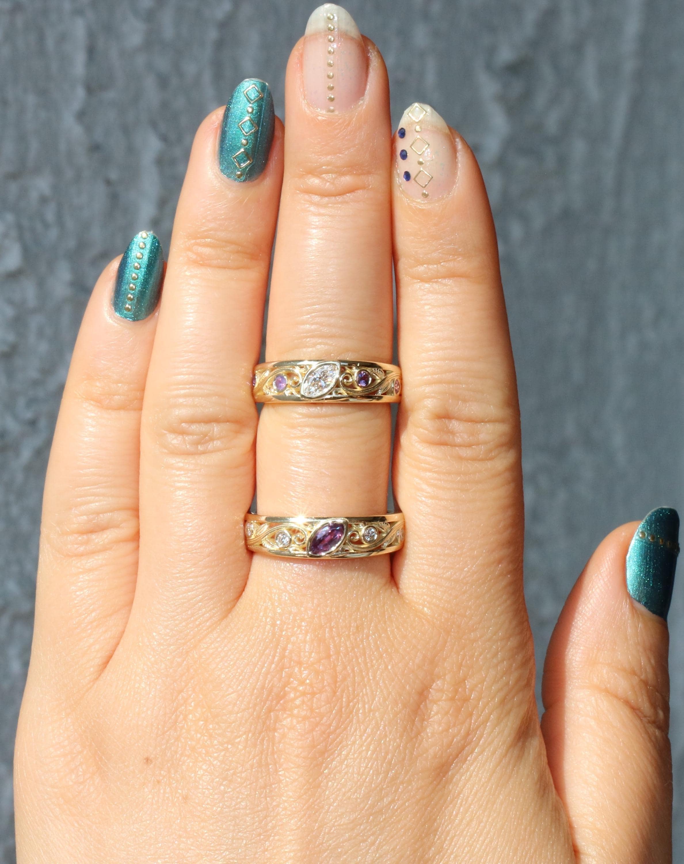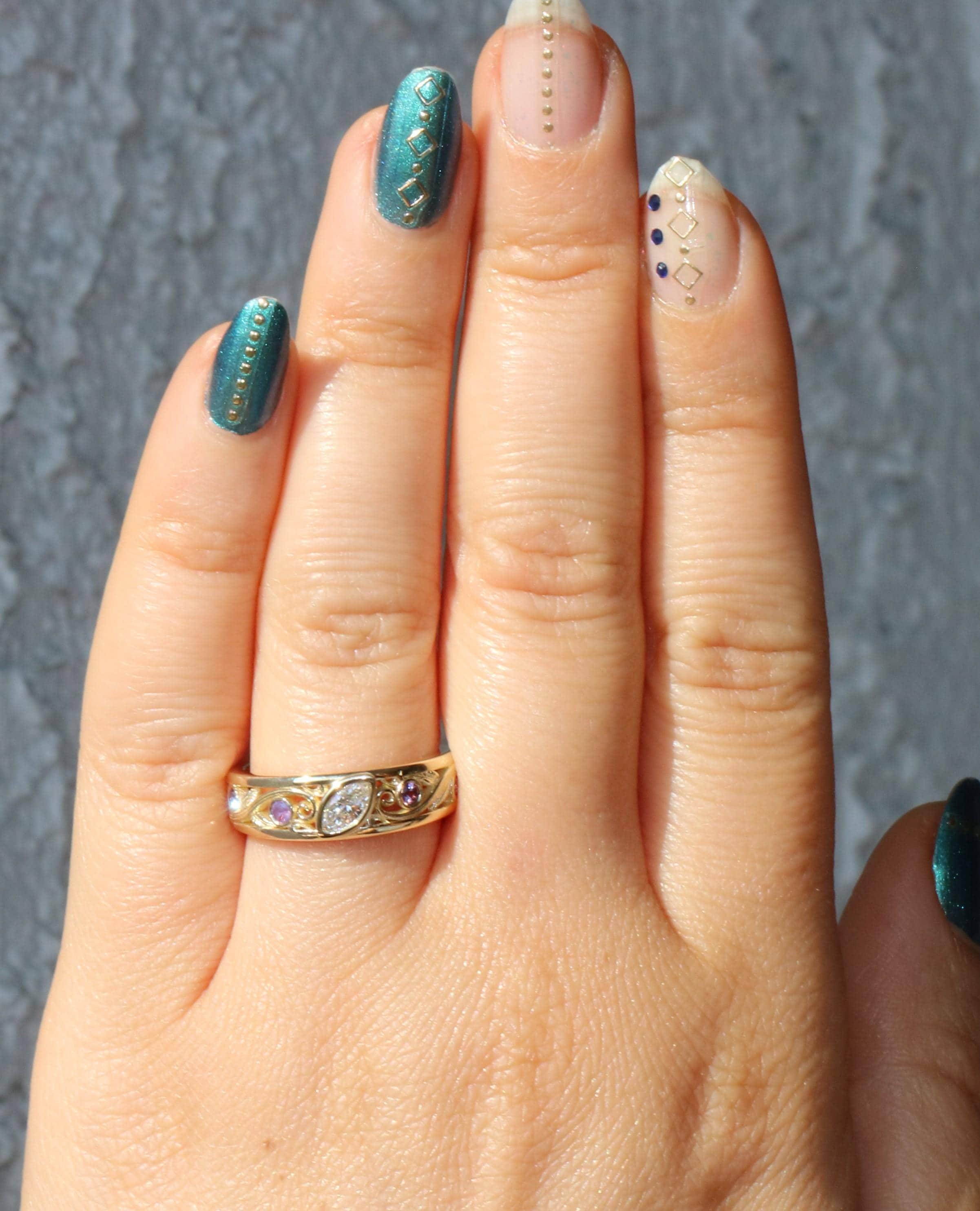This ring has natural, ethically sourced stones and recycled gold.