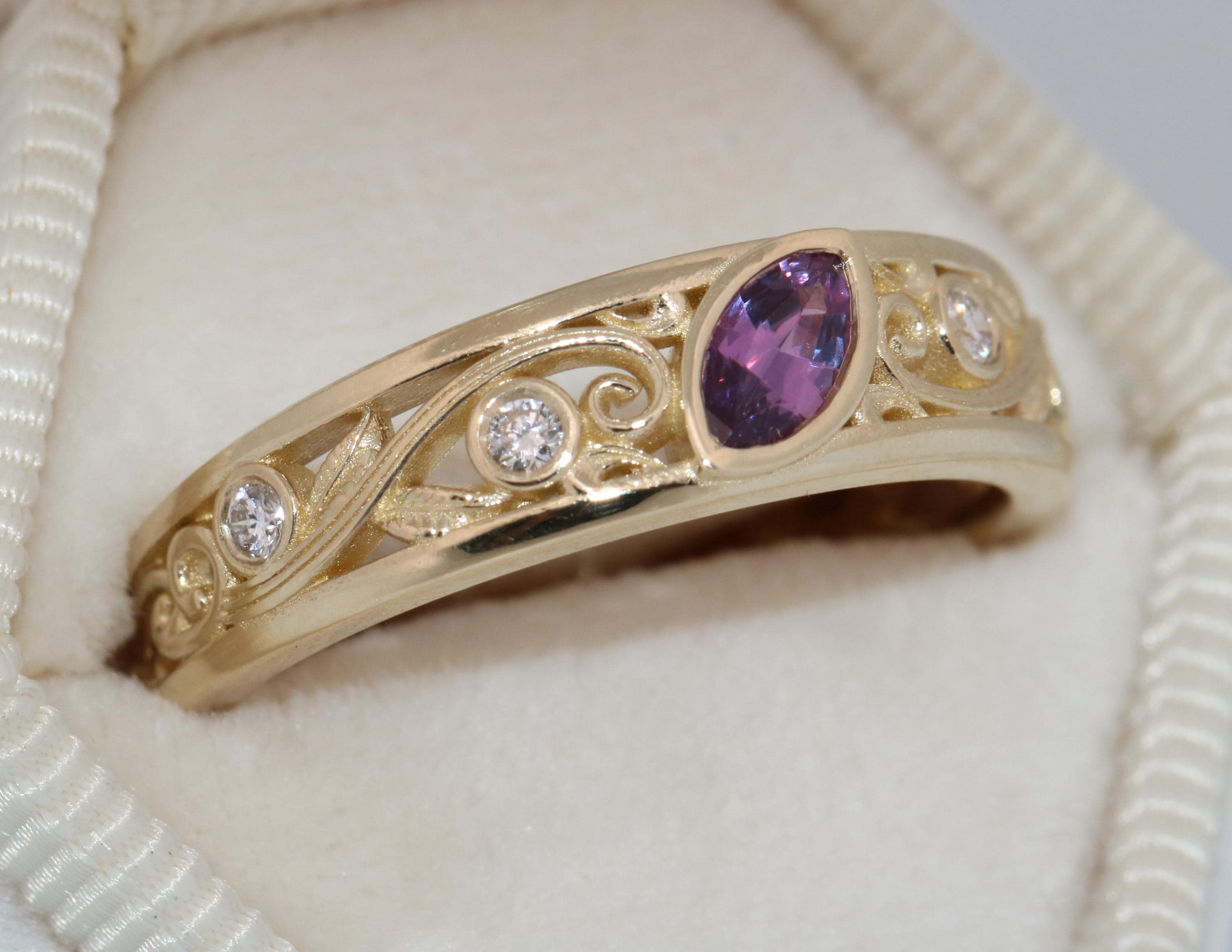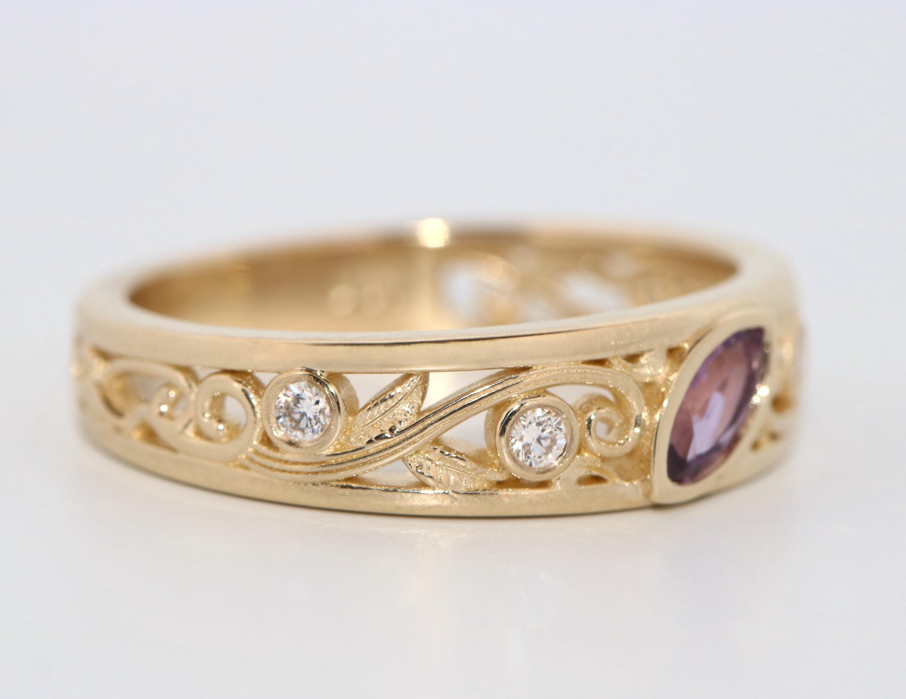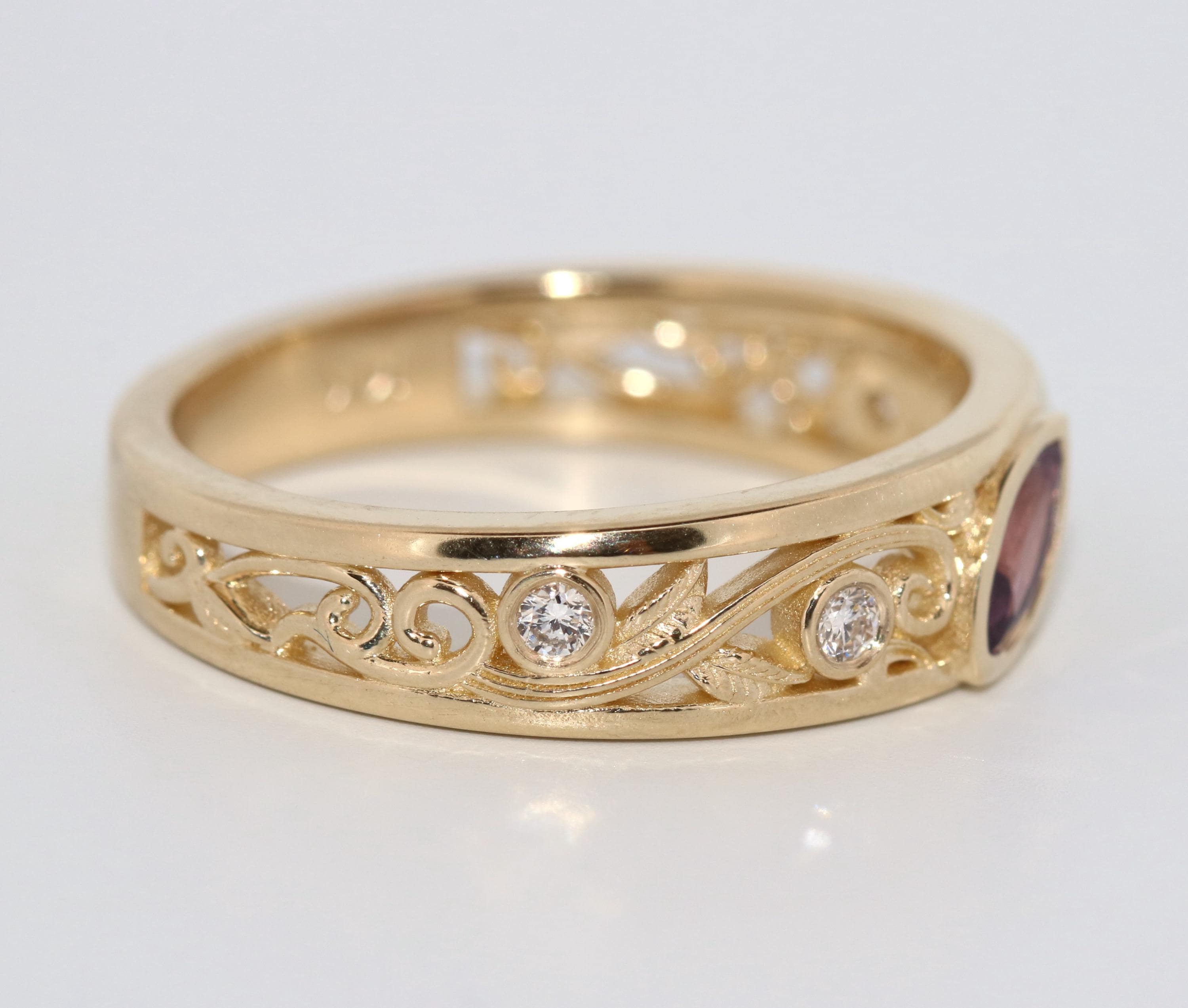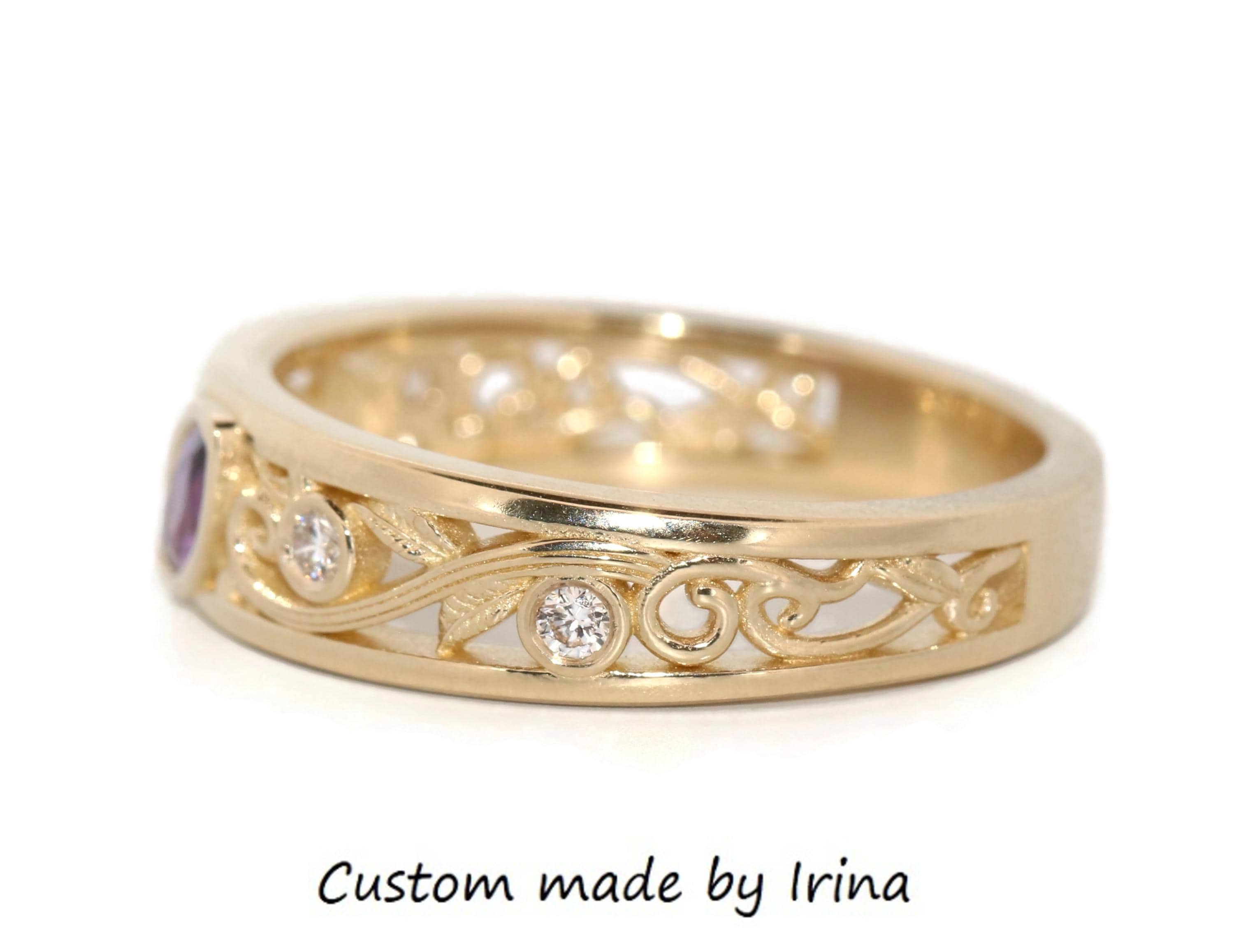 Custom-made Vine Leaf Engagement-Wedding Ring.