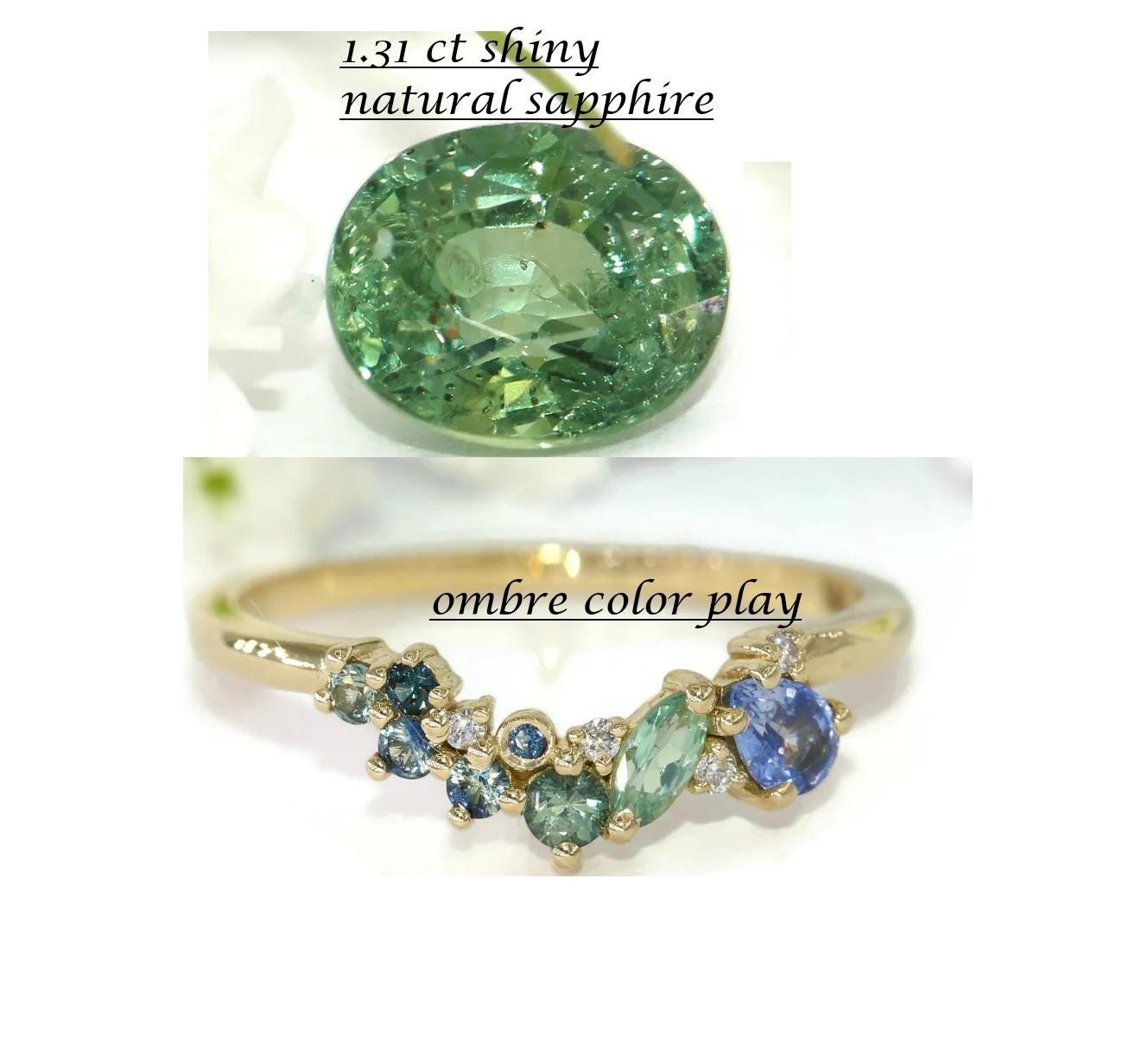 Ombre cluster stones: teal blue green natural sapphires and diamonds