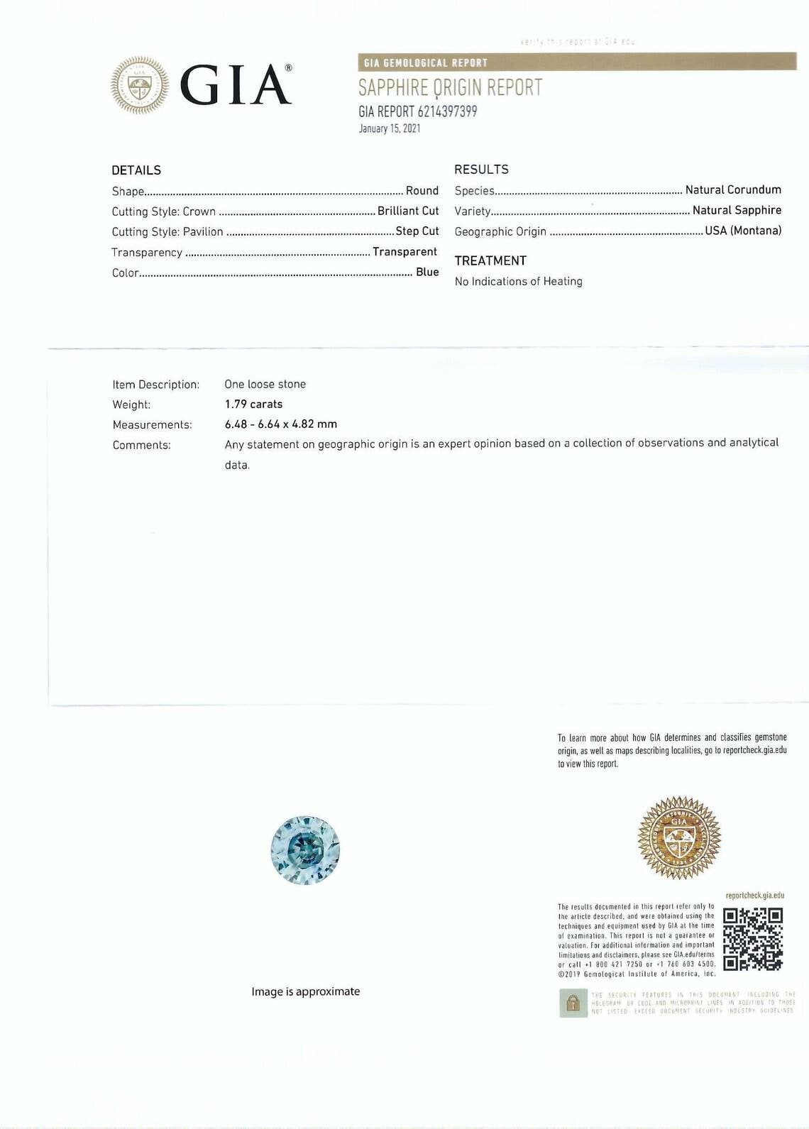 Center Stone: Round Shiny Blue Natural Montana Sapphire