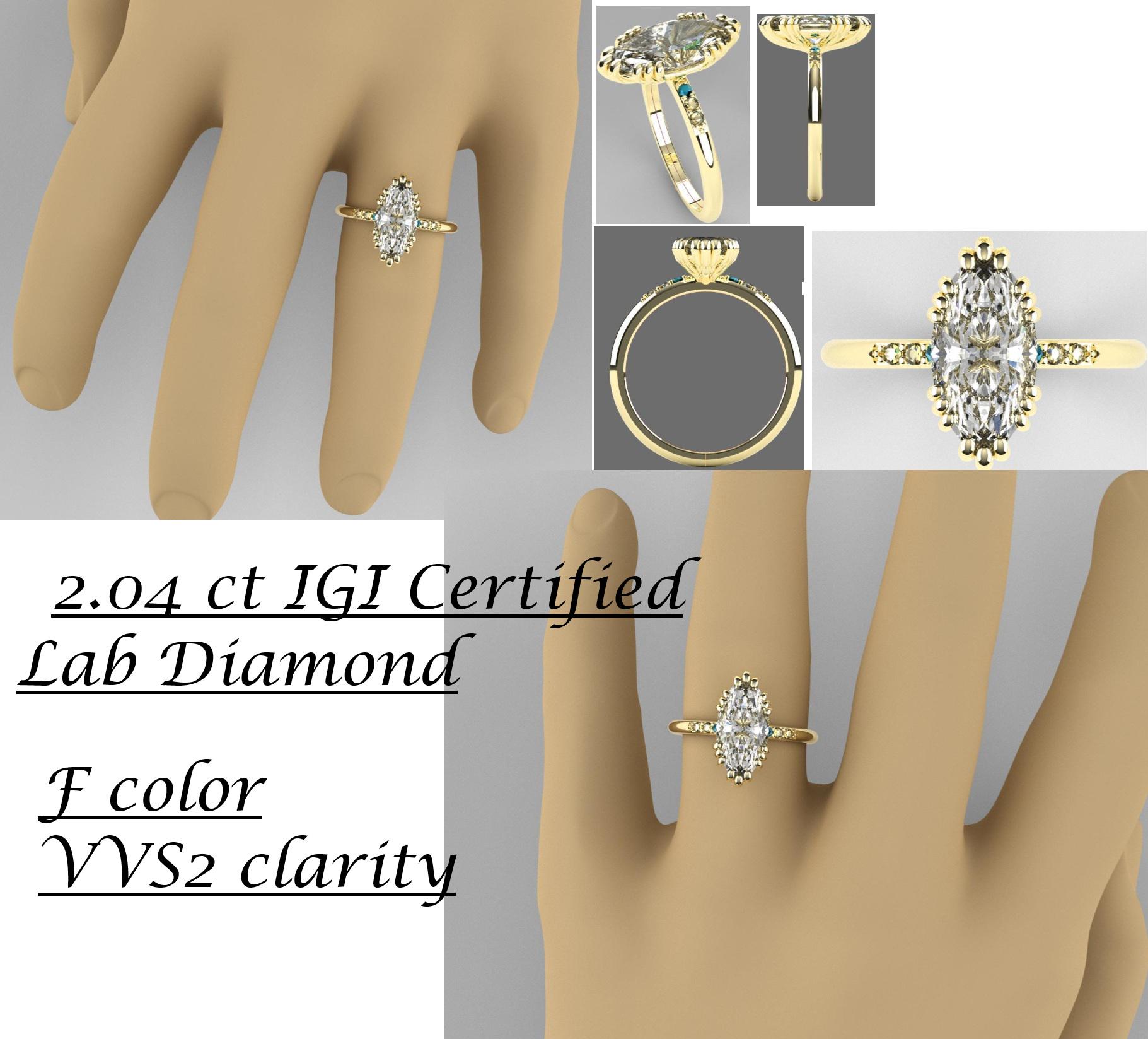 2.04 ct IGI Certified Marquise Engagement Ring 10k Yellow Gold. Reserved for Caitlin.