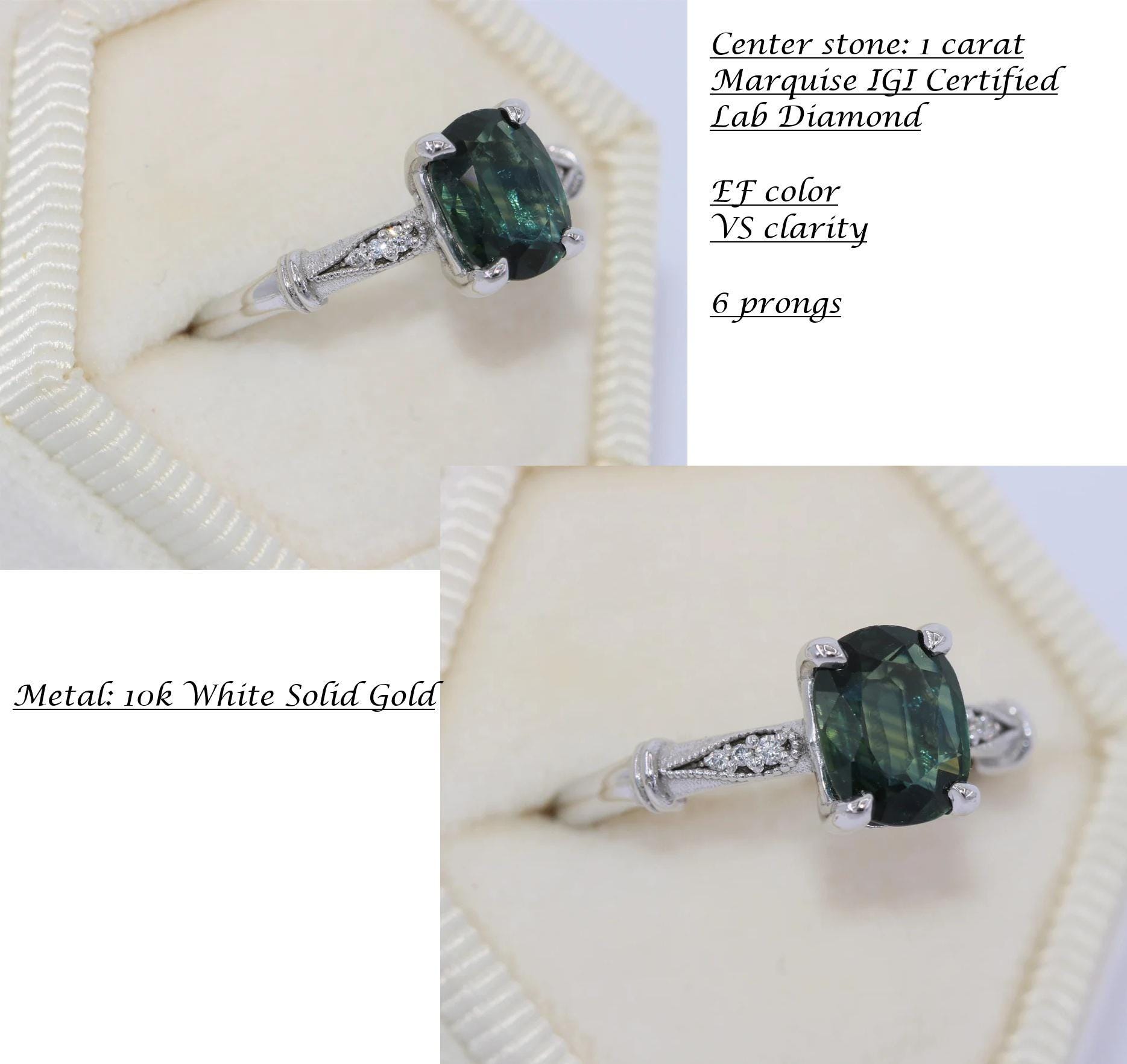 6 Prongs 1 carat IGI Certified Marquise Lab Diamond Engagement Ring.