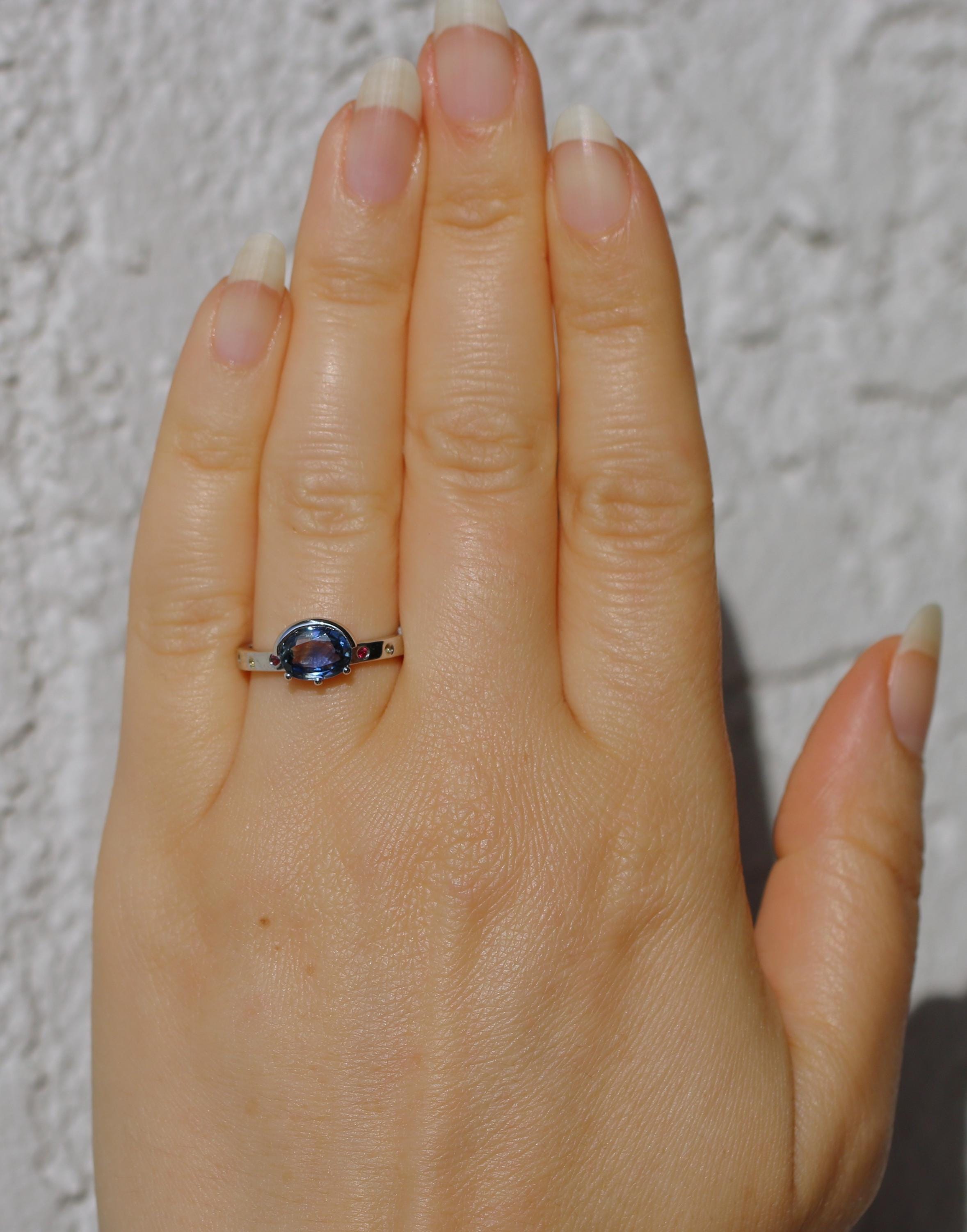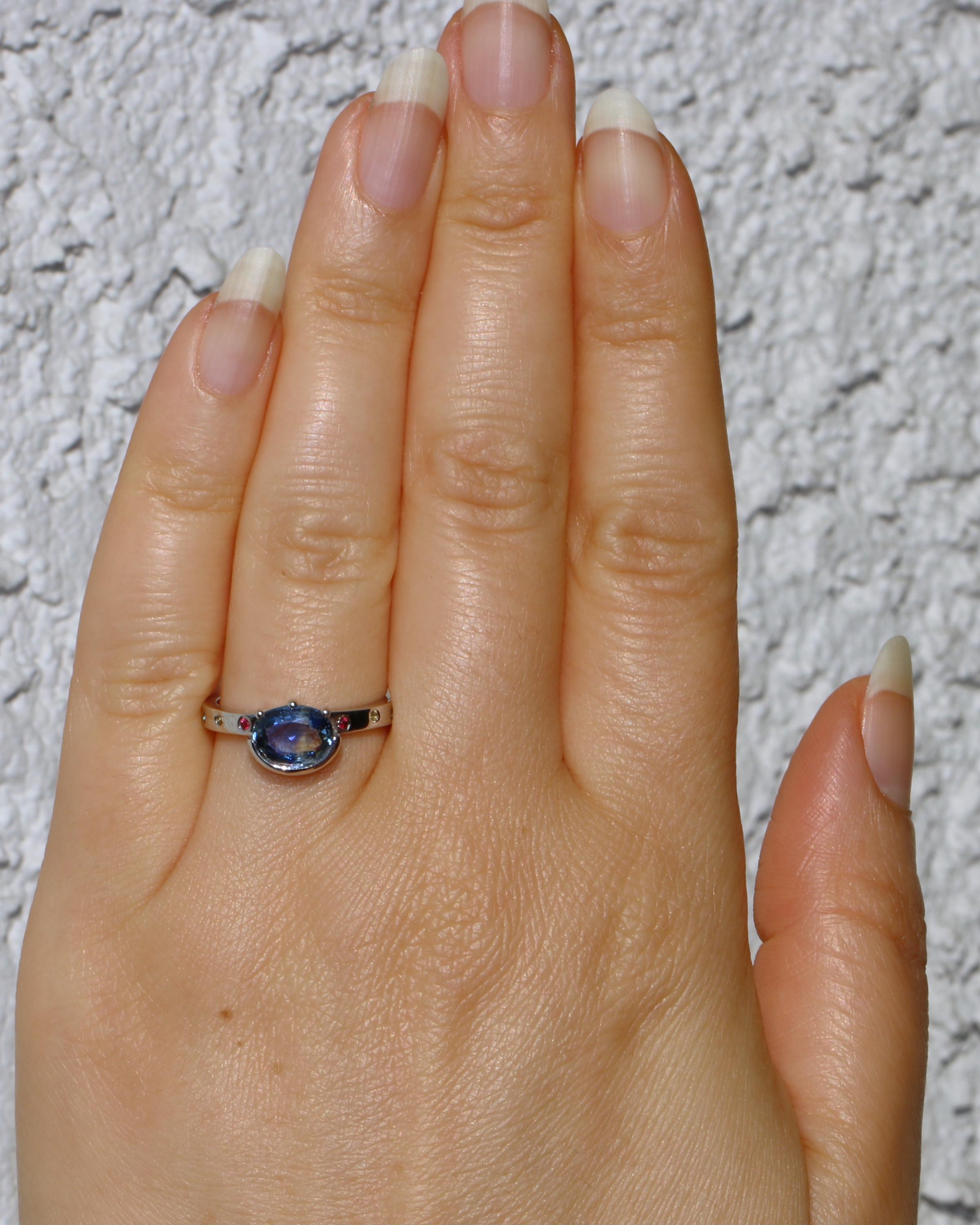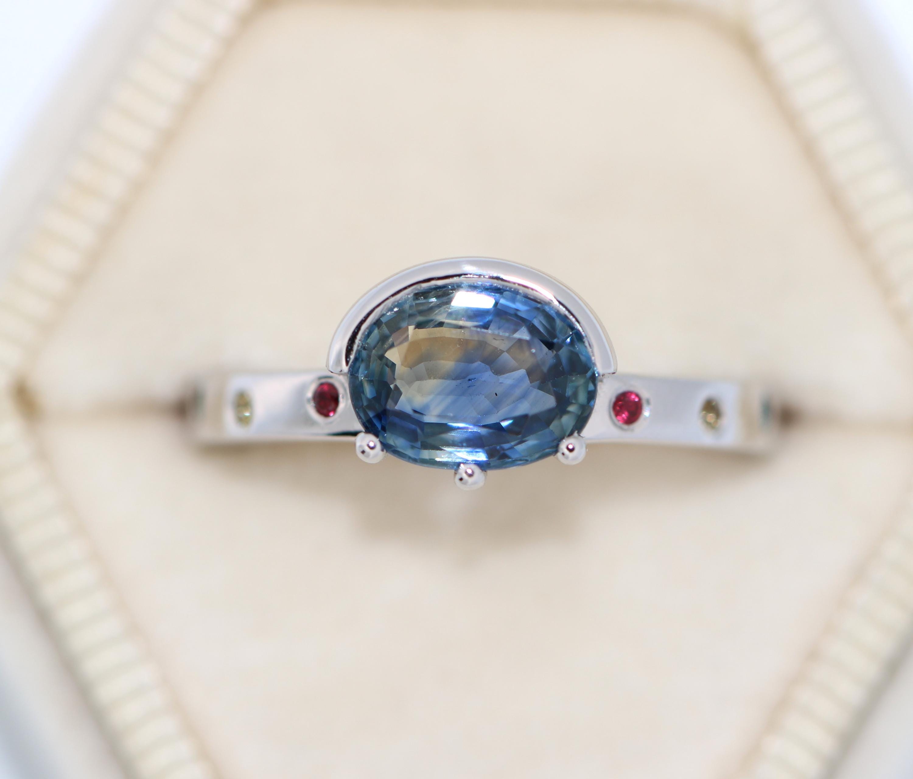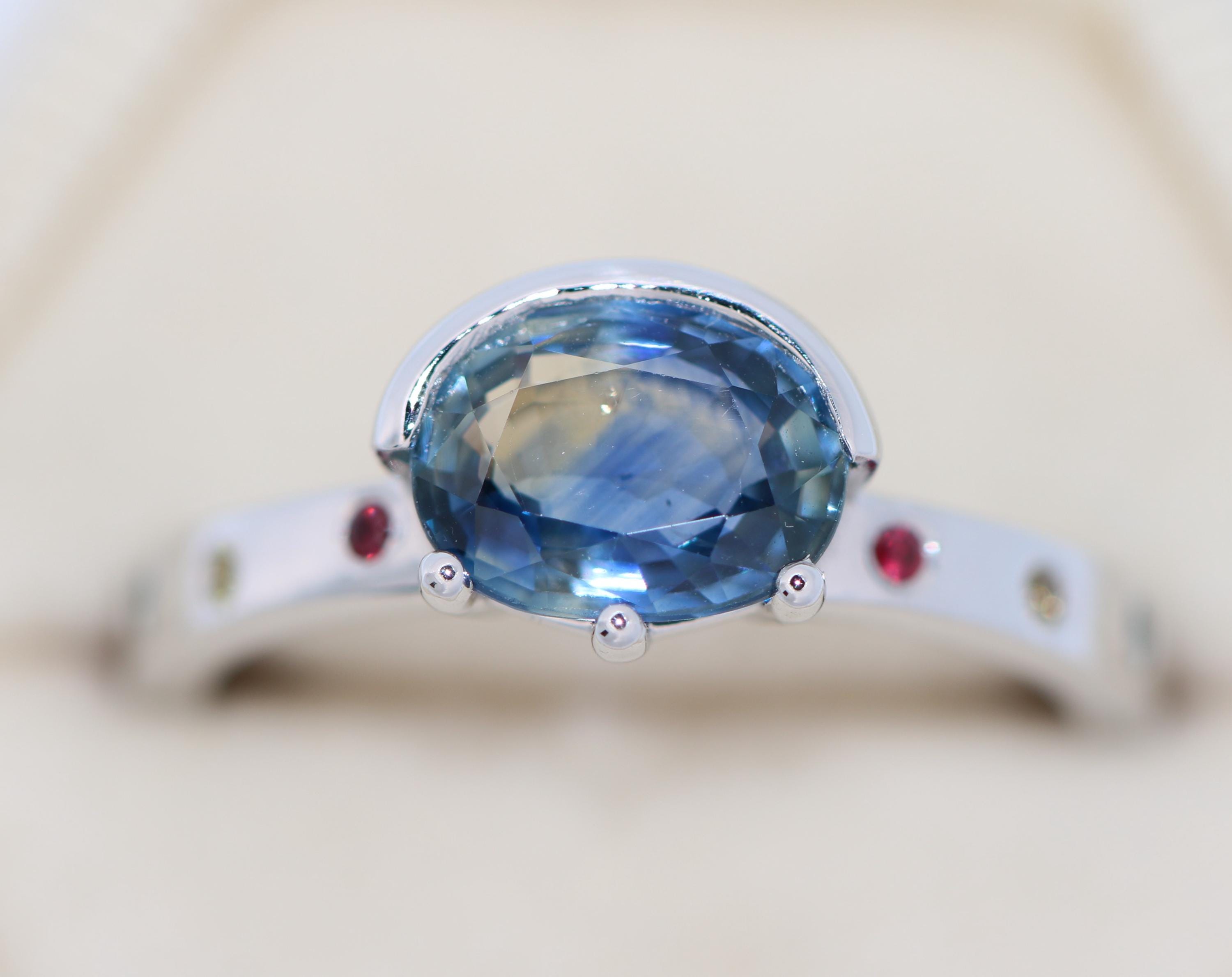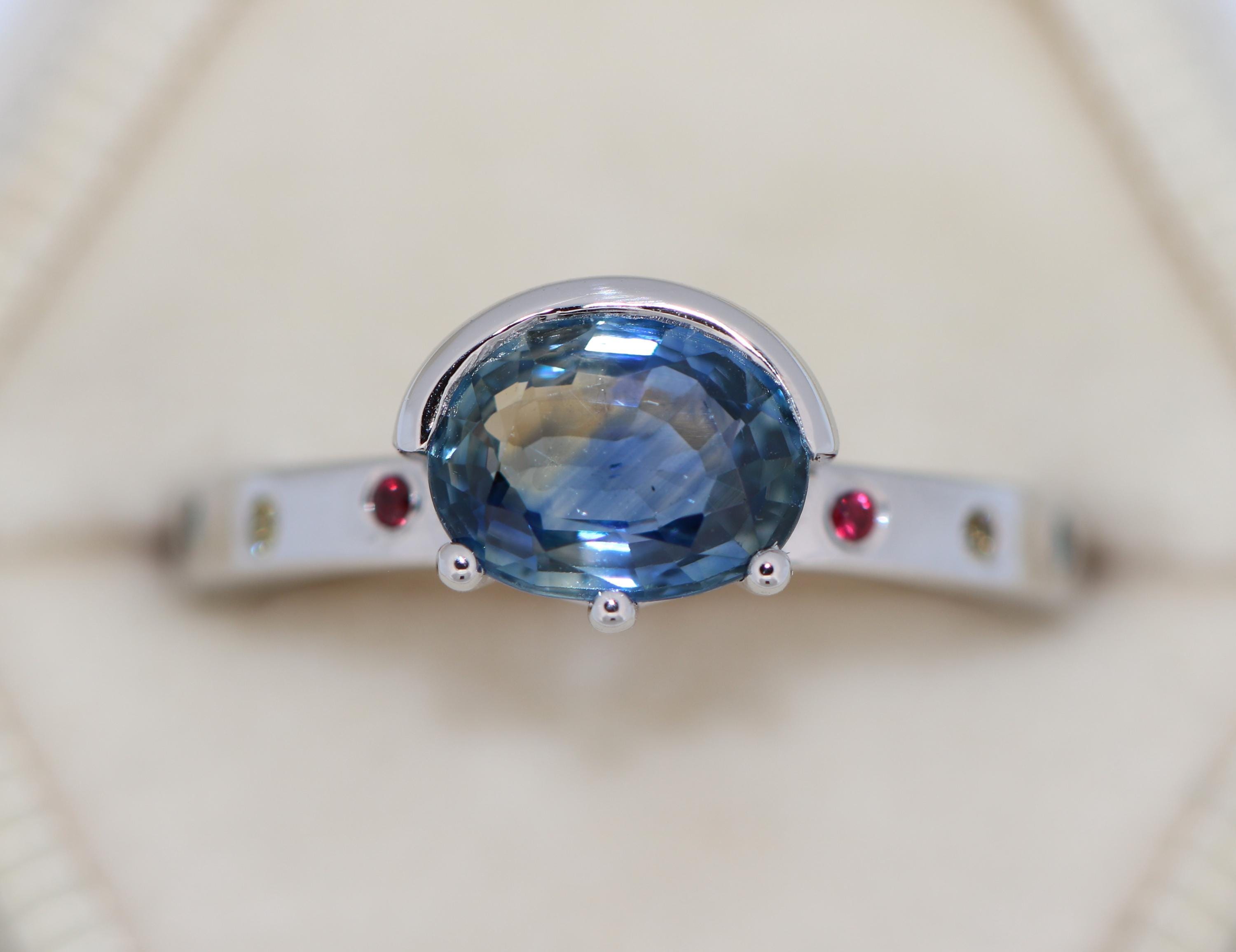 8 natural stones: 2 ruby + 2 teal sapphires + 2 yellow sapphires + 2 pink sapphires (0.07 cwt.)