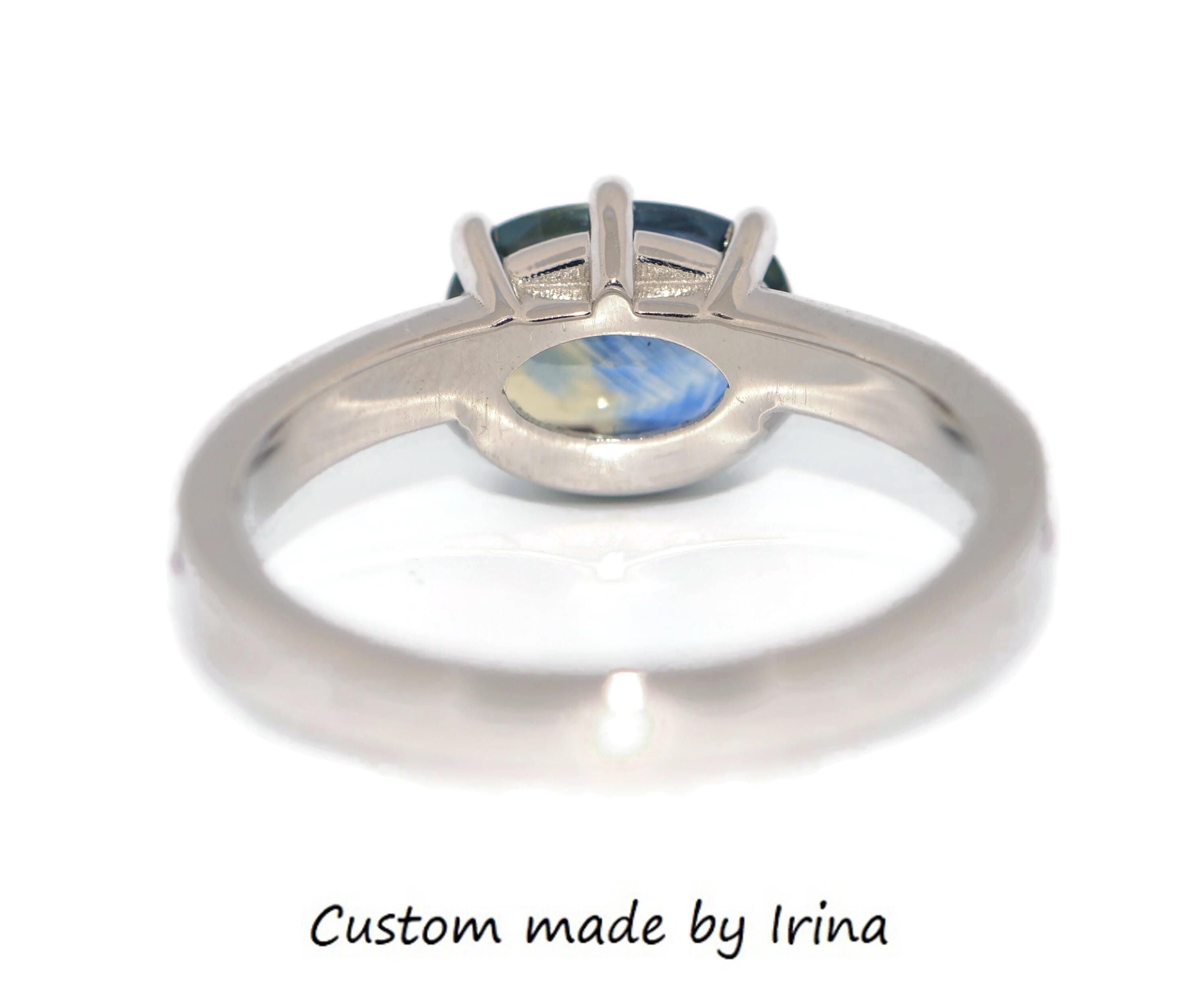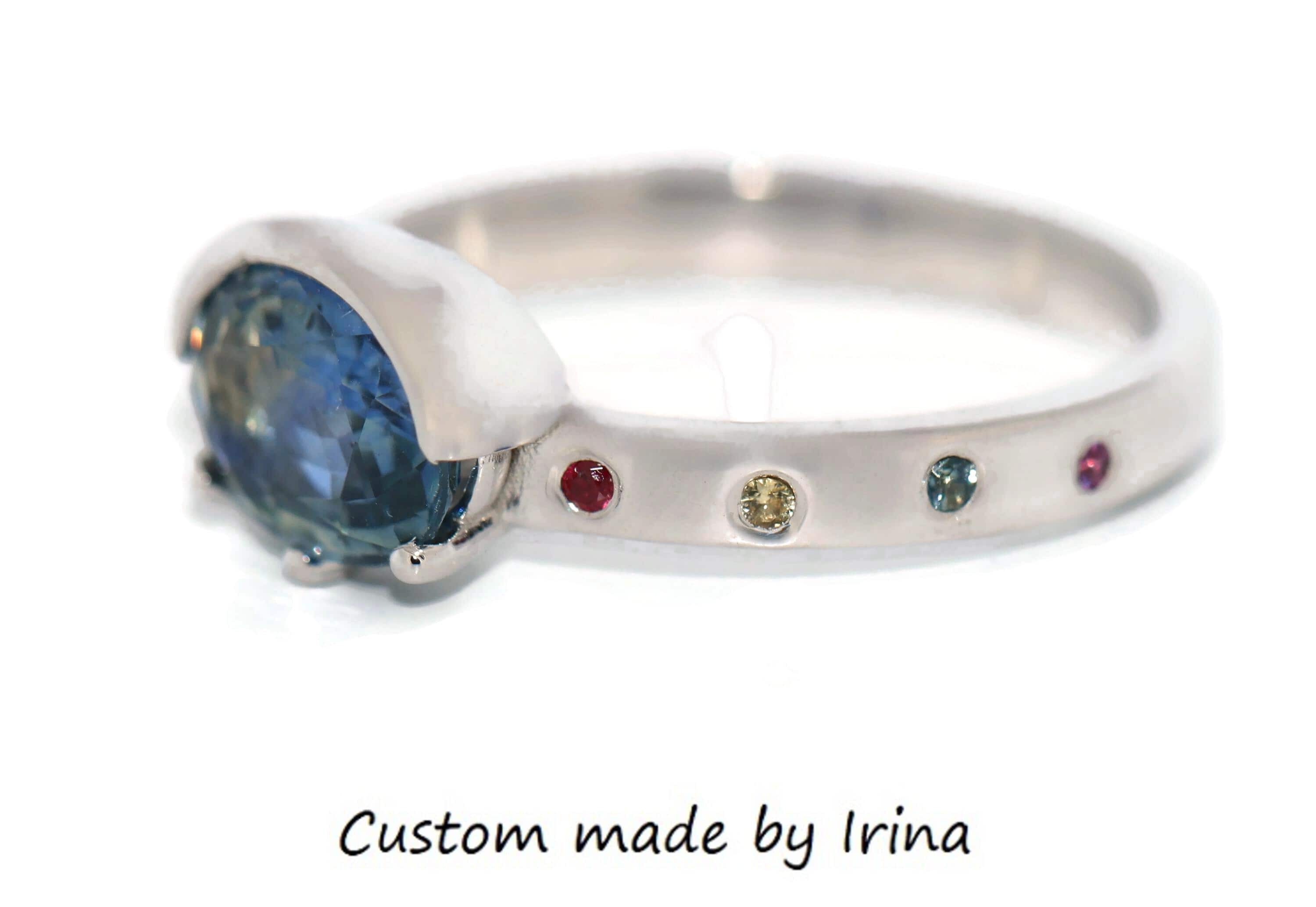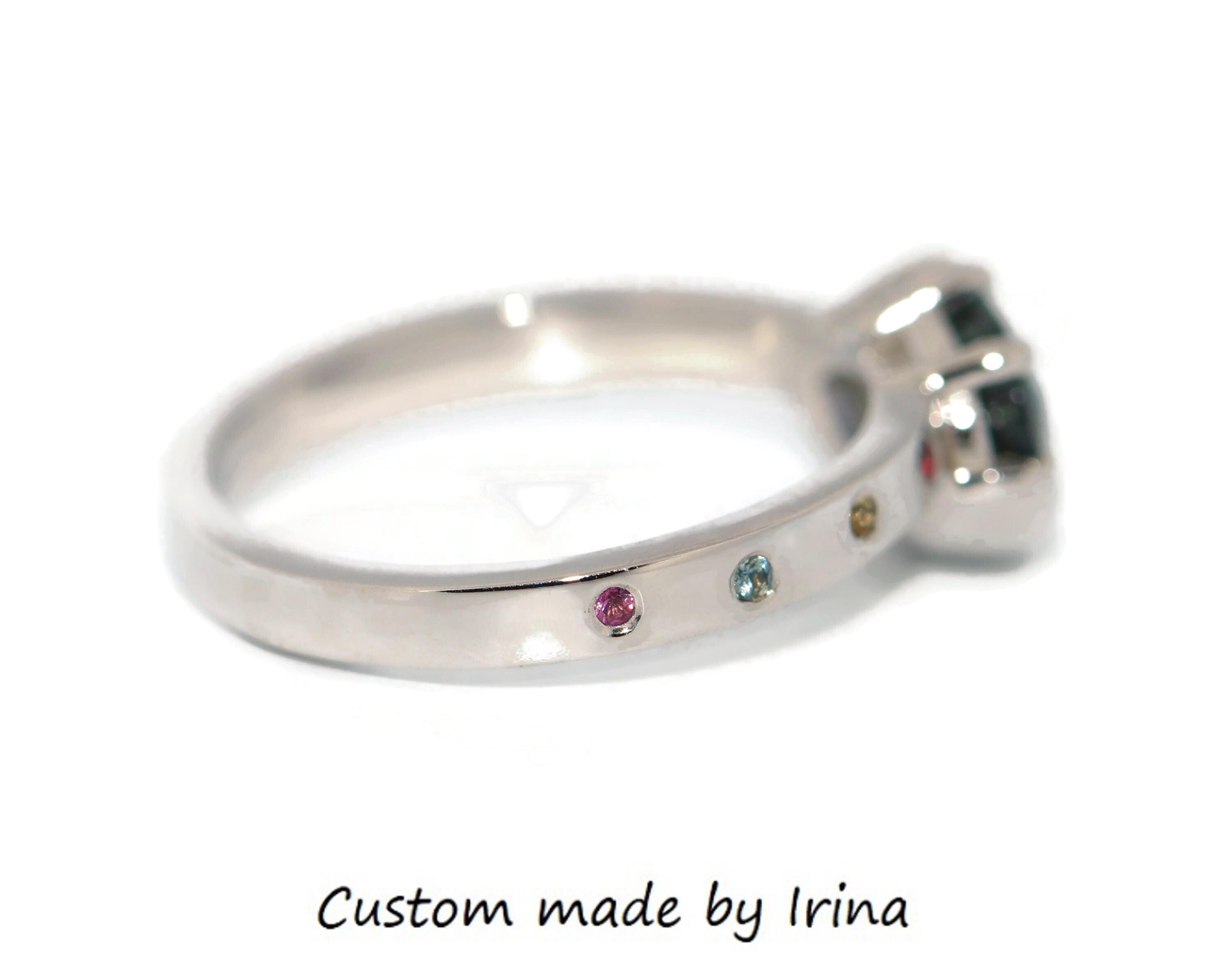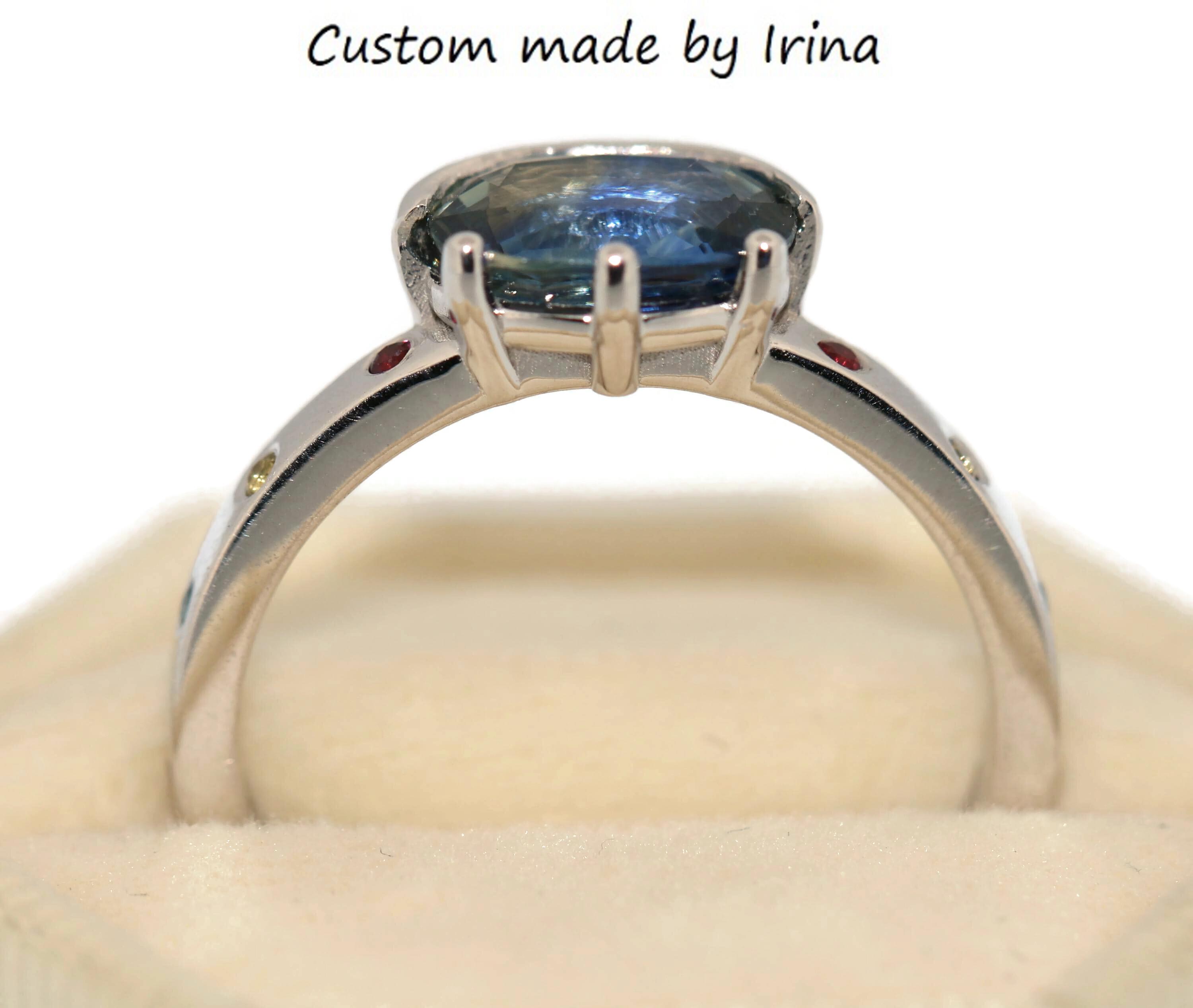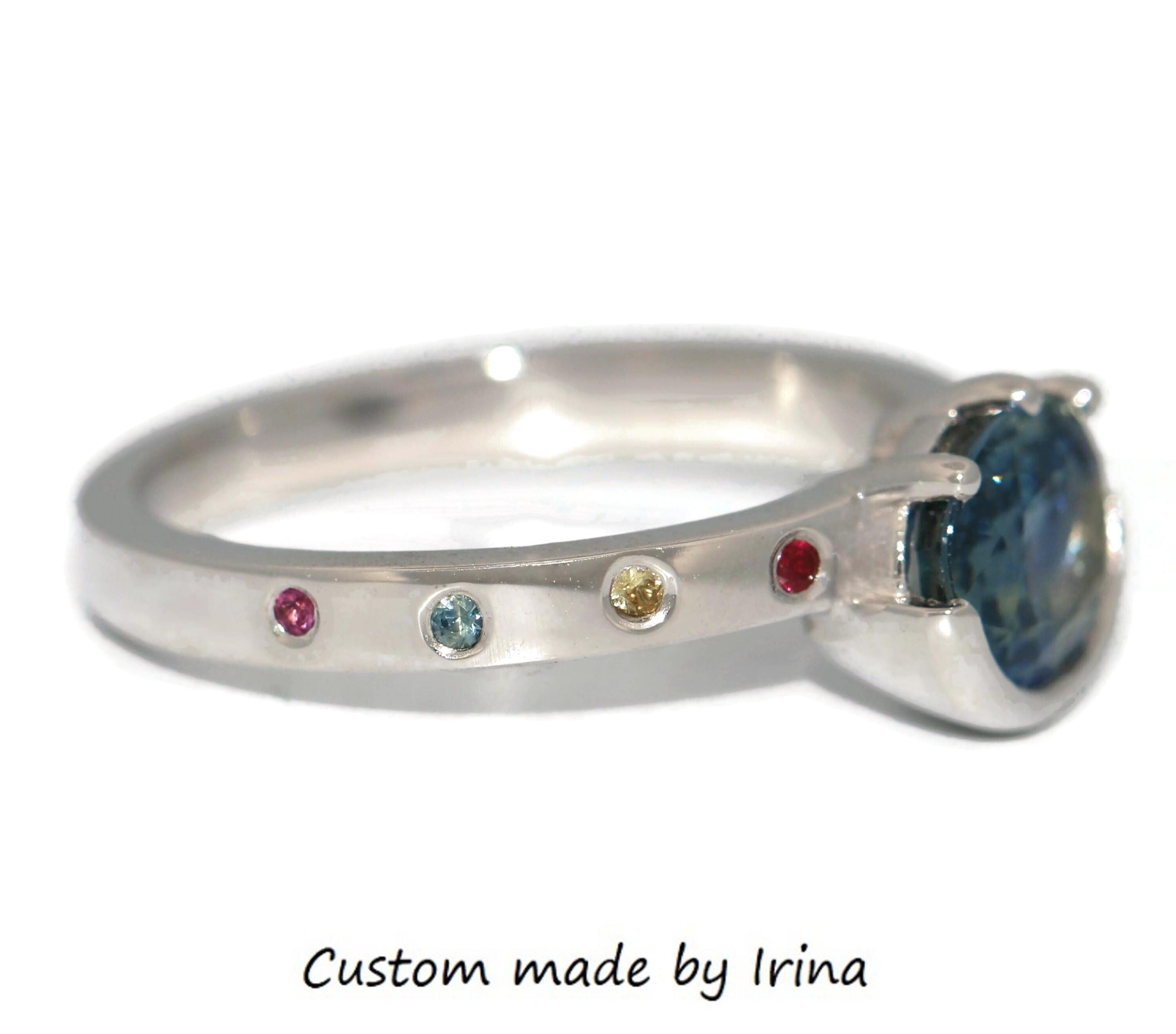 Can be custom made with any shape, any color center and side stones.