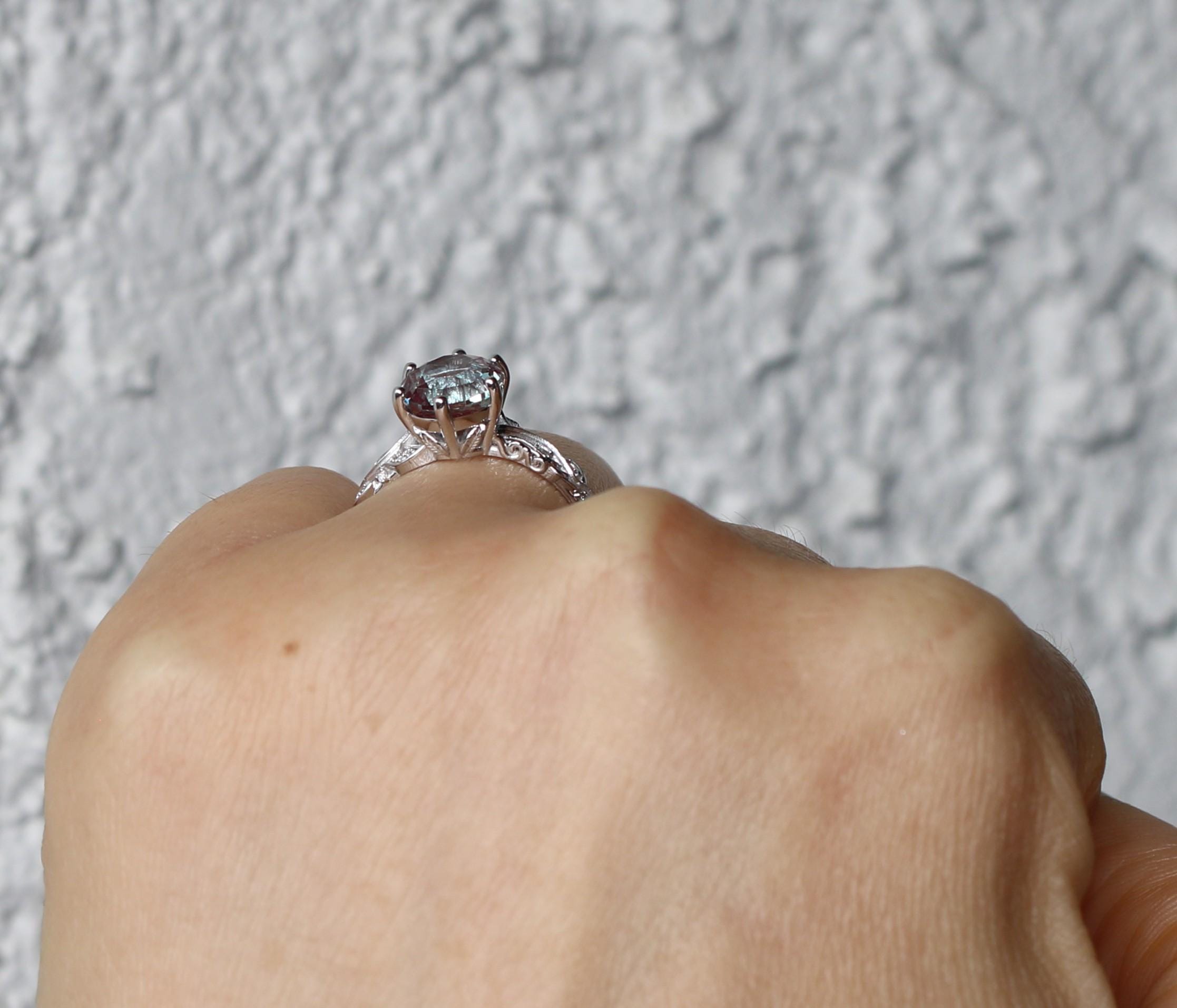 Center stone: 2 ct oval lab alexandrite