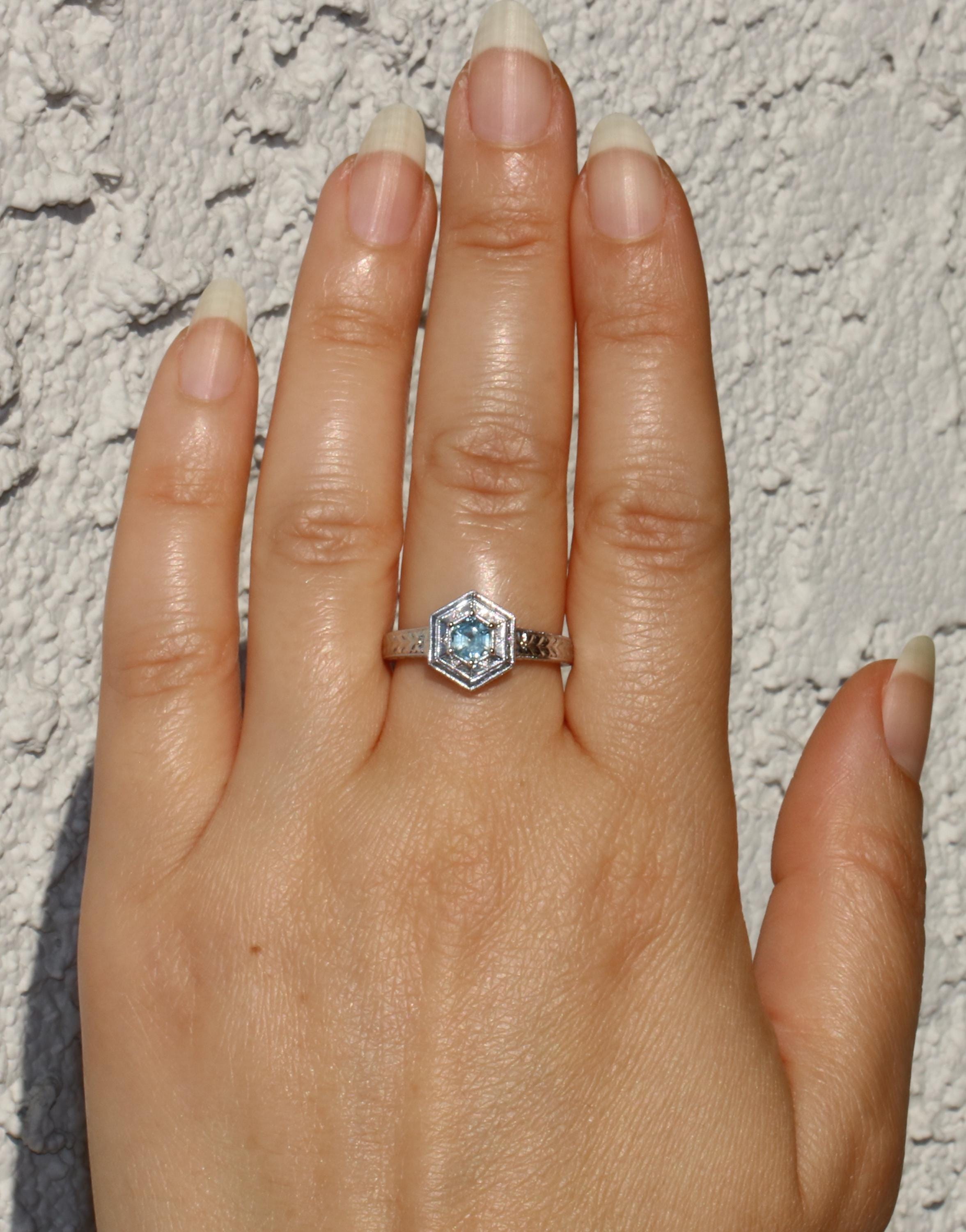Center stone of the original ring was 0.58 ct Hexagon Unheated Natural Montana Sapphire