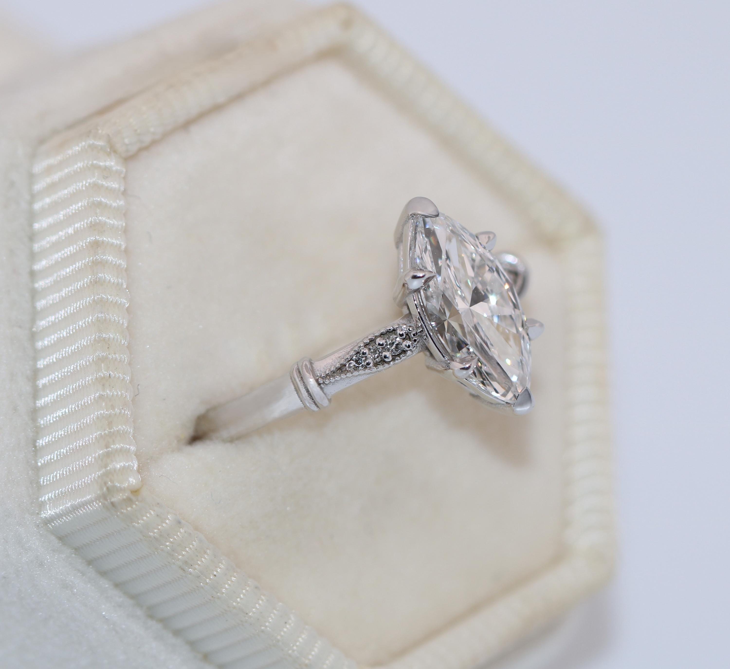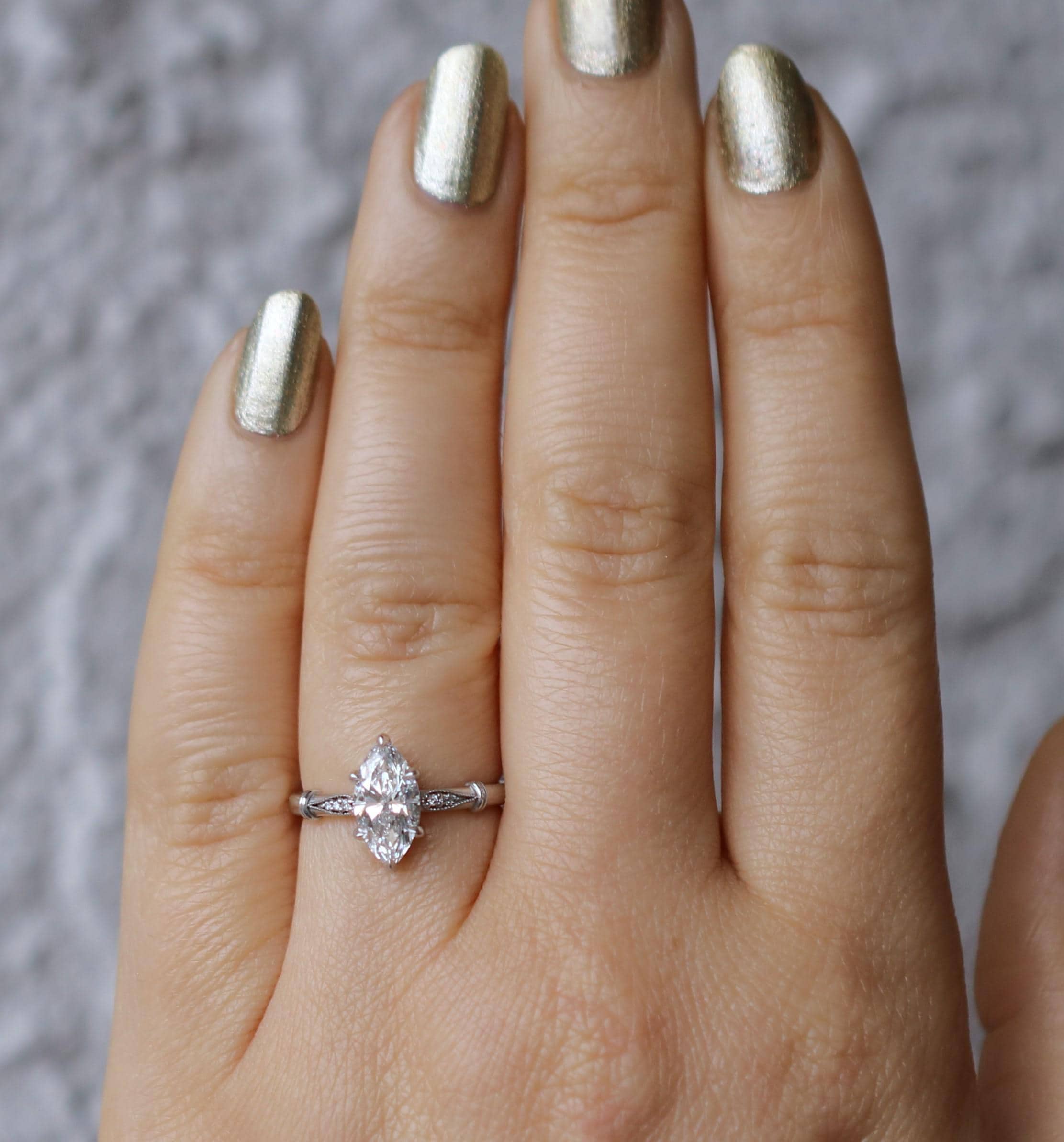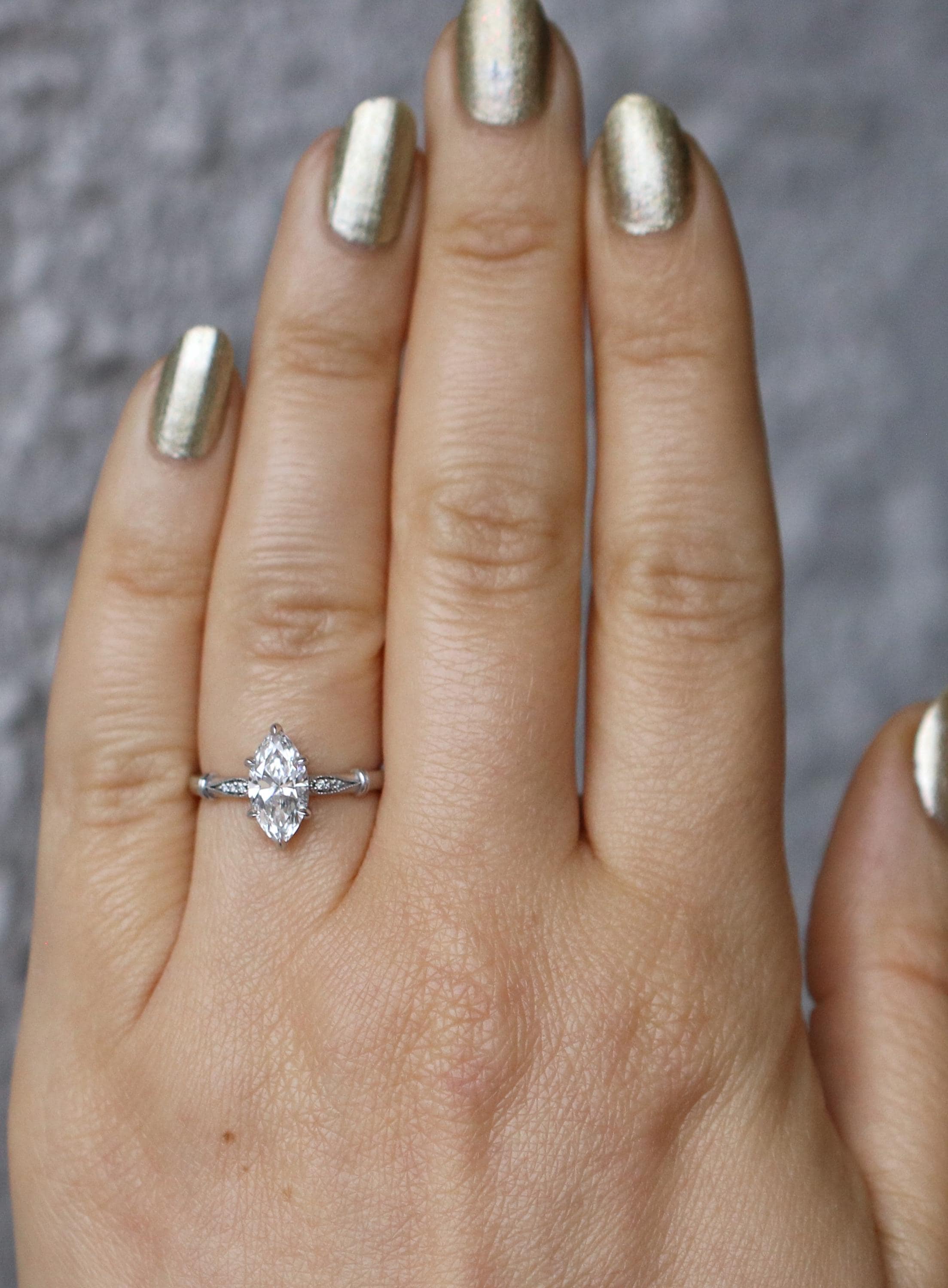6 Prongs 1 carat IGI Certified Marquise Lab Diamond Engagement Ring.