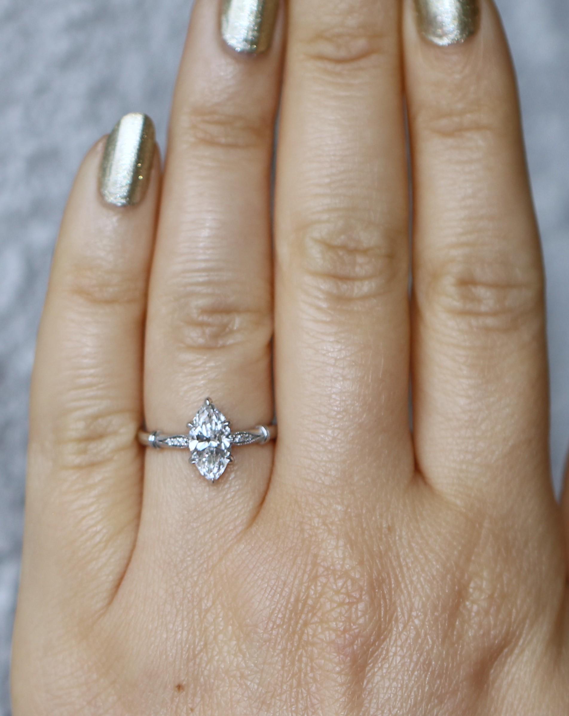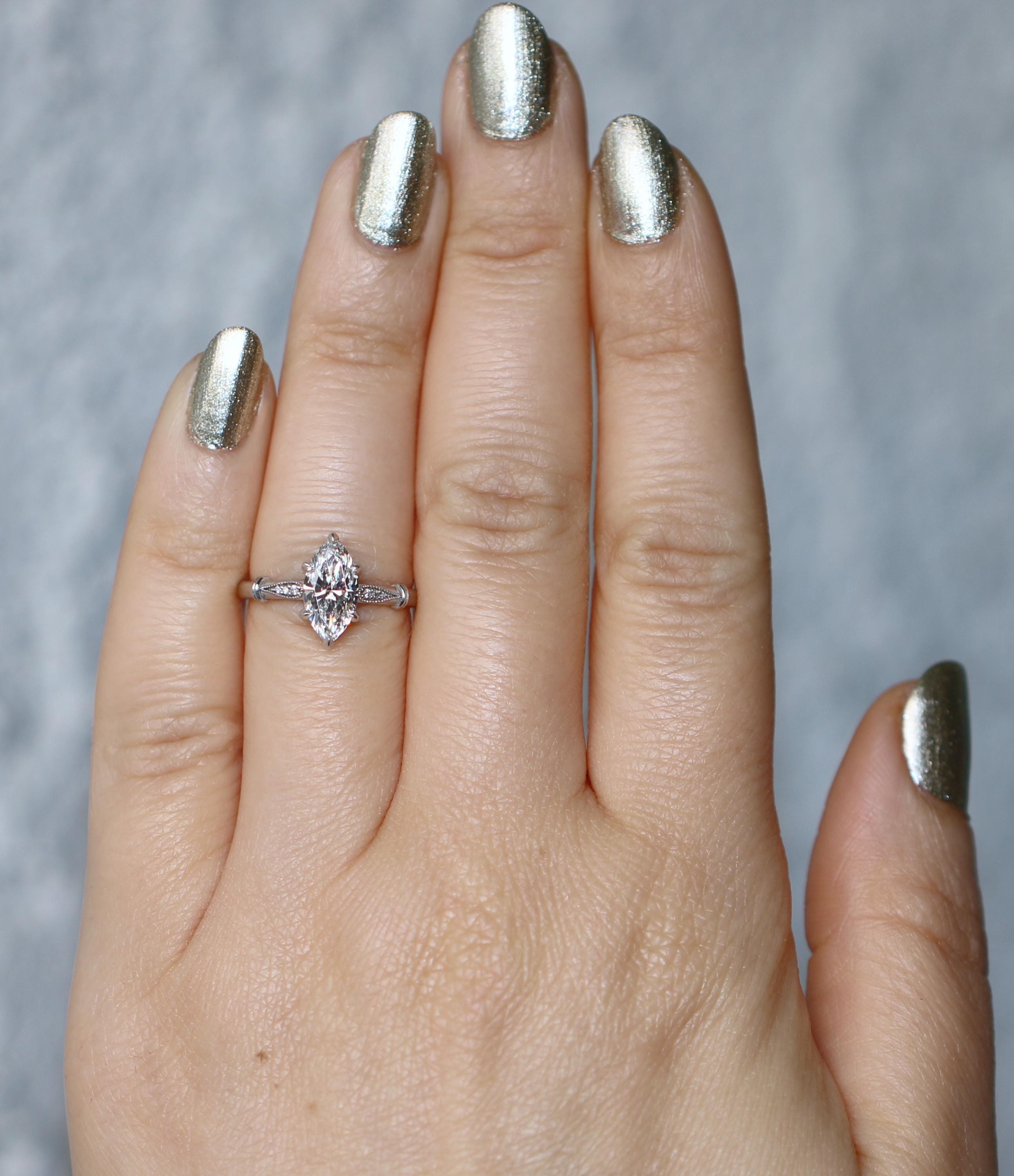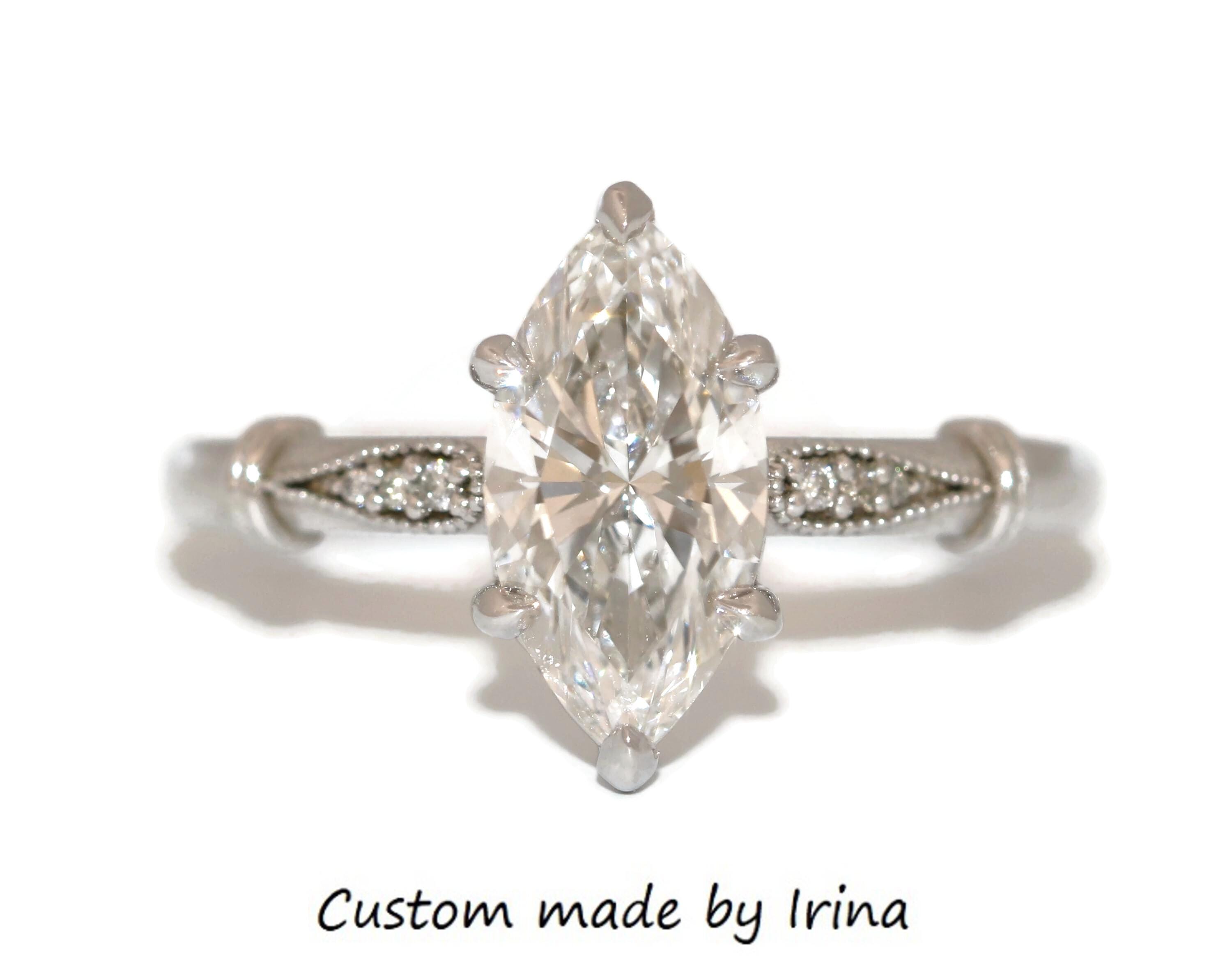 6 Prongs 1 carat IGI Certified Marquise Lab Diamond Engagement Ring.
