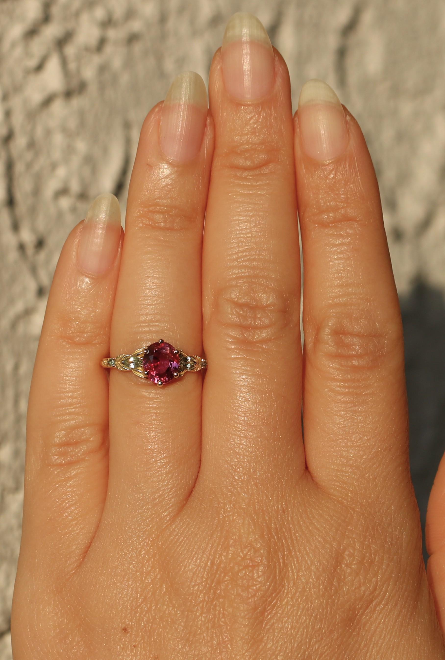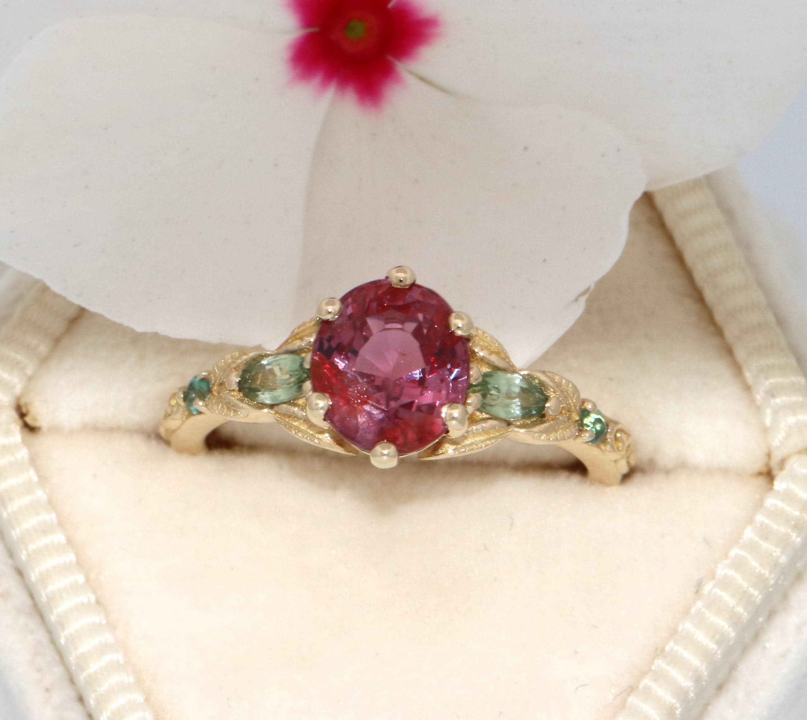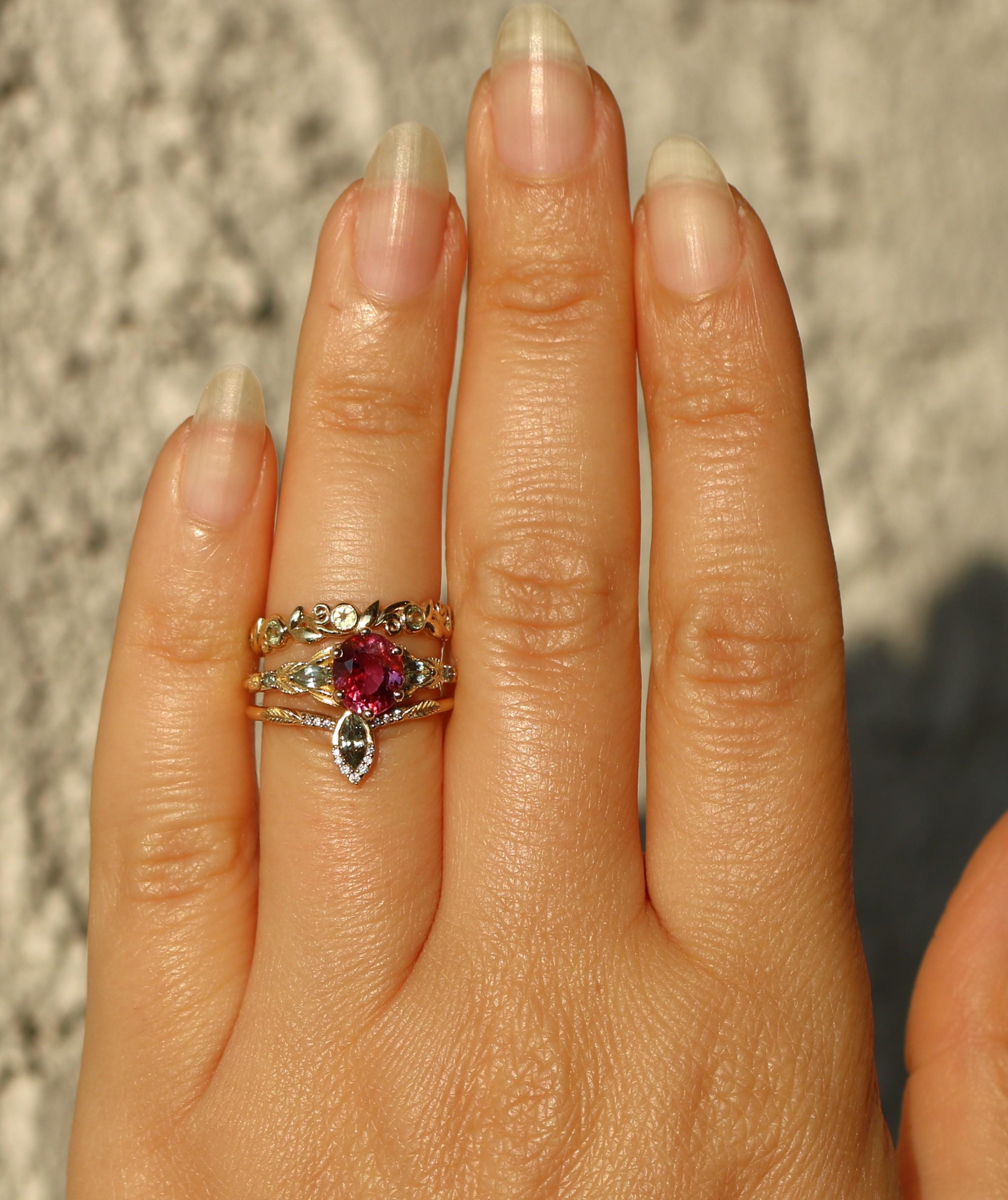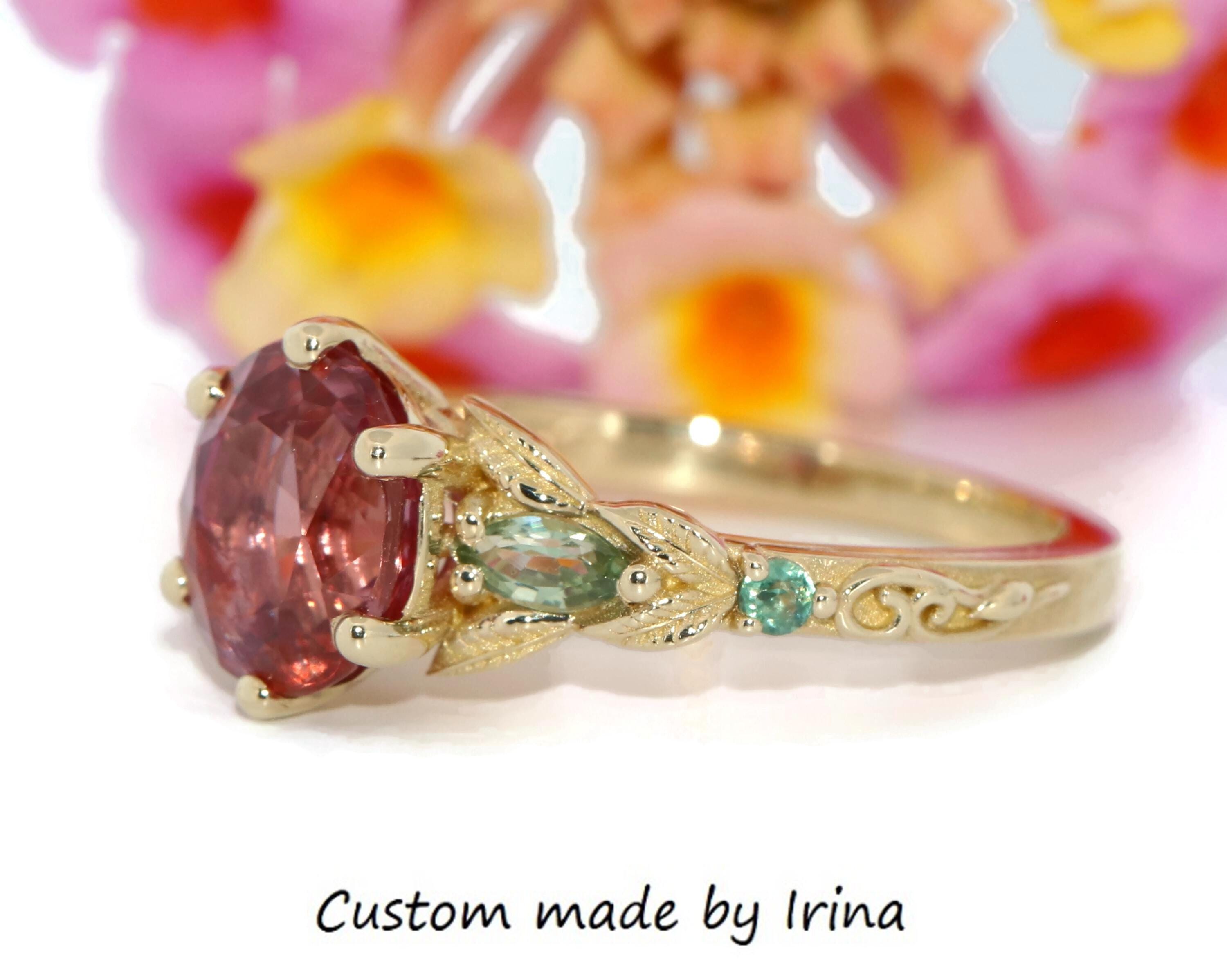 Custom Made Pink Natural Sapphire Vine Leaf Ring.