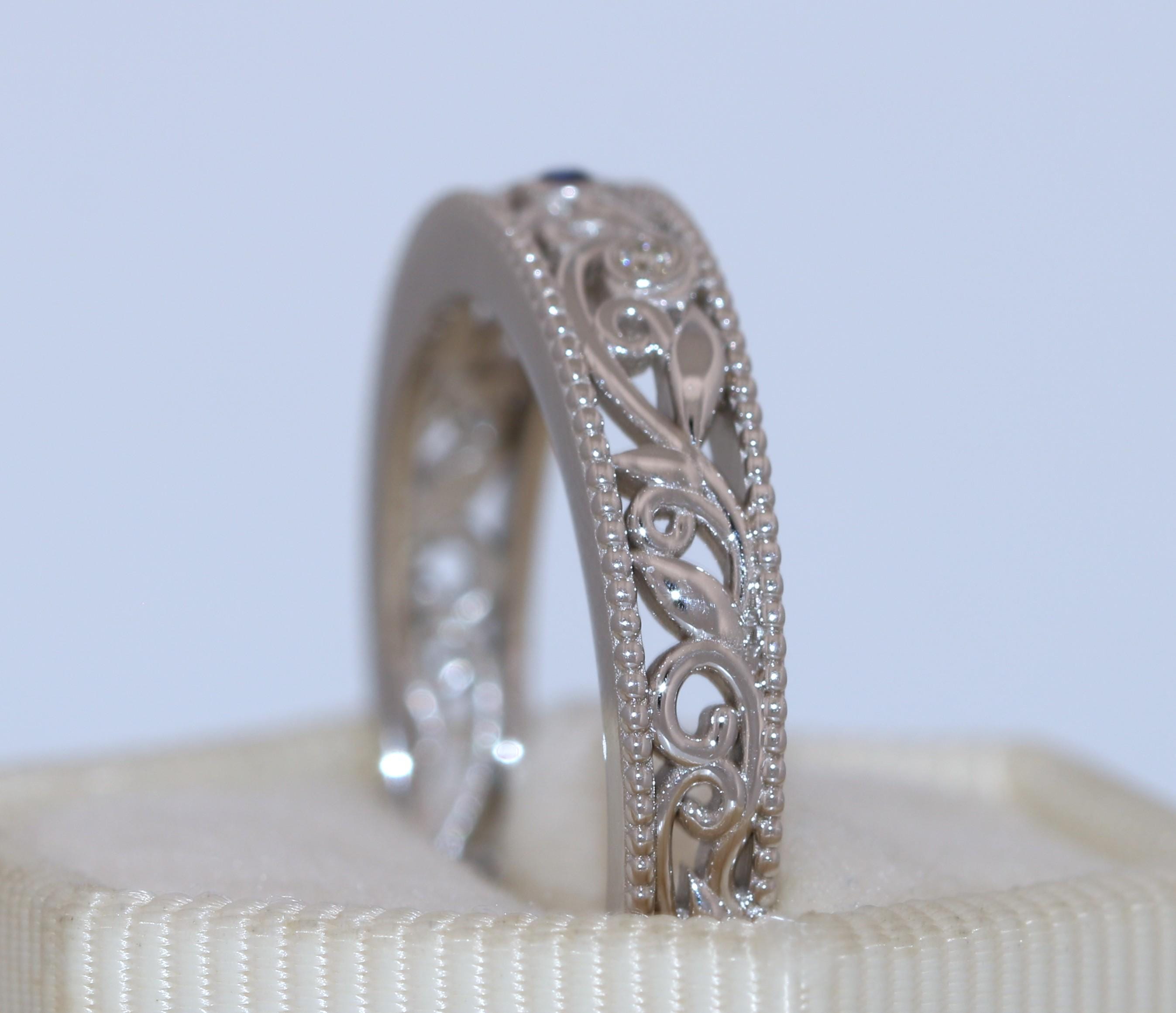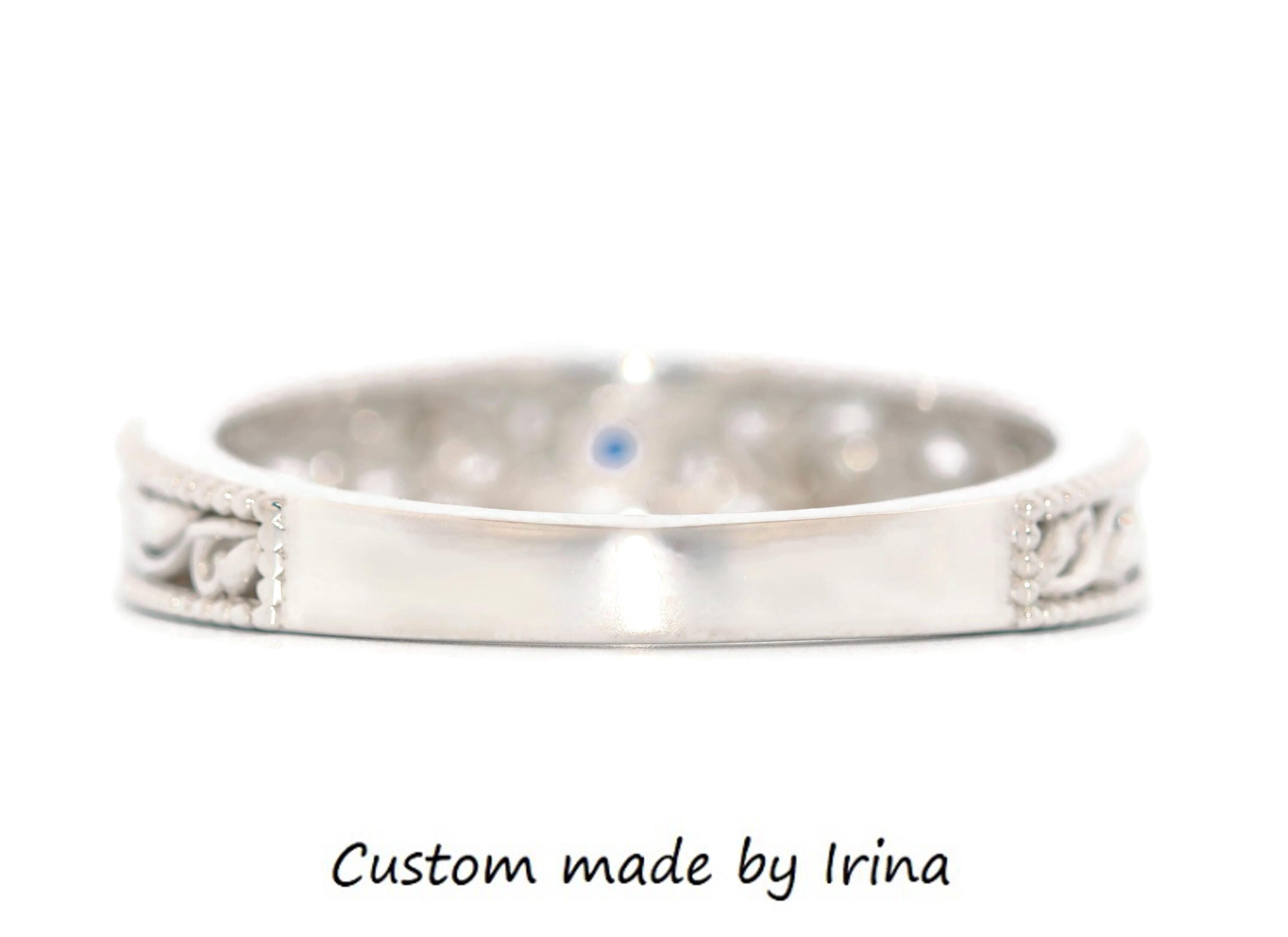 In the video you can see a similar model with milgrains and added 3 diamonds.