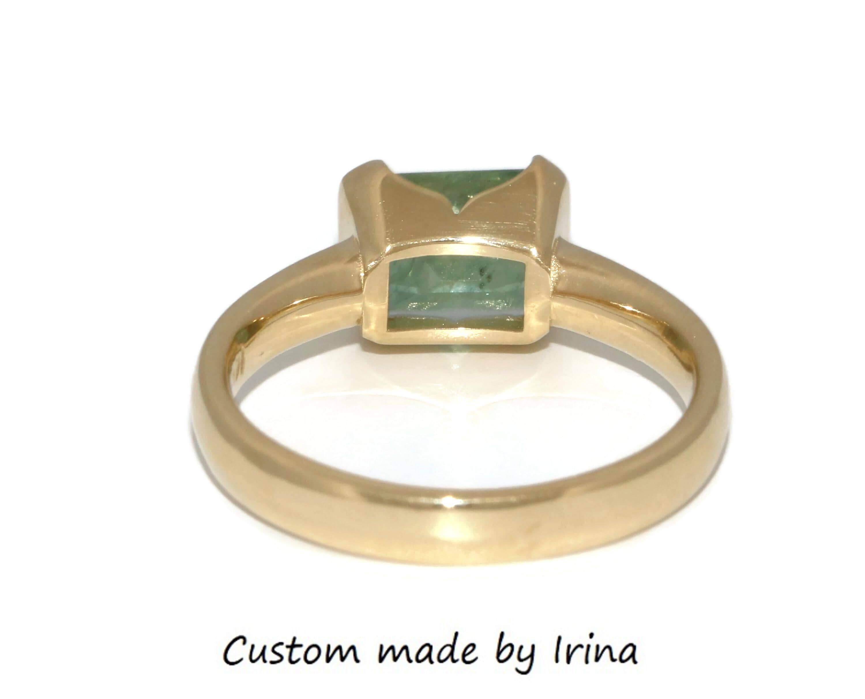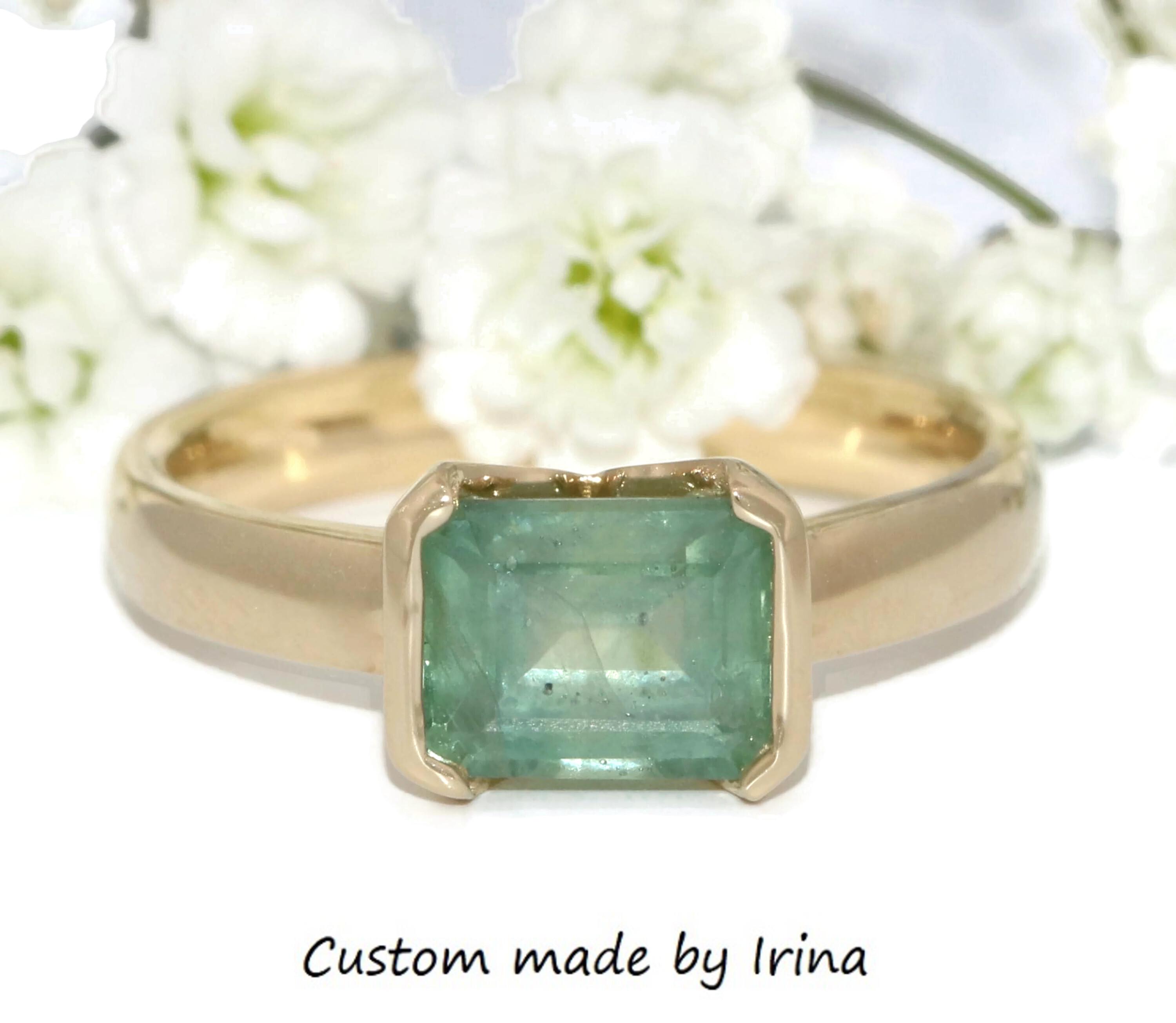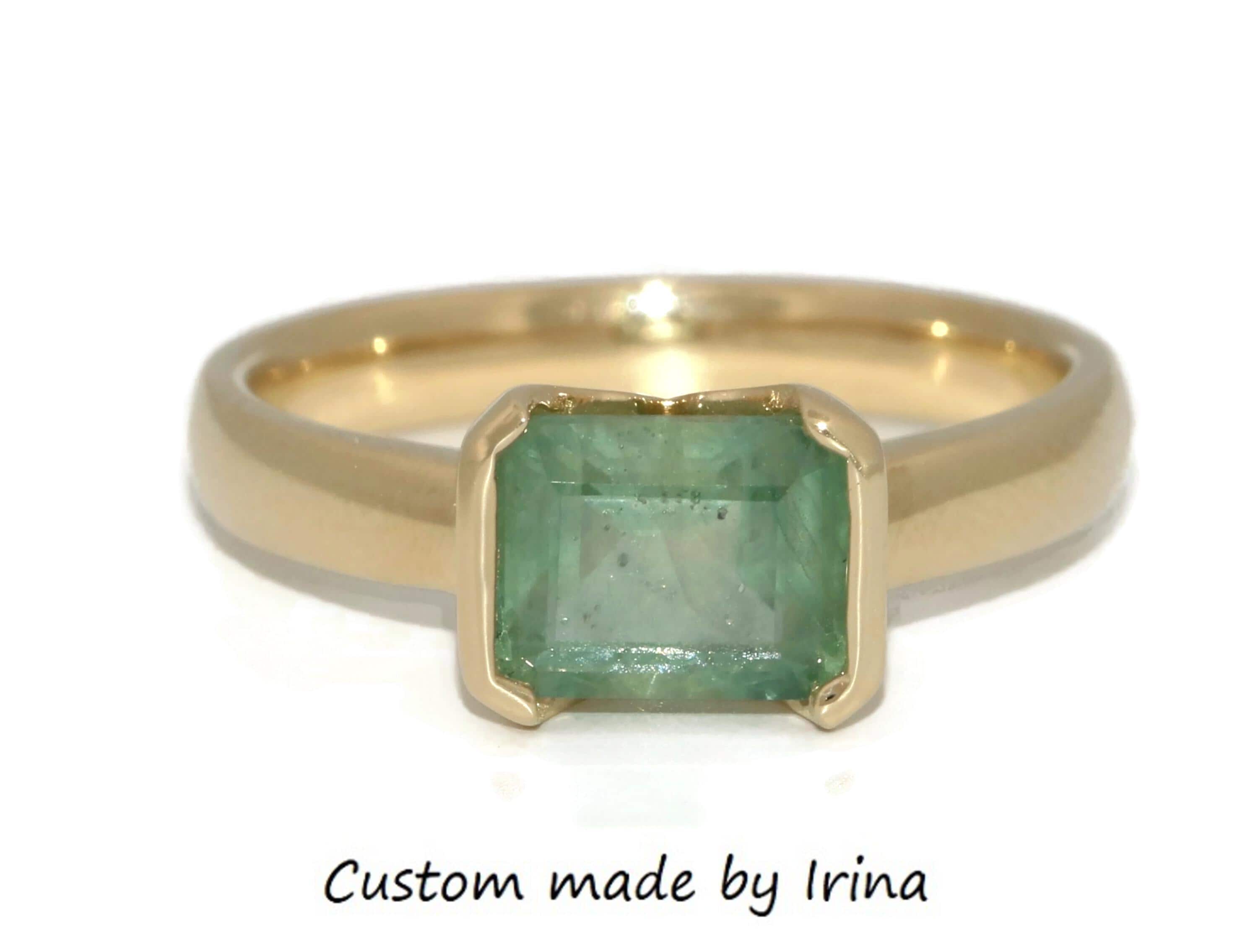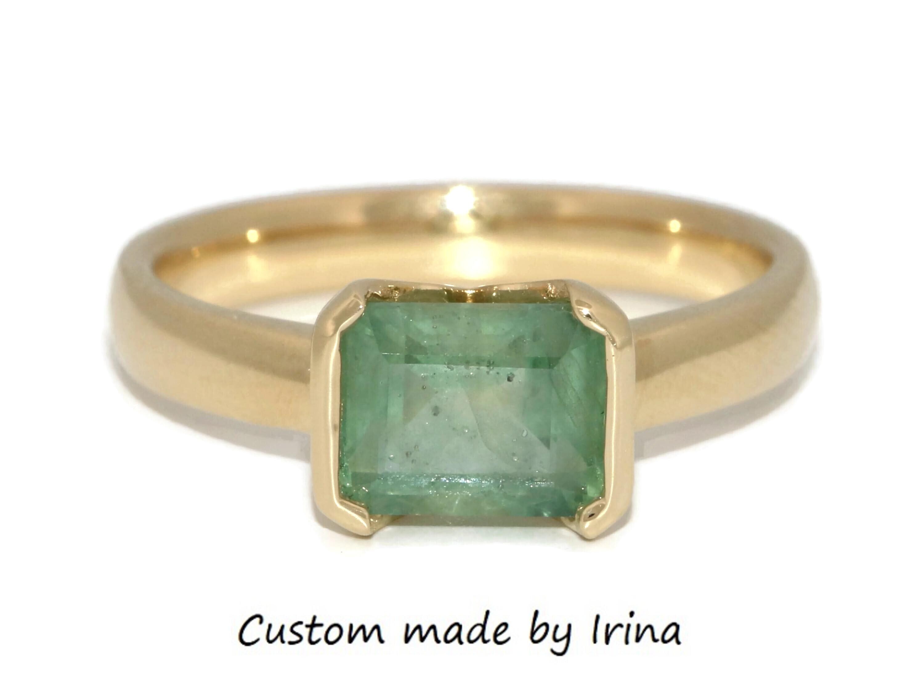 Original center stone was a 2 ct emerald shape Montana Sapphire. I can send you similar options or you can simply click on the link below and purchase the center stone that you like.