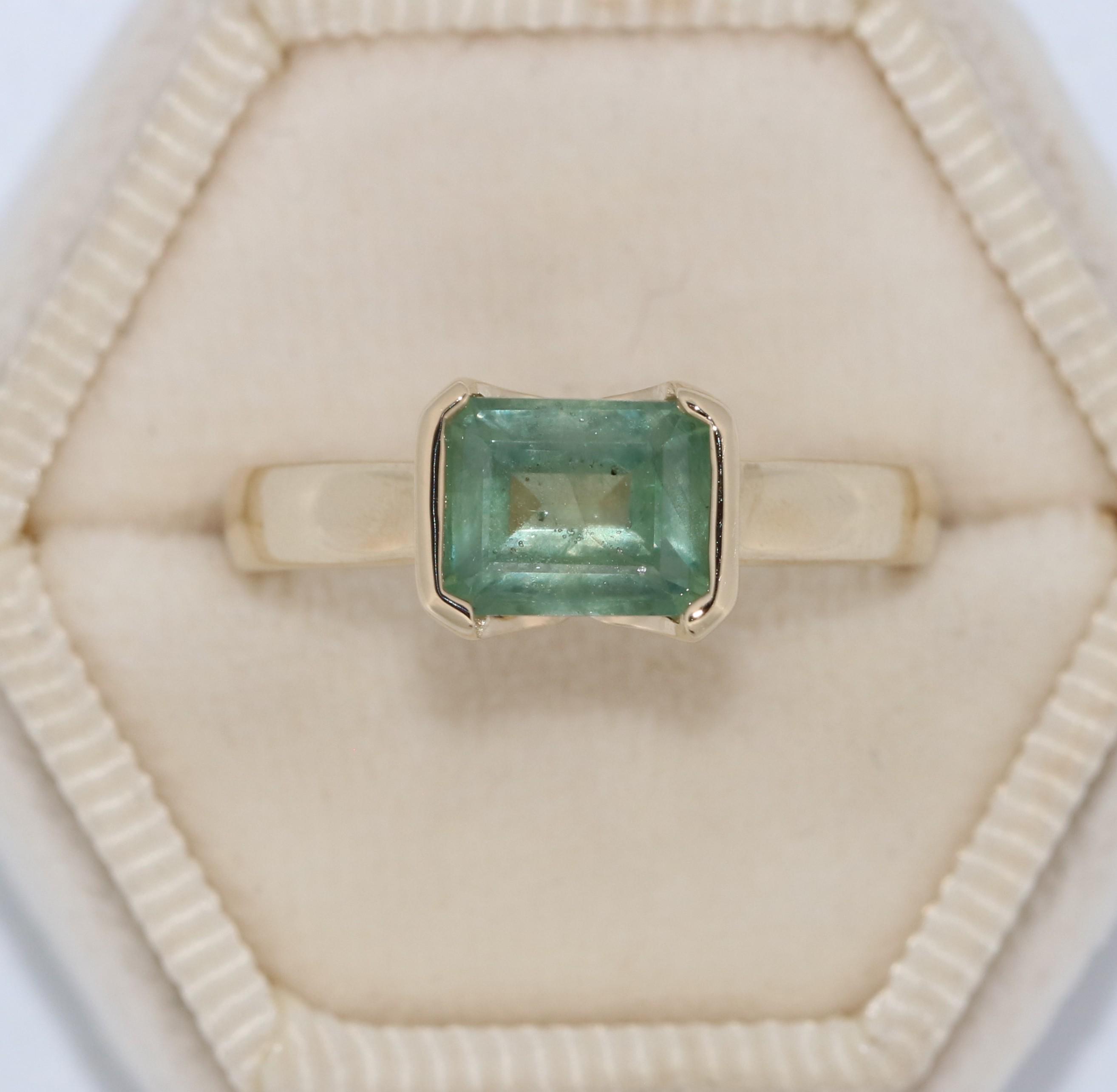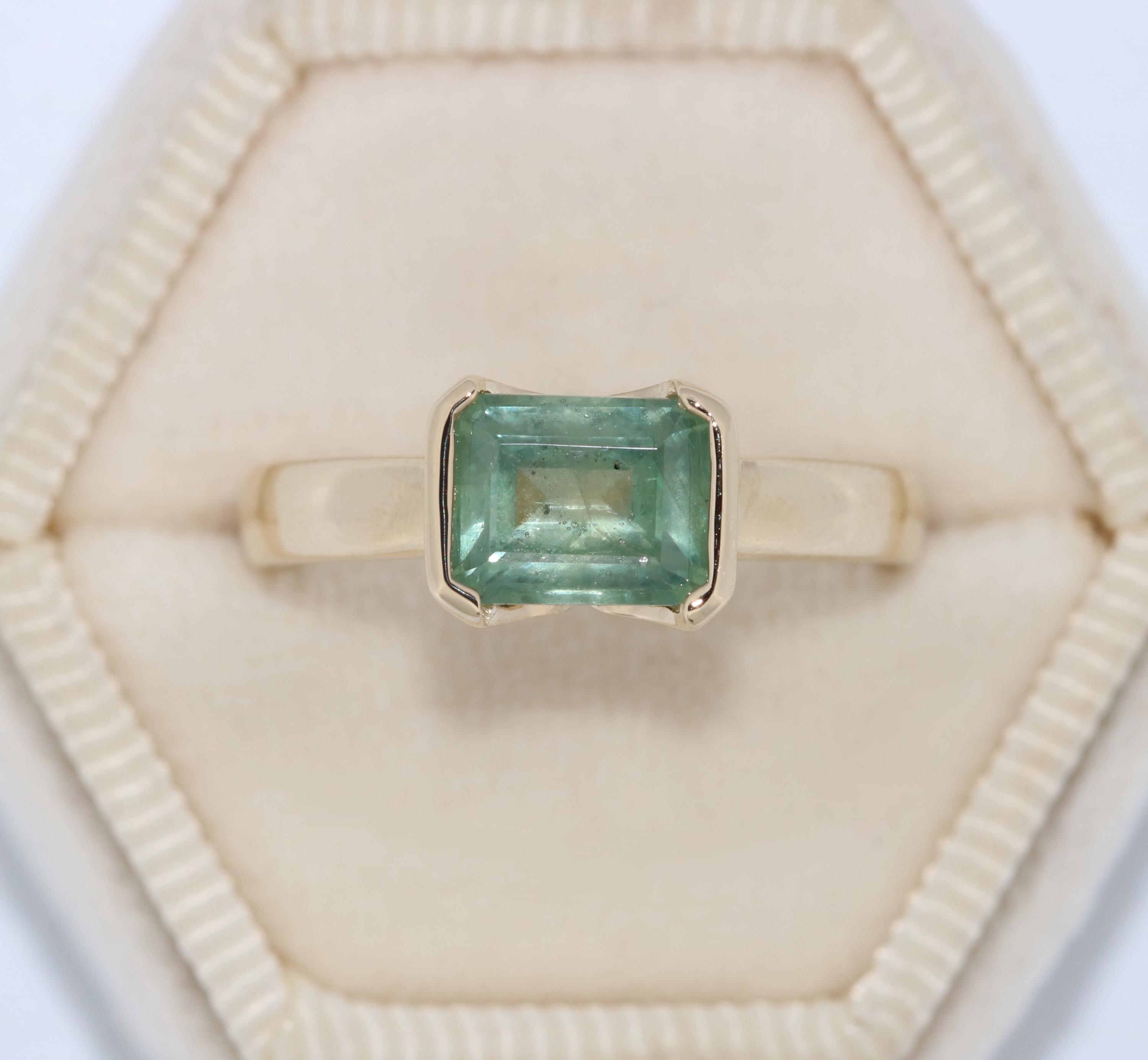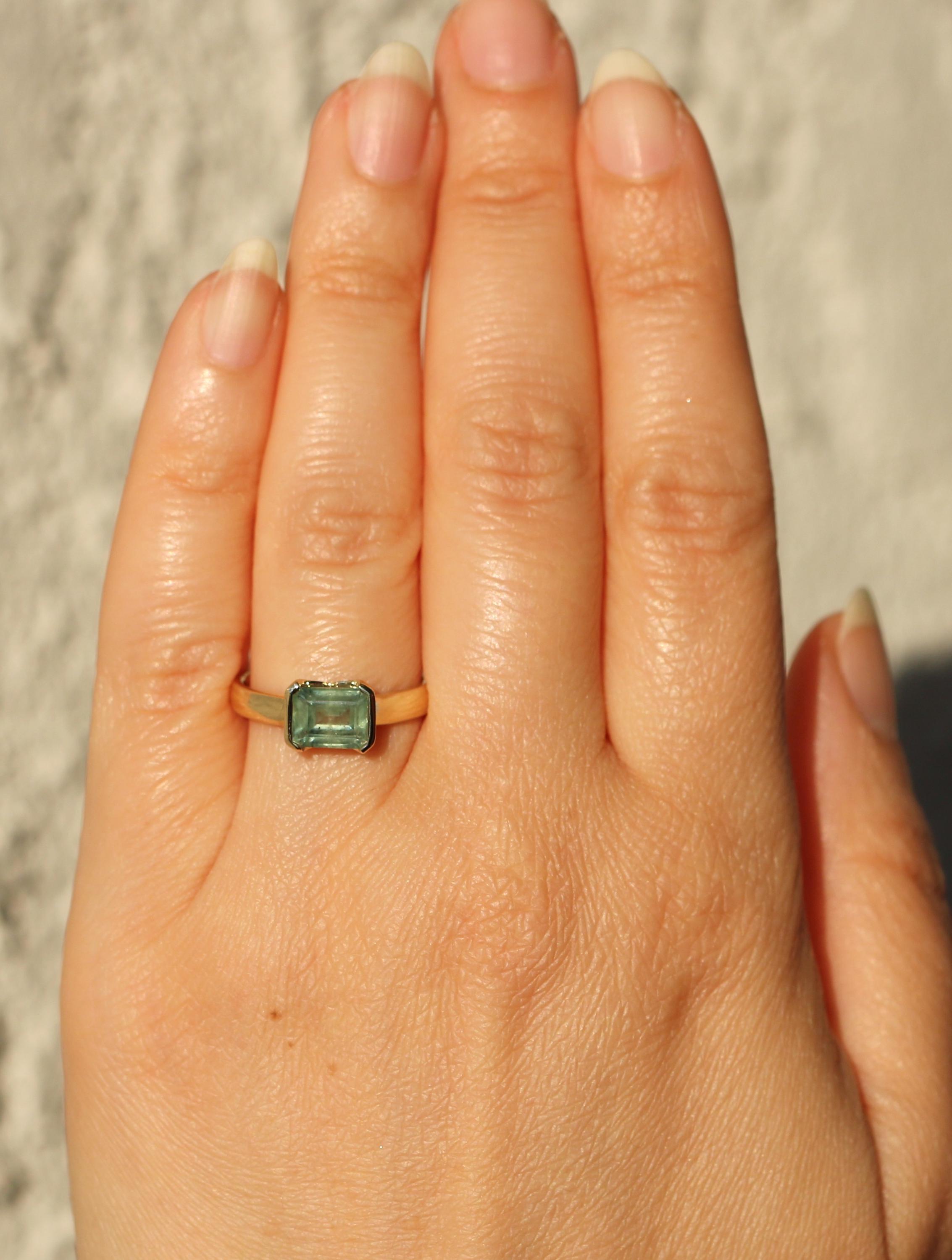 Original center stone was a 2 ct emerald shape Montana Sapphire. I can send you similar options or you can simply click on the link below and purchase the center stone that you like.