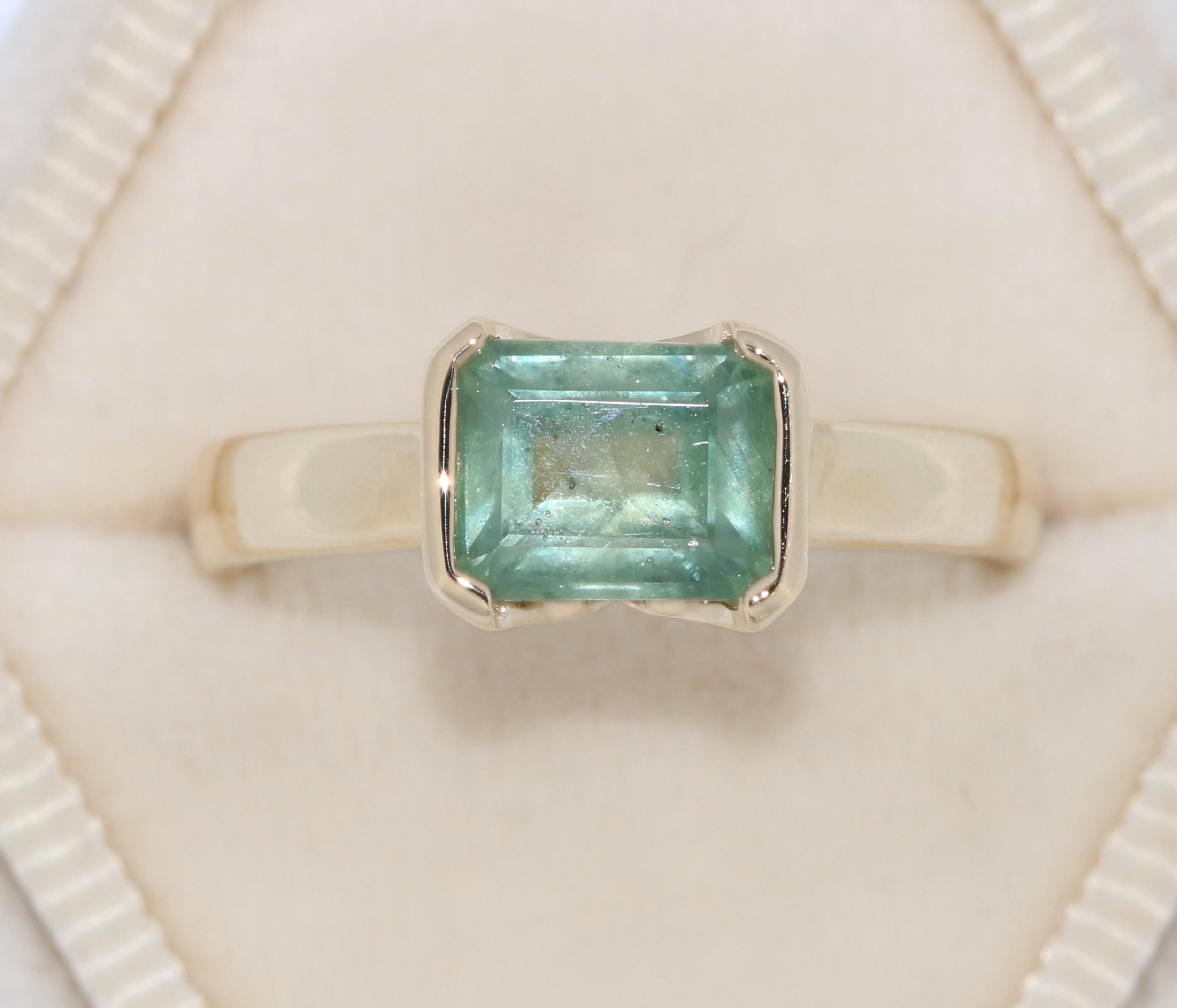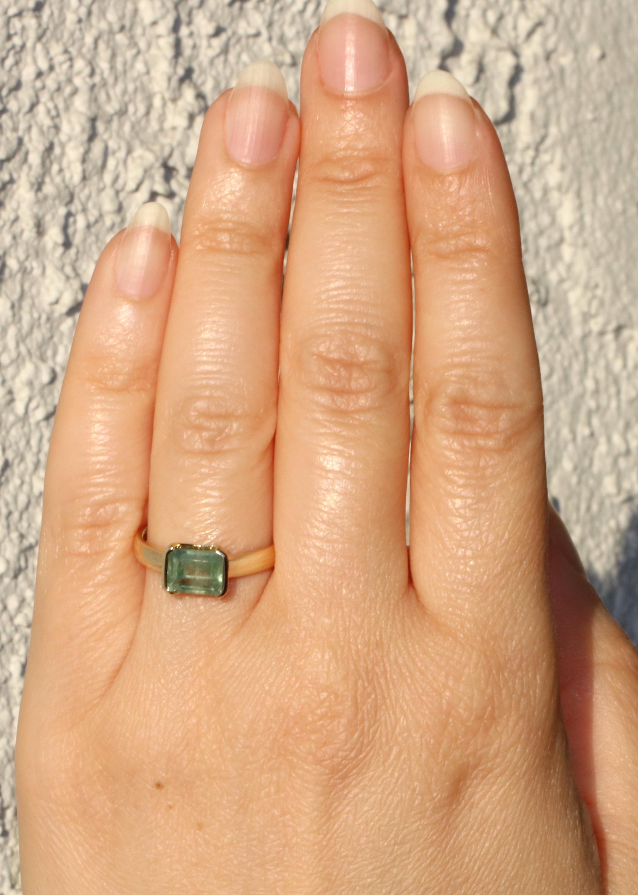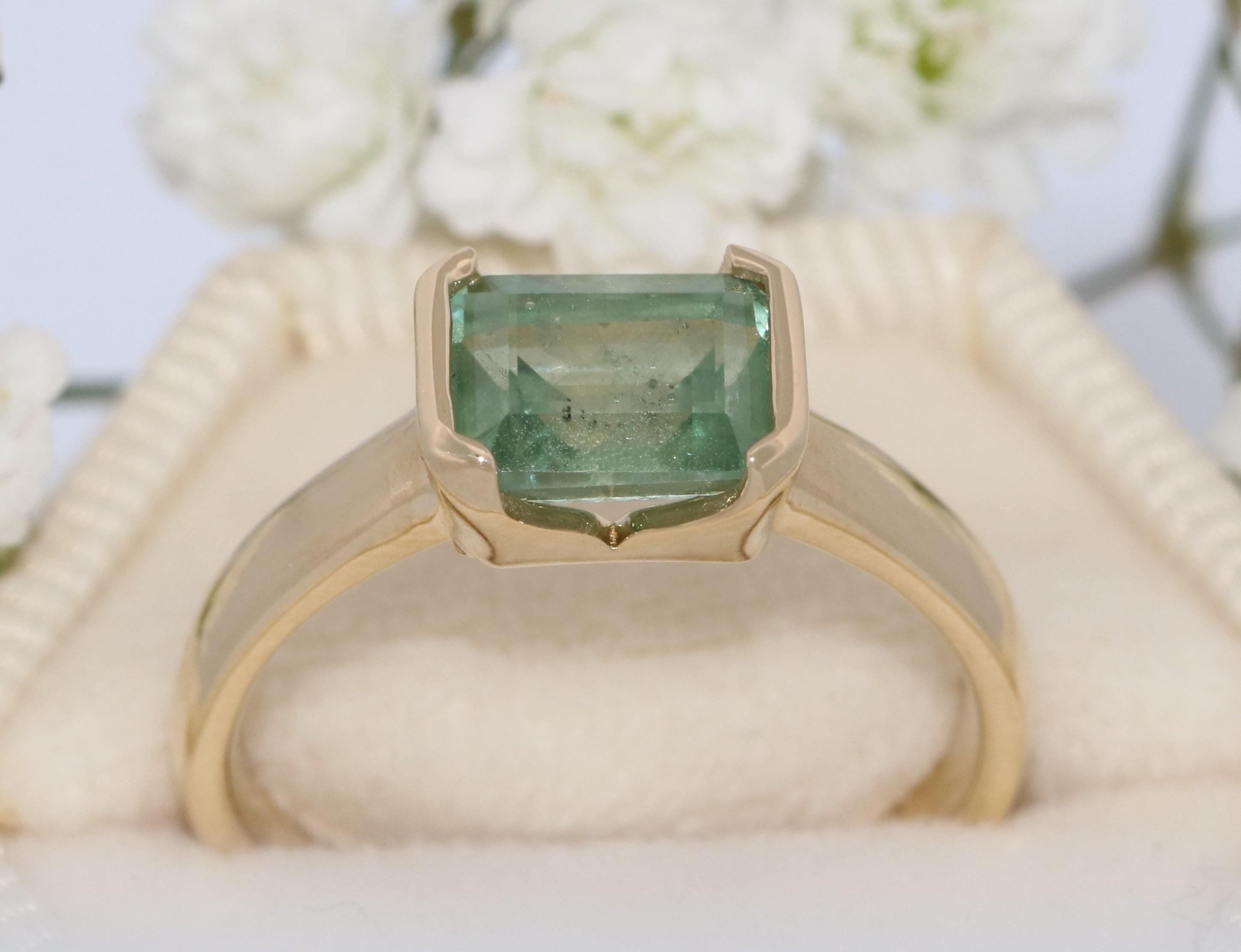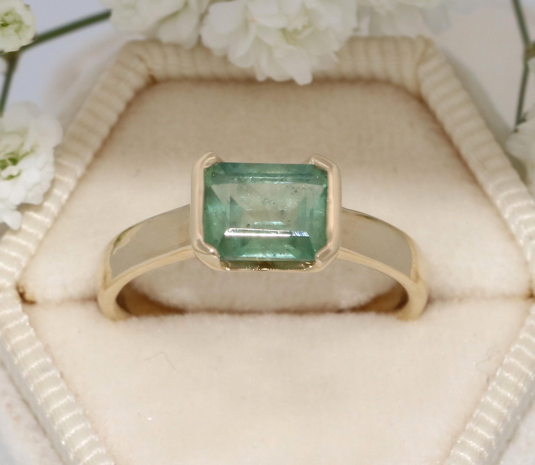 Original center stone was a 2 ct emerald shape Montana Sapphire. I can send you similar options or you can simply click on the link below and purchase the center stone that you like.