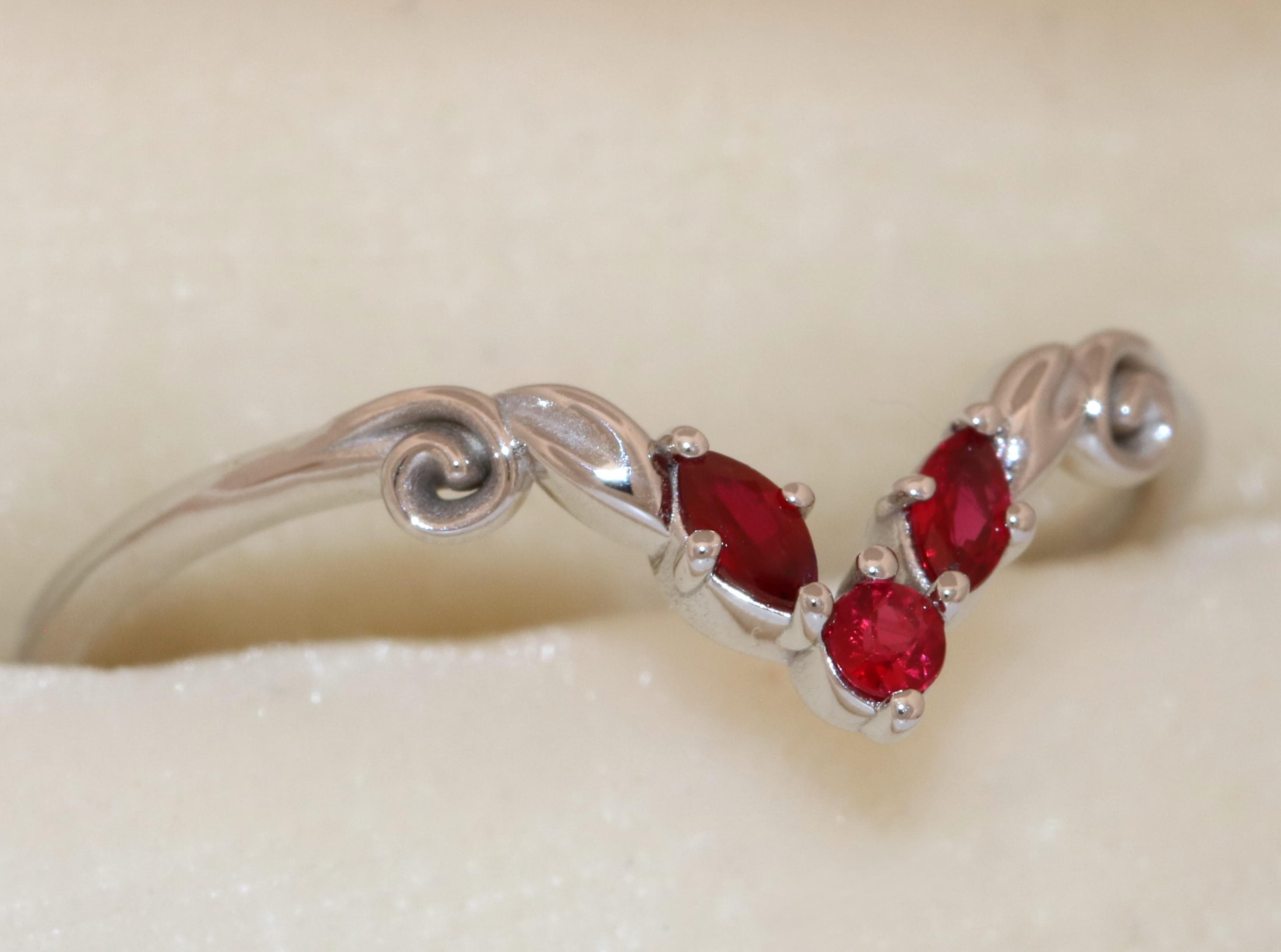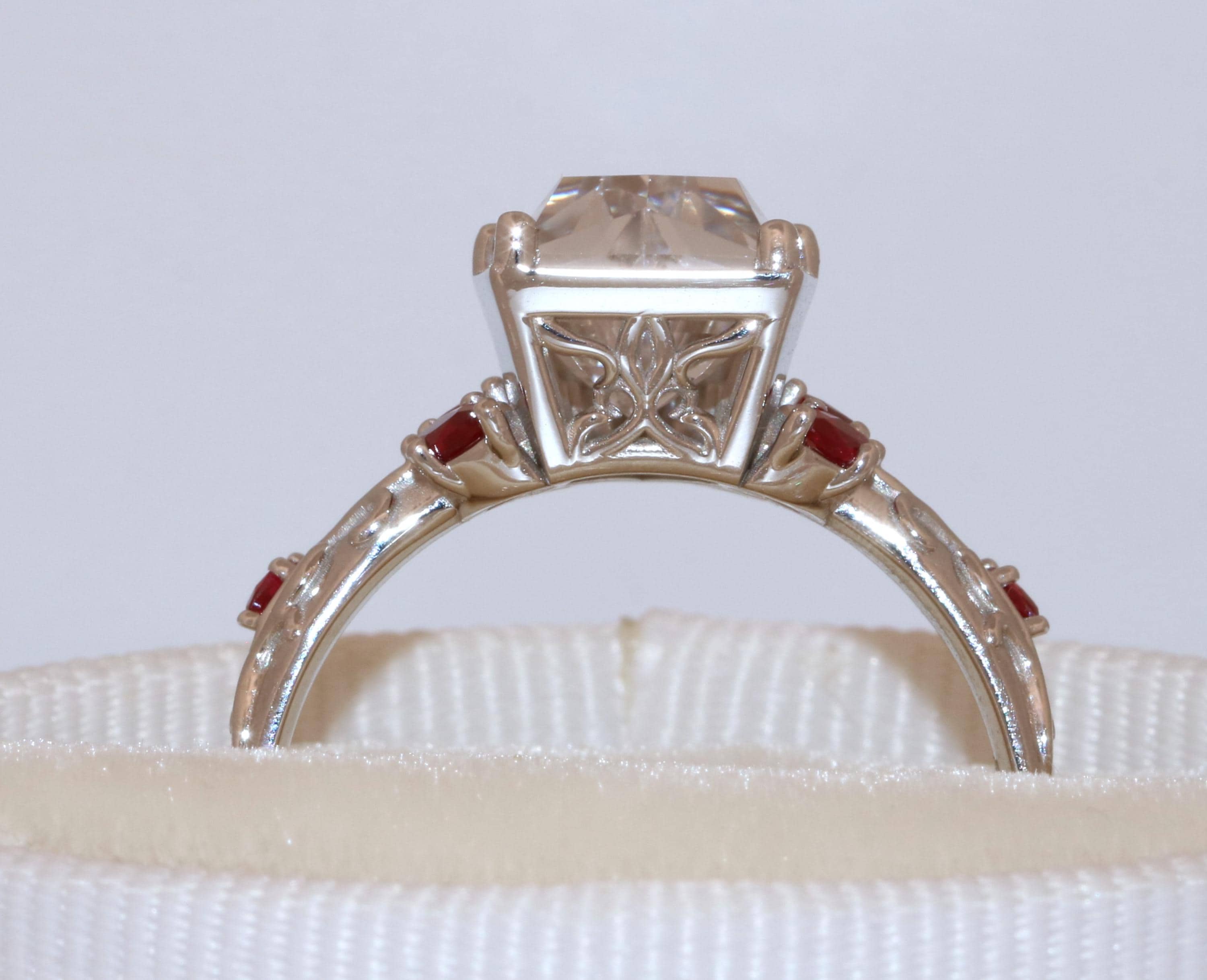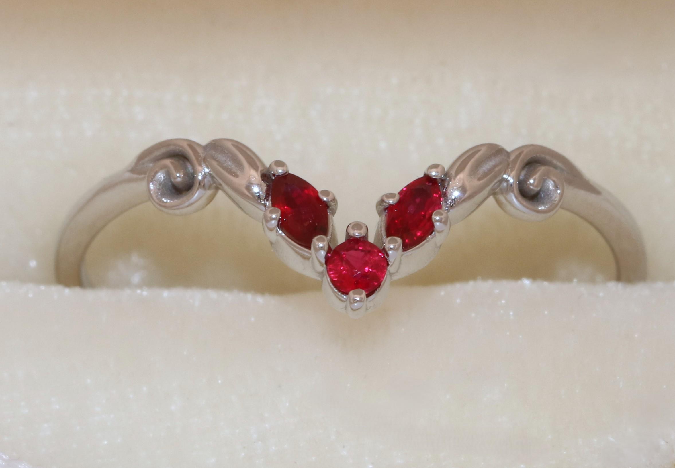 Accent stones: natural rubies so they steer away from the orange tone.