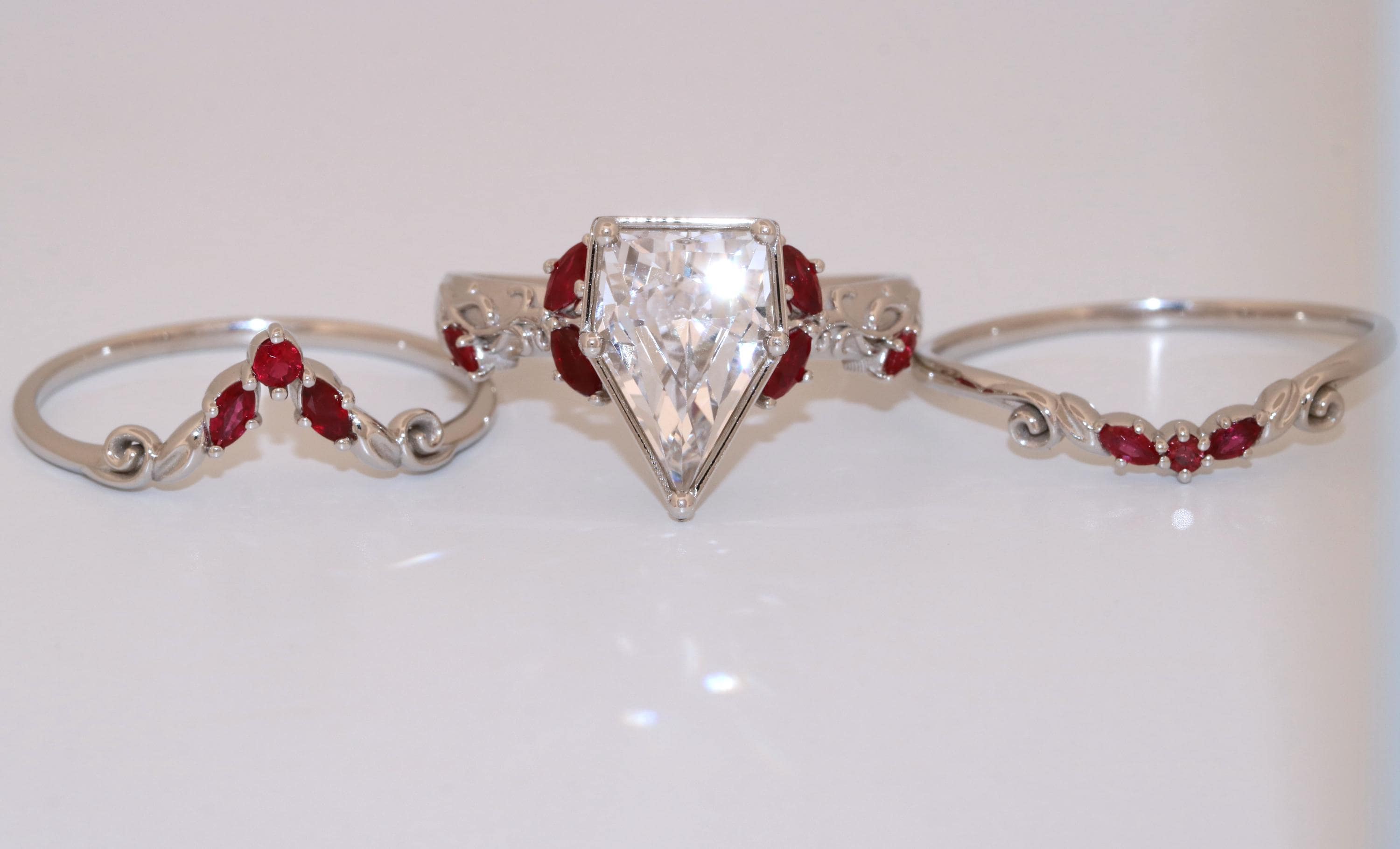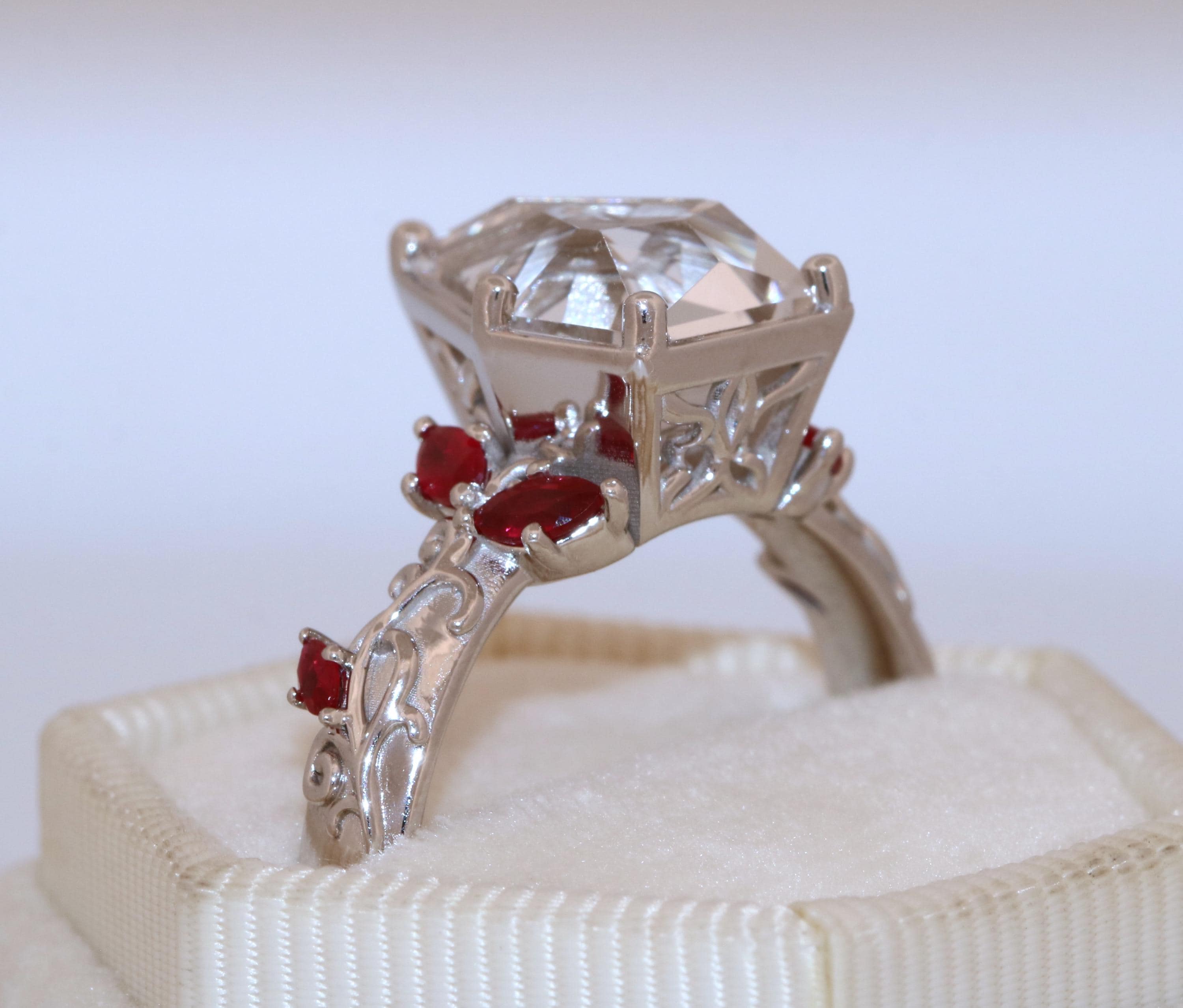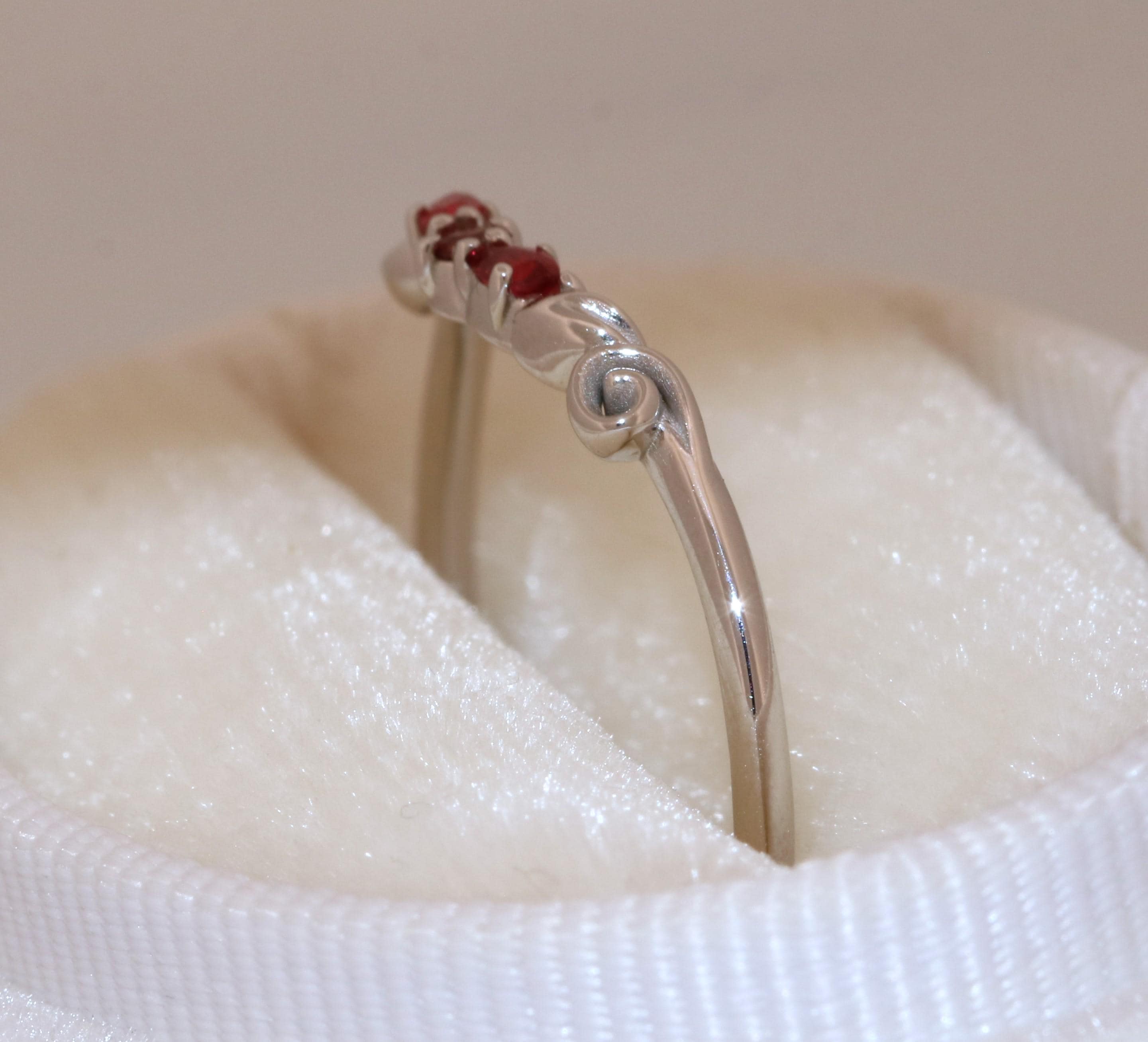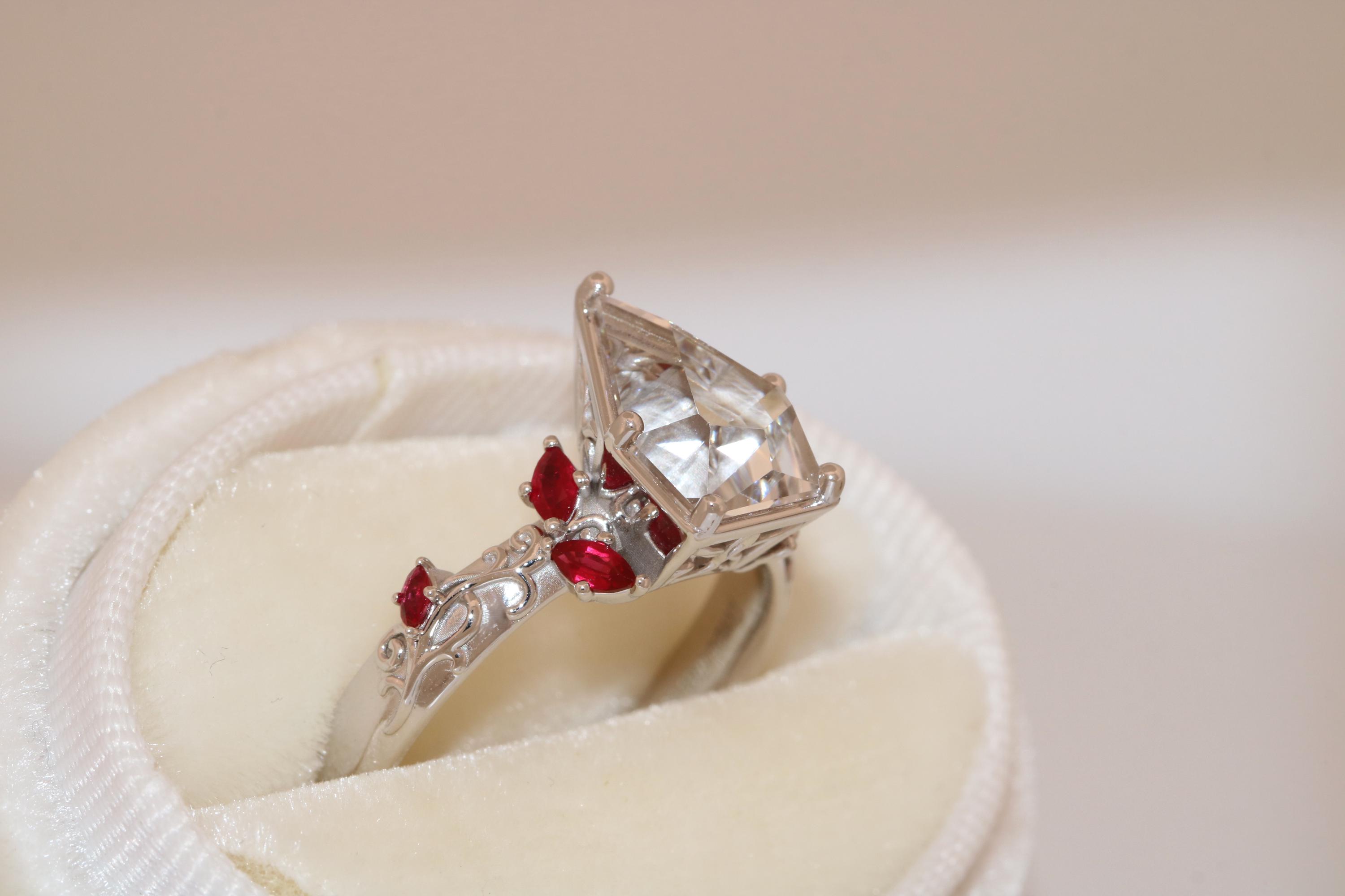 Accent stones: natural rubies so they steer away from the orange tone.