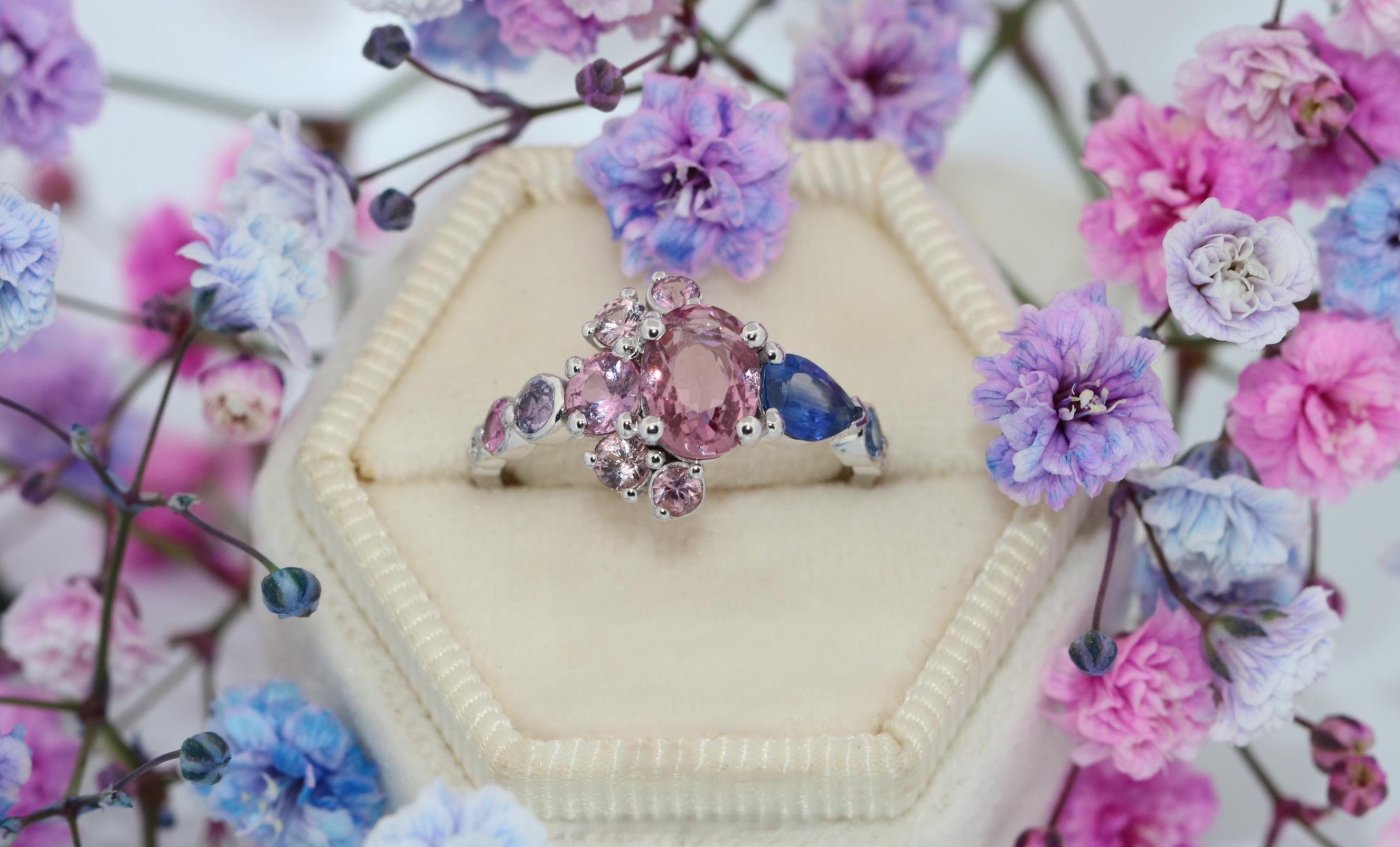 Mesmerizing like a bouquet of rare flowers and a rare mix of pink-blue colors.