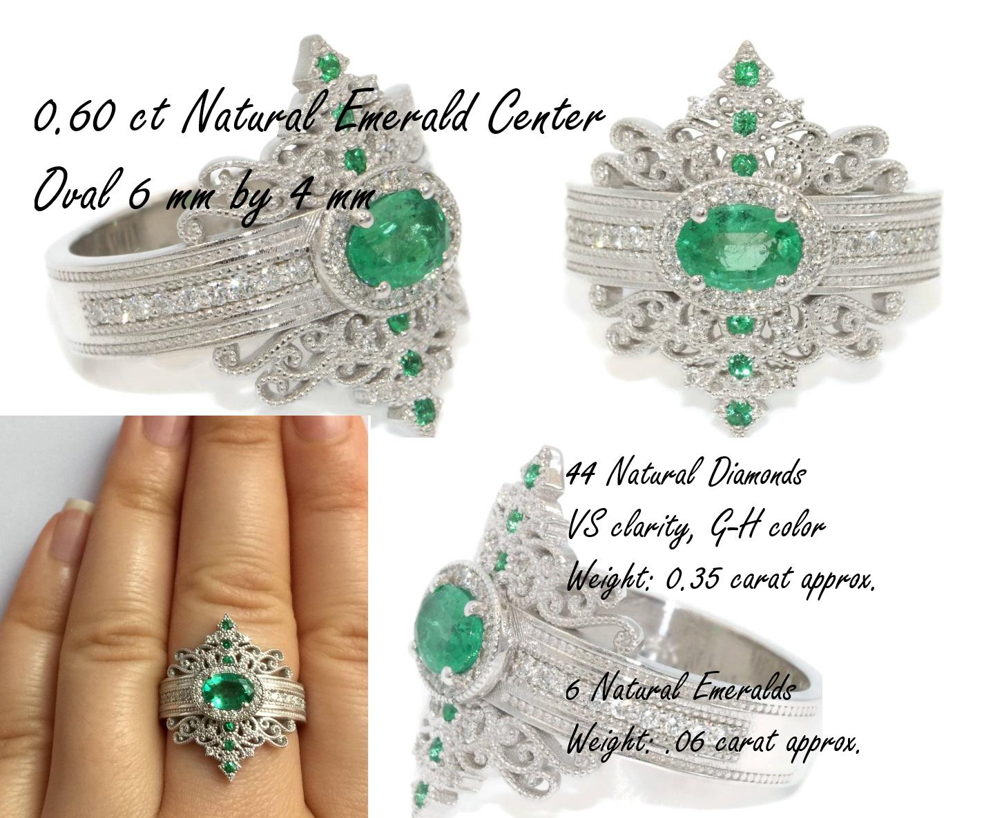 In the last picture you can see this model customized with emerald center and soldered wedding bands. Please contact me for a price quote if you are interested in this version.