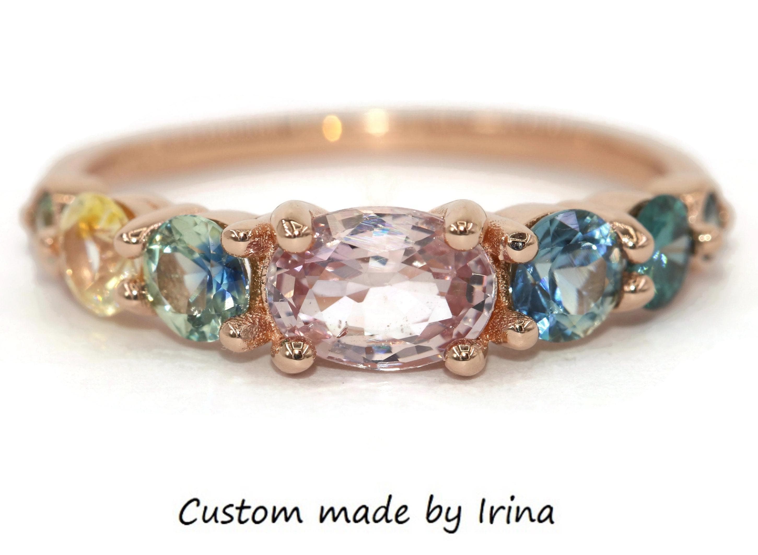 Ombre Colorful Sapphire Linear Cluster Ring. Amazing, unique and truly One of a Kind Ring.